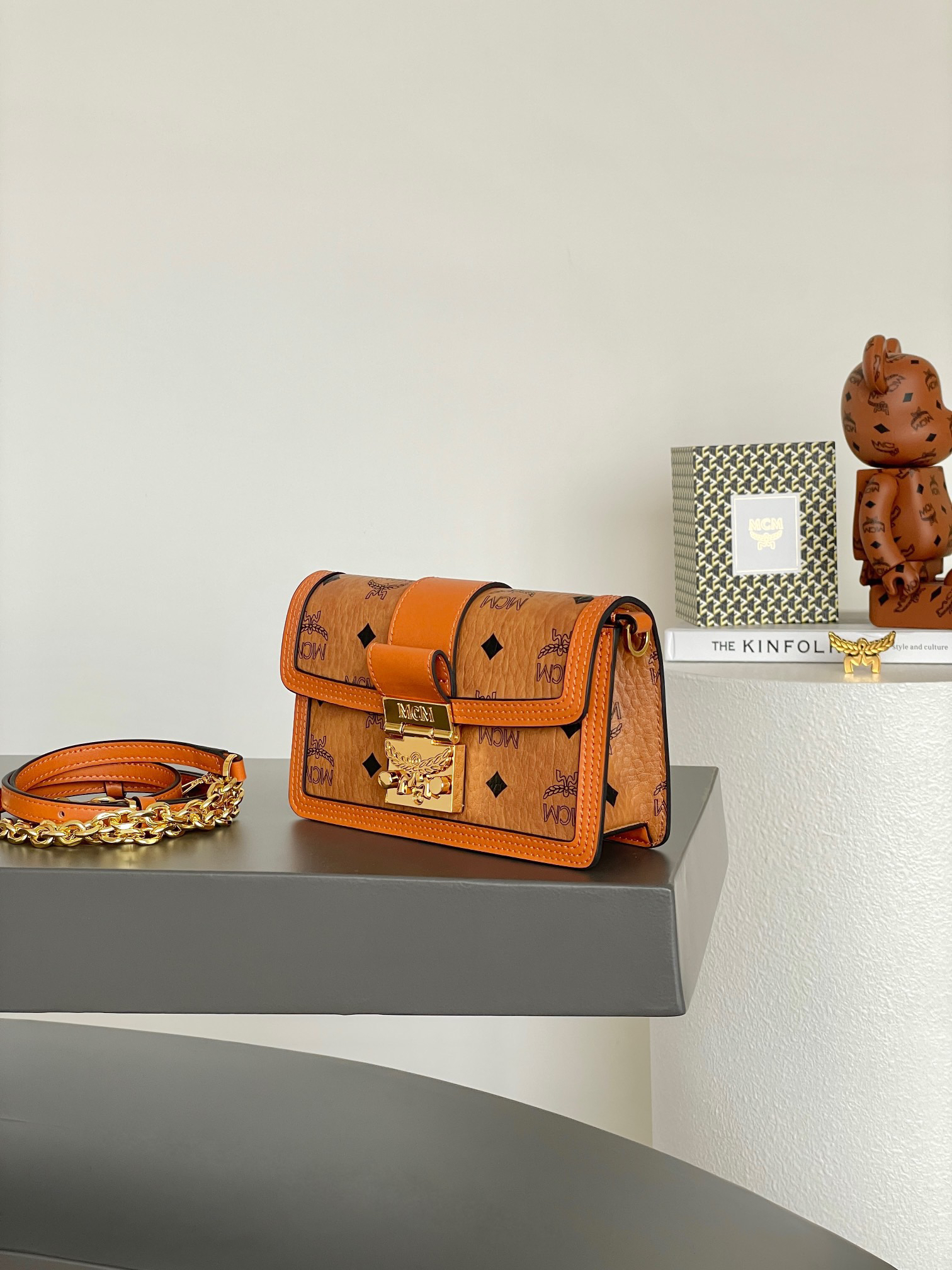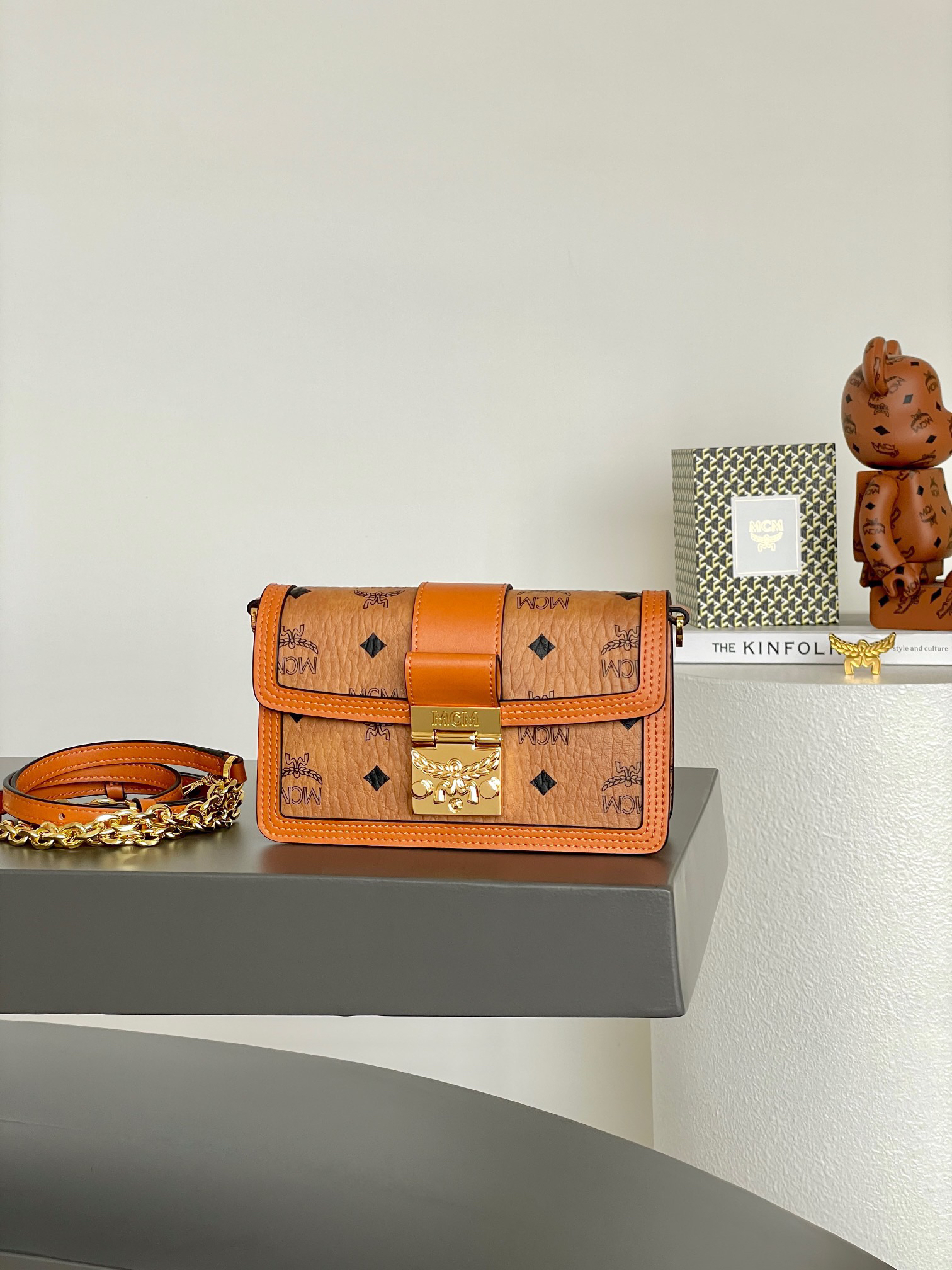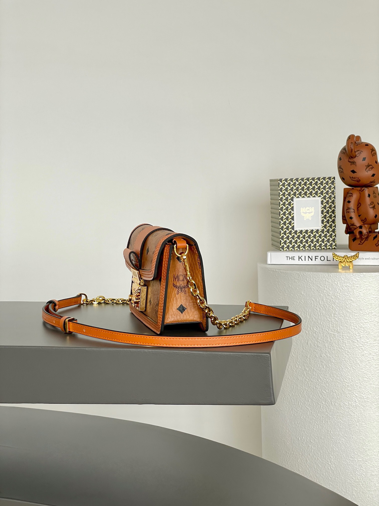 秋冬特惠💰780 原单MCM 原厂皮 原厂新五金 链条斜挎包MWPBAWO05CO001 经典干邑色