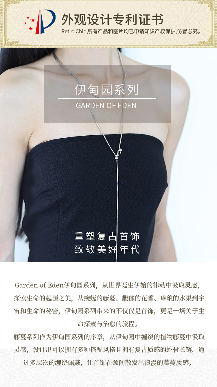 【王天辰&侯佩岑&沈梦辰&刘孜&刘忻&刘恋&王悦伊同款】Garden of Eden 伊甸园系列 | 银色藤蔓蛇骨长链