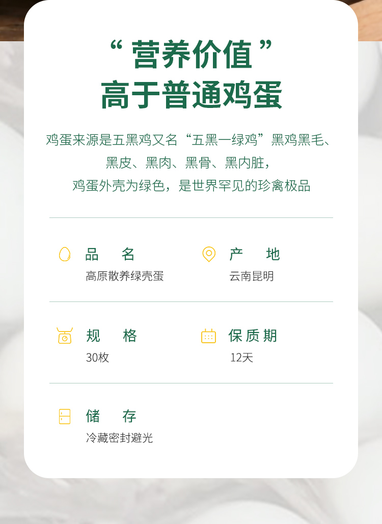 【高原散养绿壳蛋】 原生态 绿壳乌骨鸡蛋 胆固醇比普通鸡蛋低 30枚/份【生鲜发出不退不改,签收及时取出放在冰箱保鲜】(它比普通鸡蛋小)