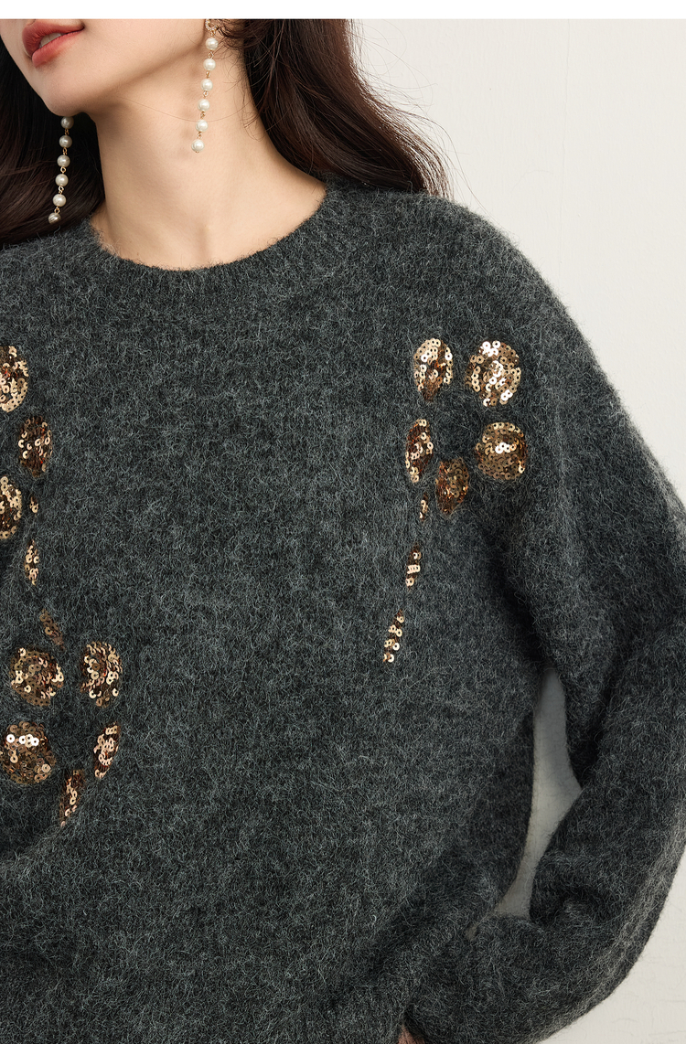 【11/5新品】熙世界鎏金亮片圆领毛衣女2025秋冬新款宽松慵懒高级感长袖针织衫