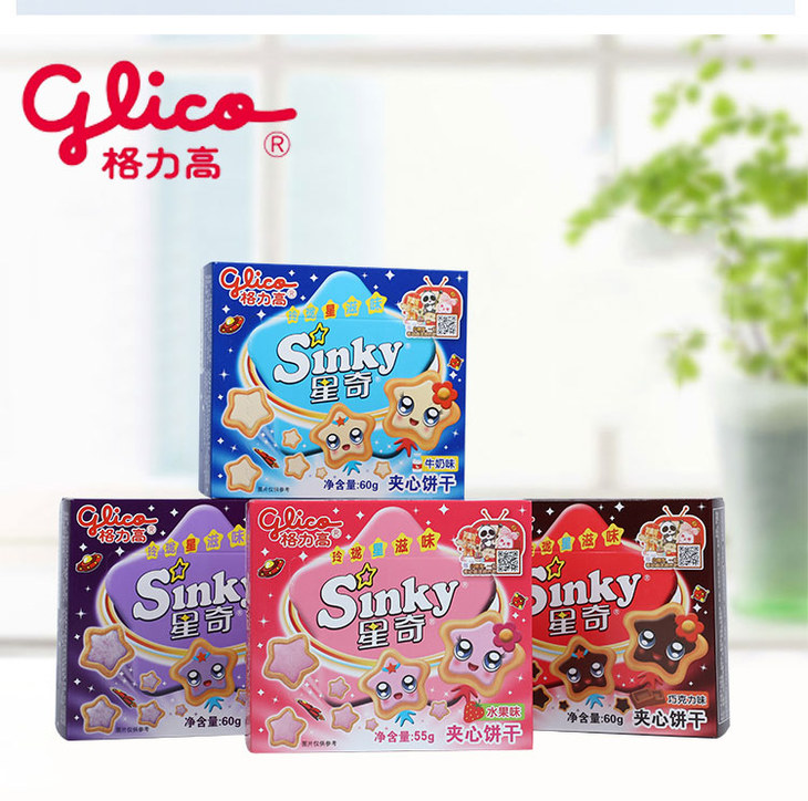 格力高星奇夹心饼干4种口味 牛奶味 水果味 蓝莓芝士味 巧克力味 零食品蛋糕甜品装饰