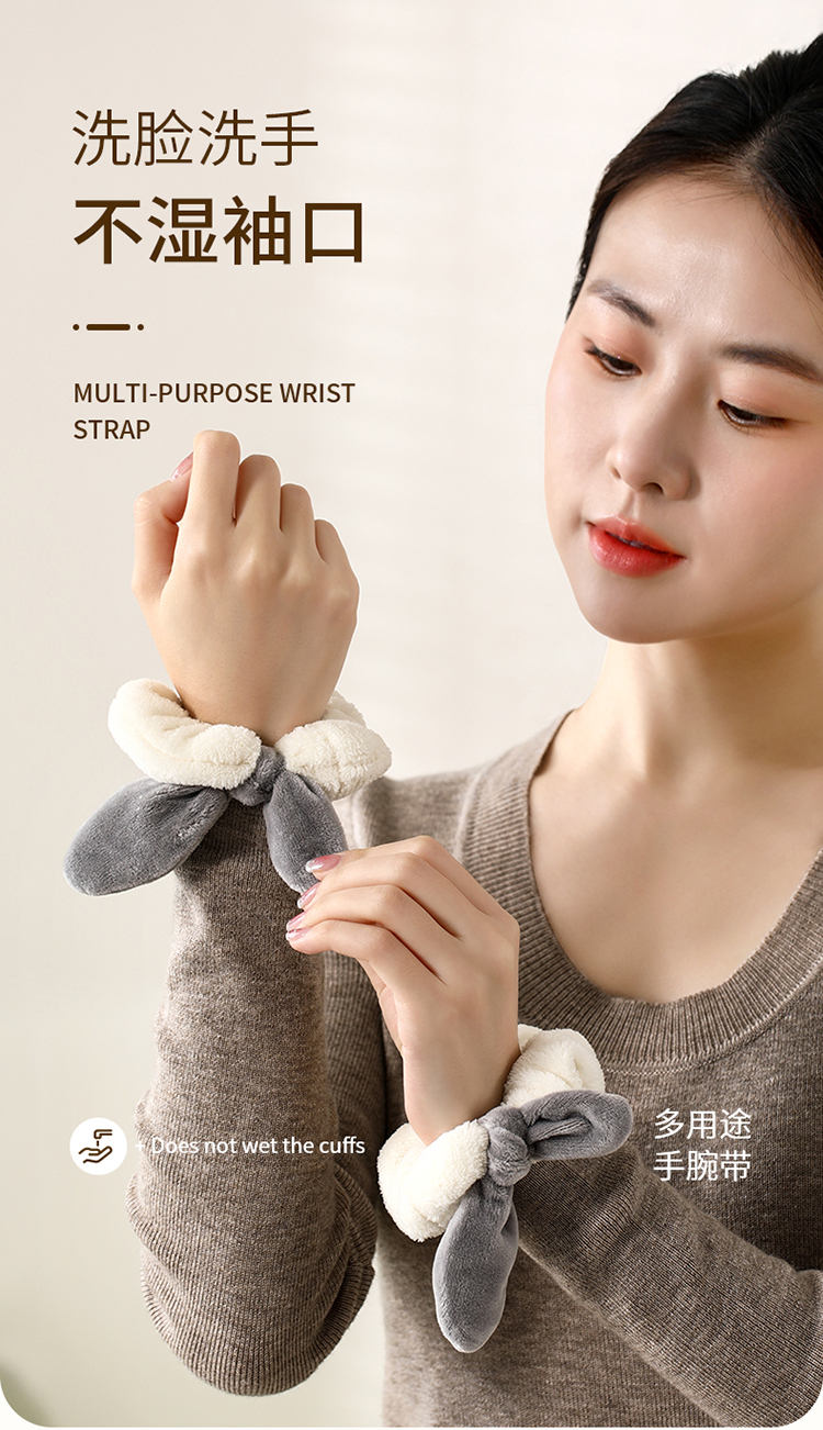 FaSoLa可爱兔子洗脸手腕带防湿袖女防水护腕儿童洗漱用吸水神器卡通手环