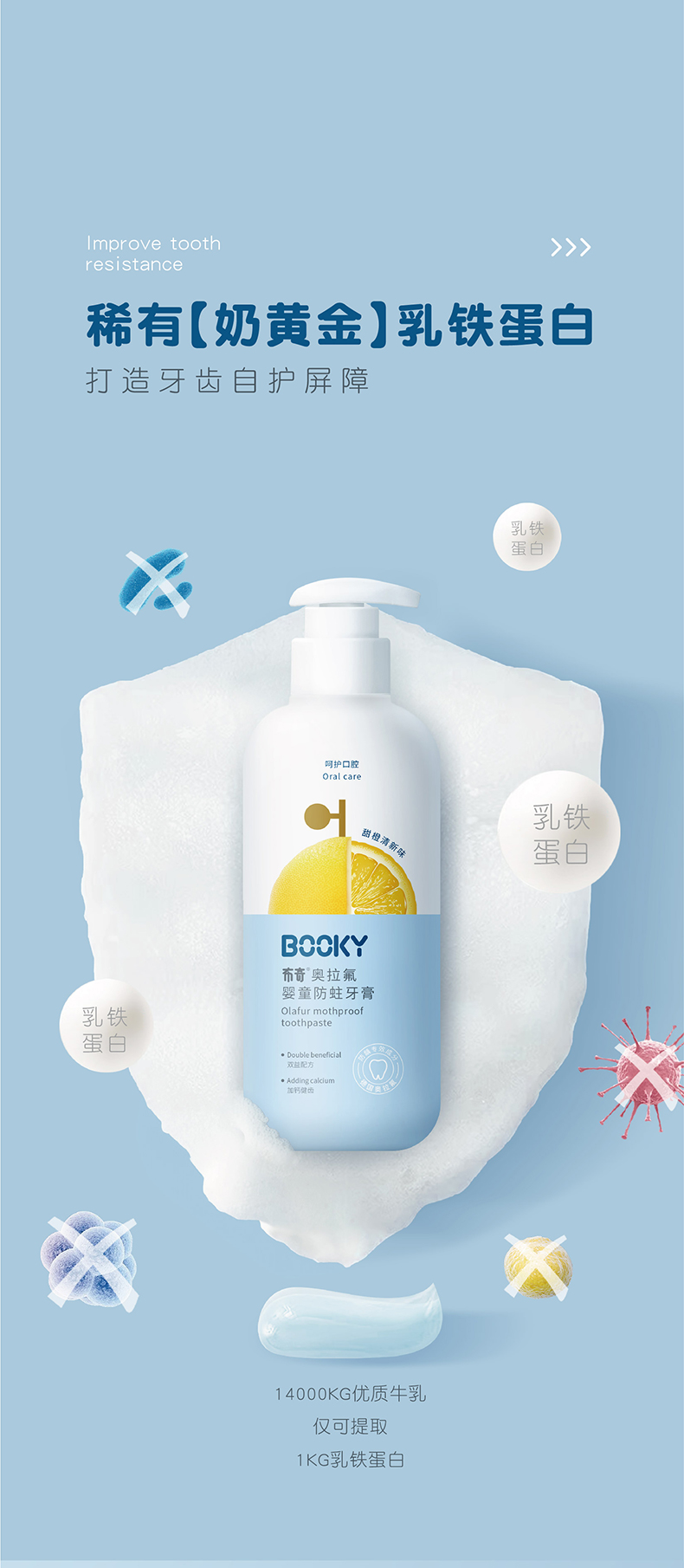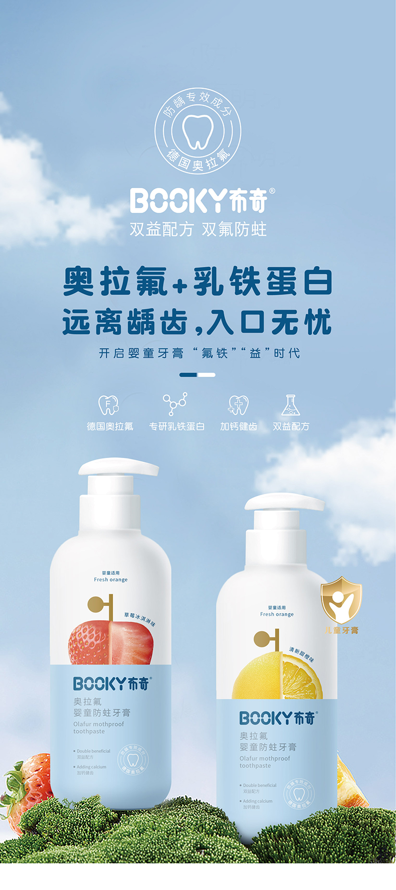 【布奇】布奇BOOKY双益奥拉氟儿童牙膏1-12岁呵护乳牙宝宝牙膏含氟按压式160g/支