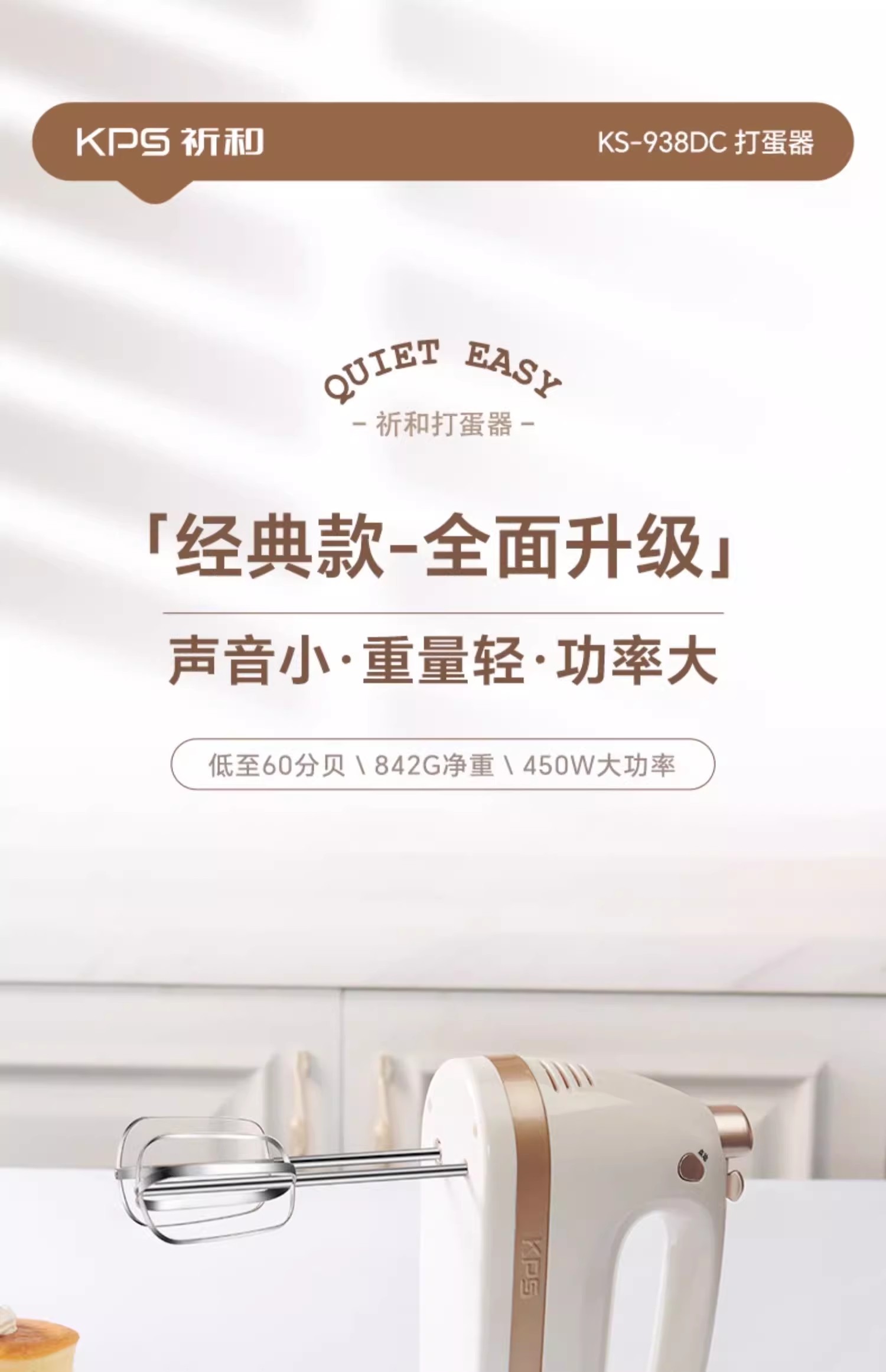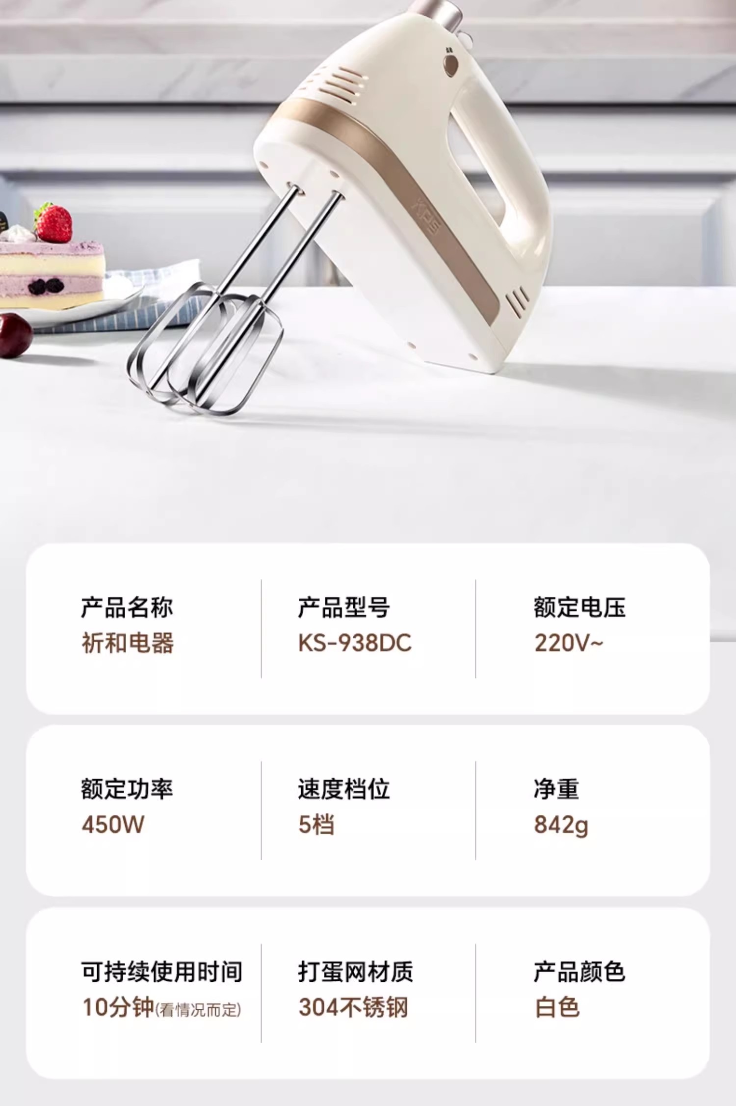 祈和 KS-938DC 手持电动打蛋器 新款电动打蛋器家用小型手持奶油搅拌机烘焙打发器 450W