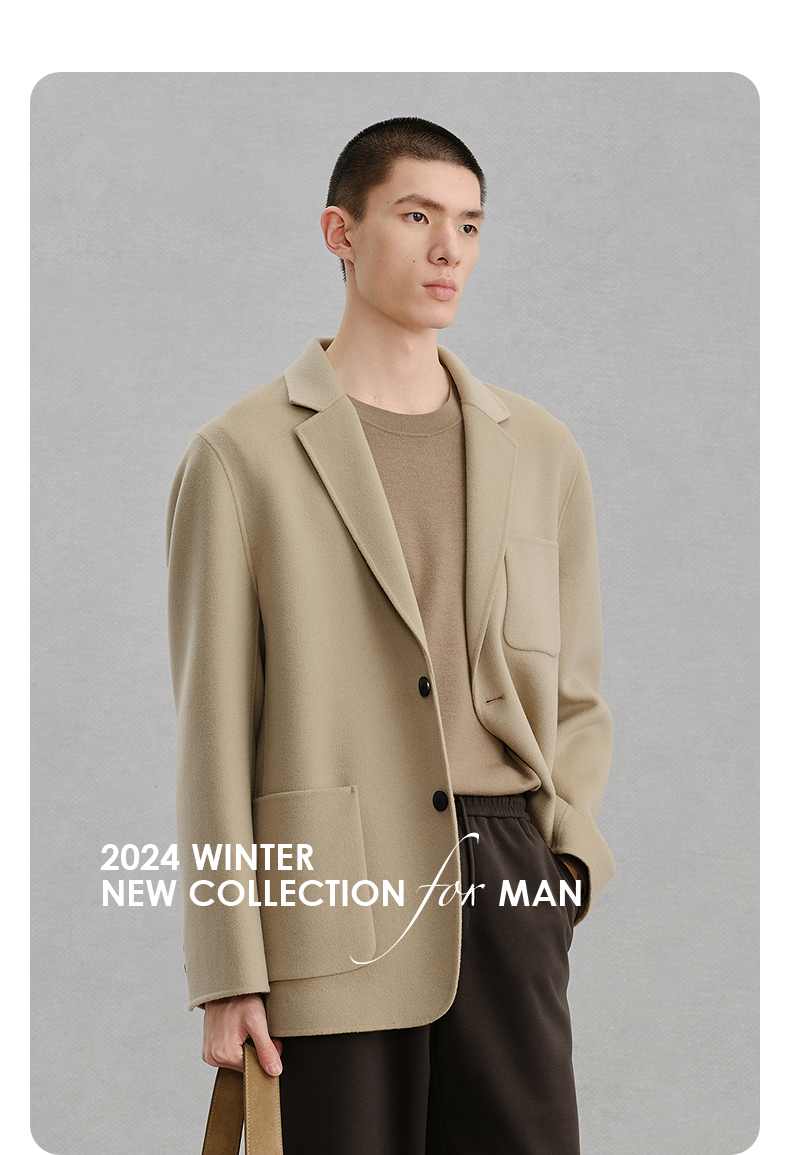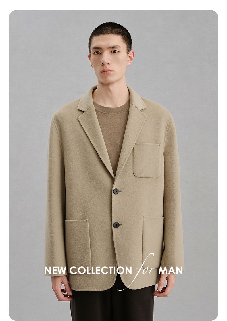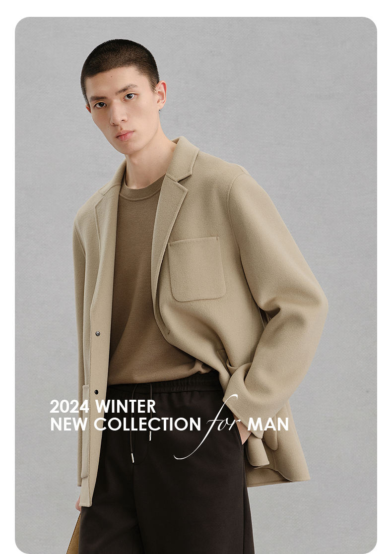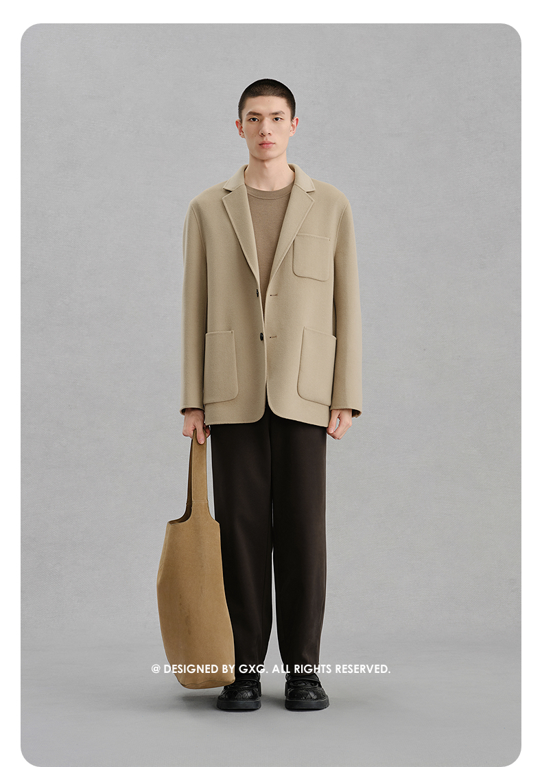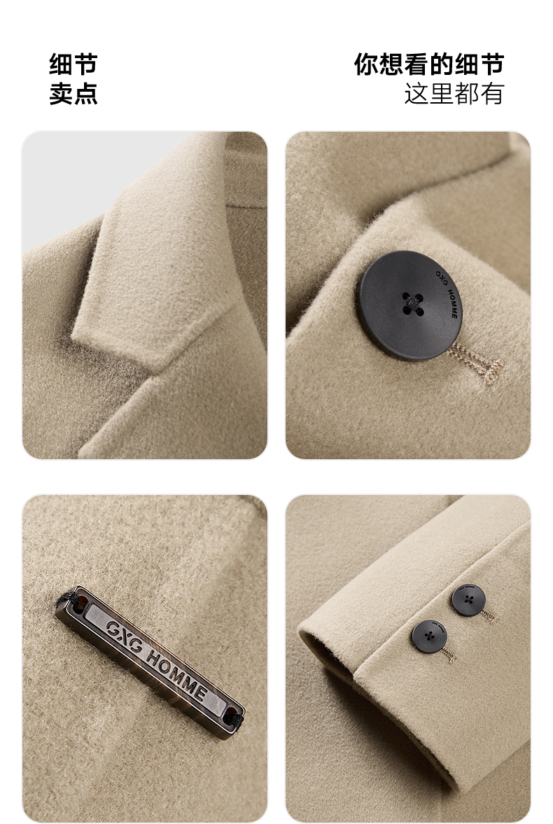 GXG男装 浅卡其贴袋设计通勤短款大衣 冬热卖气质大衣G24X064014