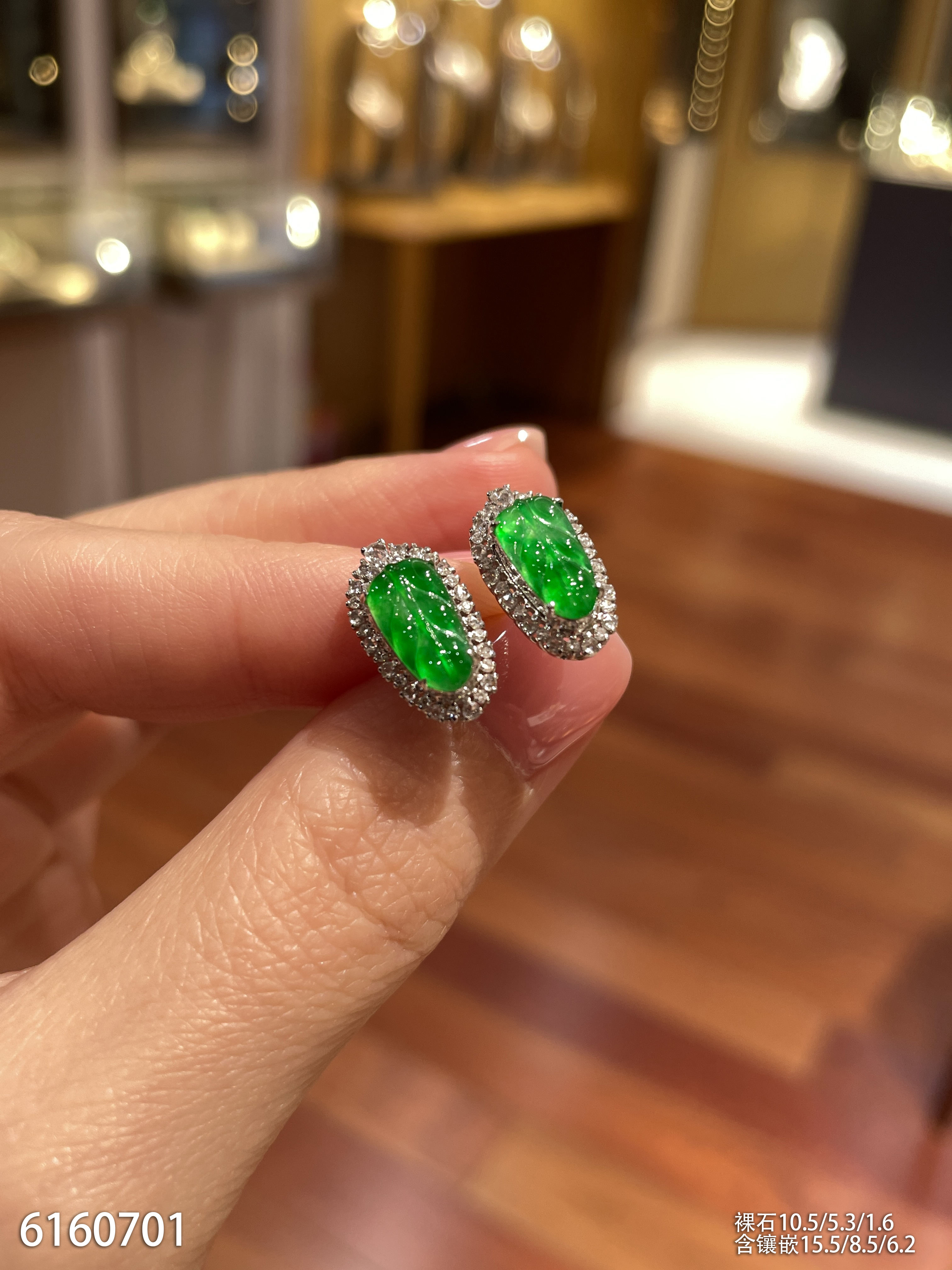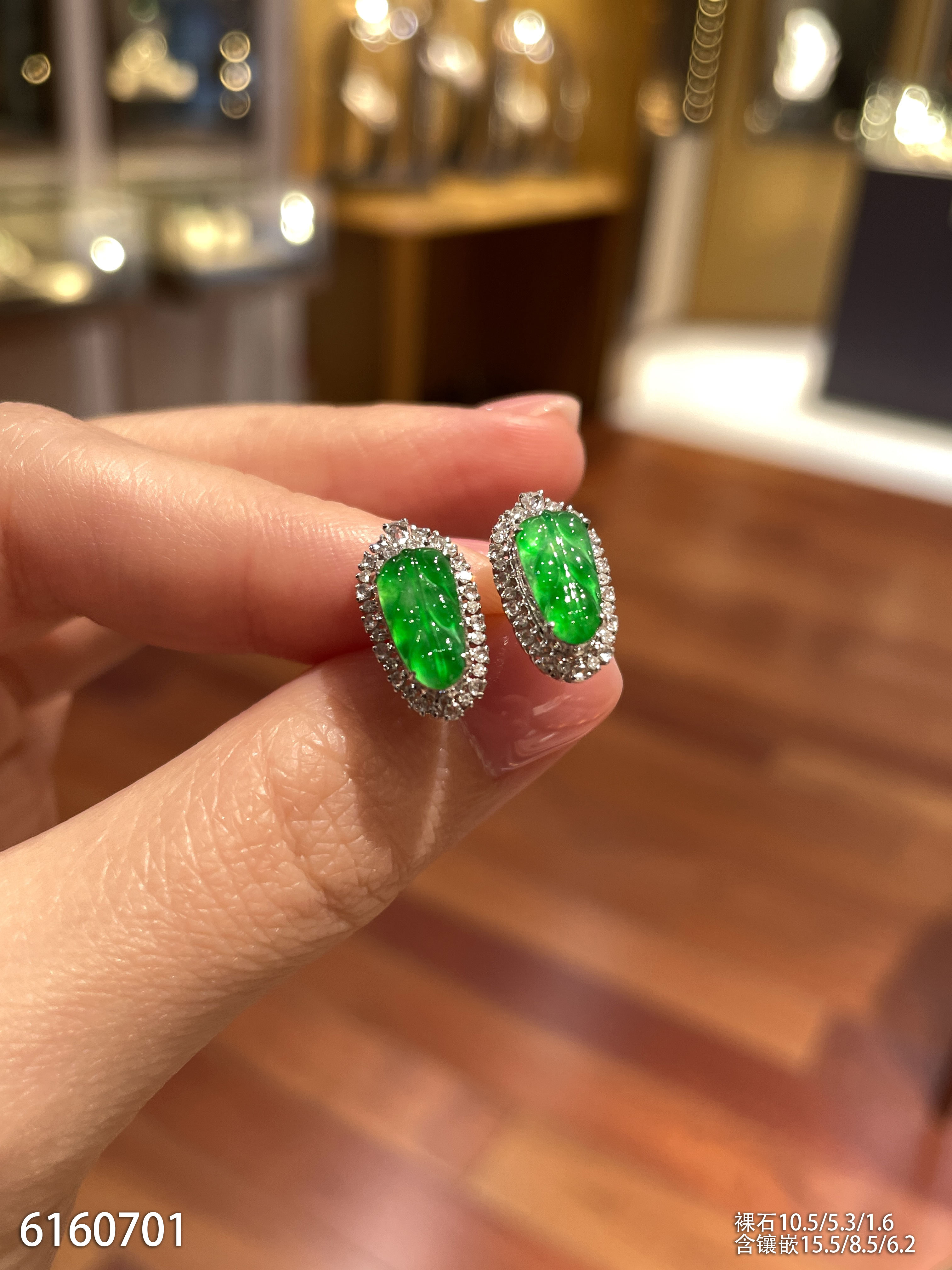 高冰种浓艳绿蛋面耳坠【6025704】具体价格微信咨询