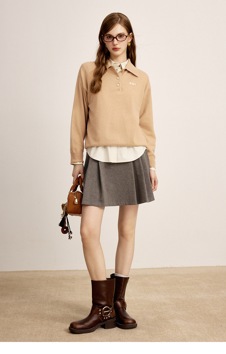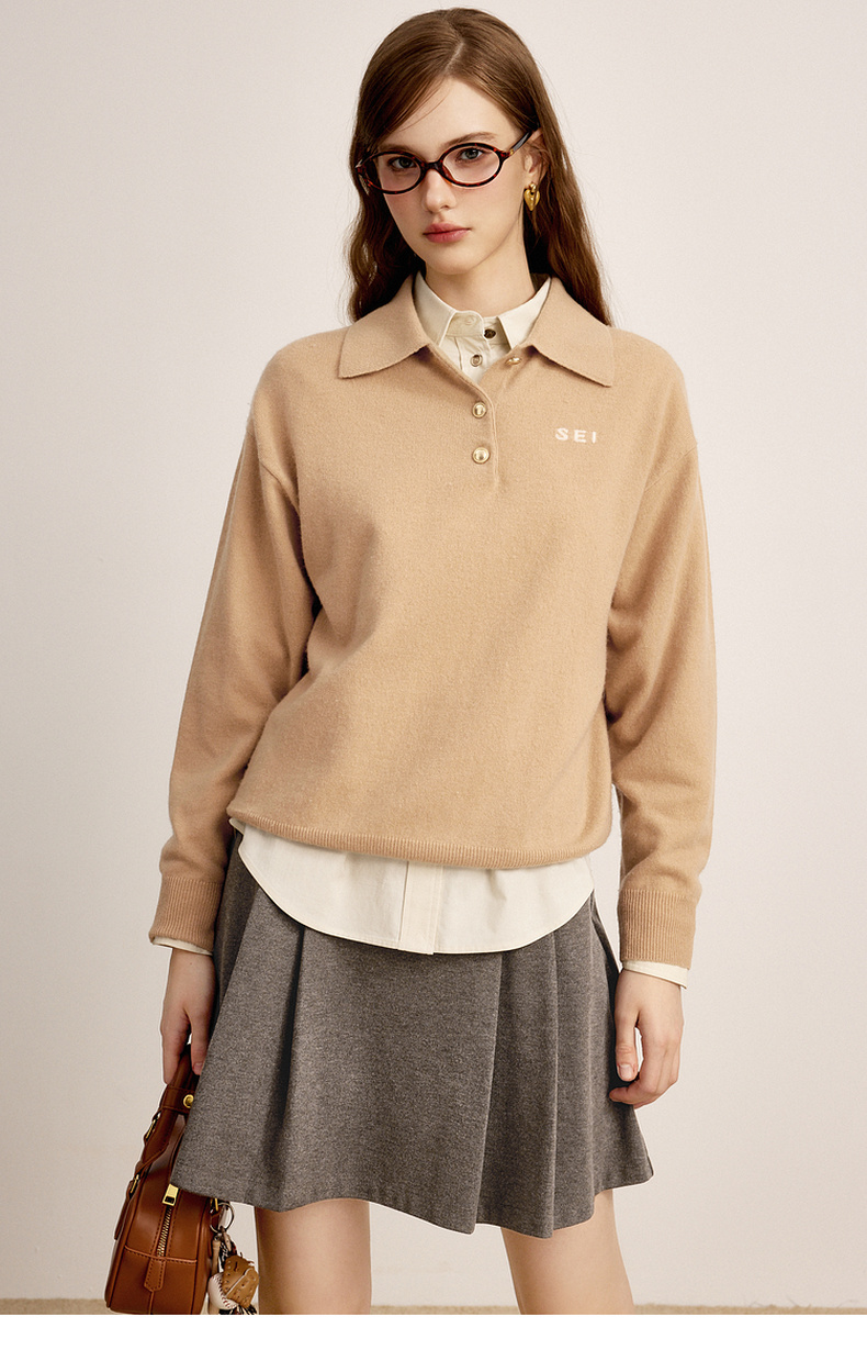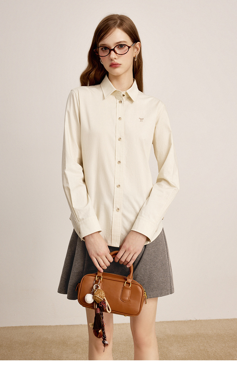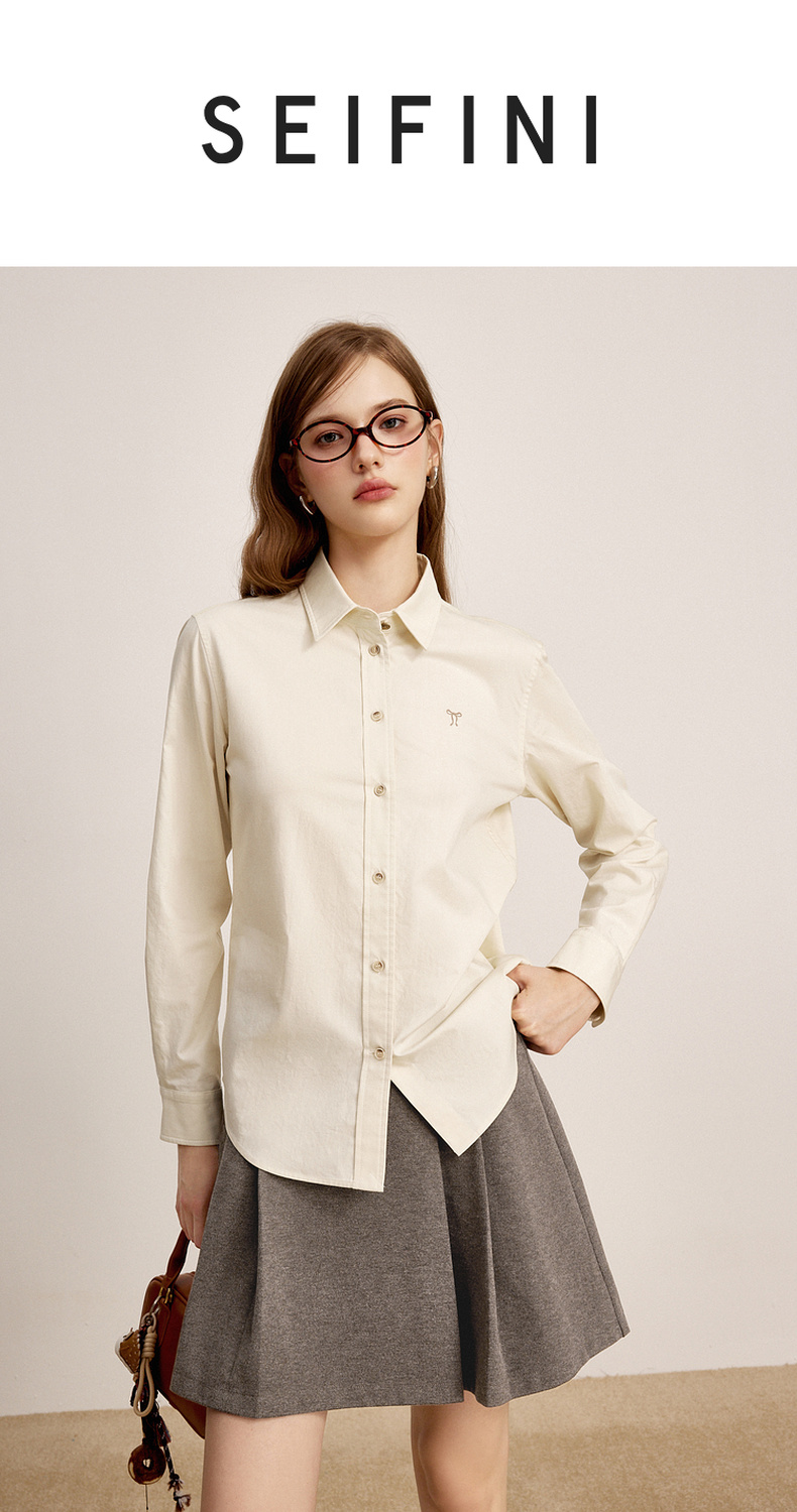 【商场同款】诗凡黎纯色翻领休闲衬衫2024冬新款小衫女3FA422731R