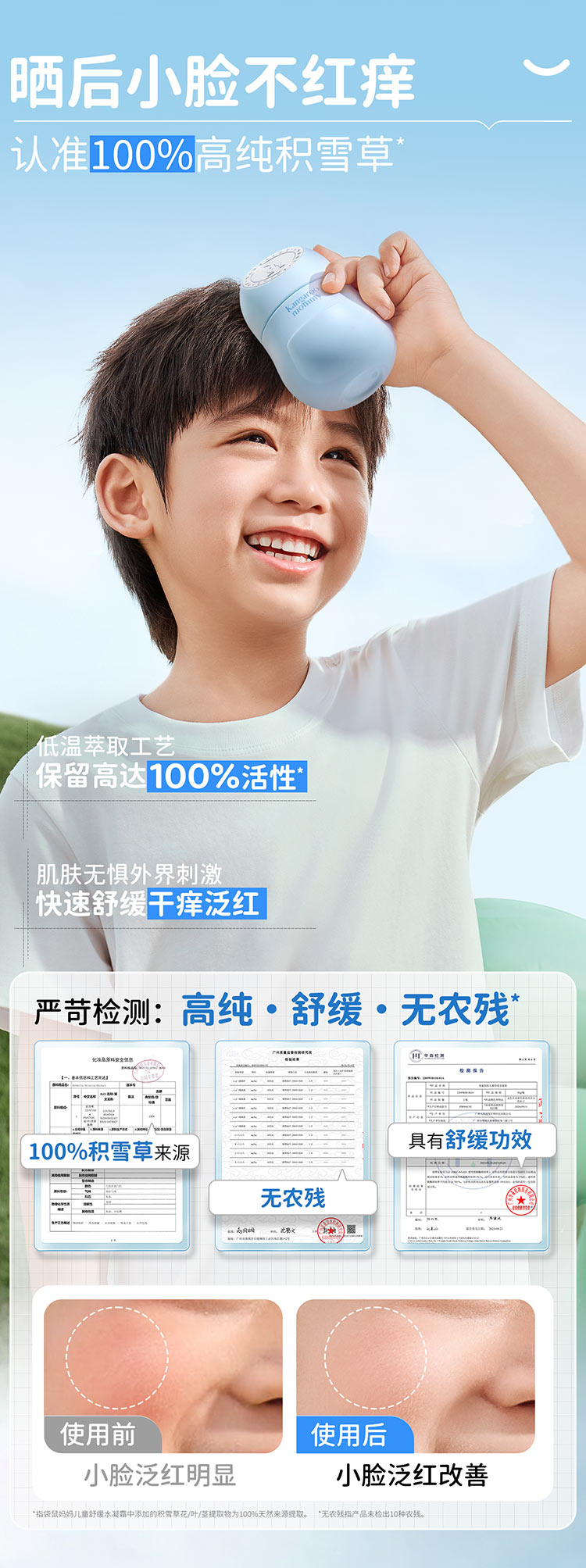 【修护小冰霜】小冰霜保湿秋燥一键舒缓 舒缓晒后小红脸婴儿宝宝霜清爽润肤乳 儿童舒缓水凝霜50g
