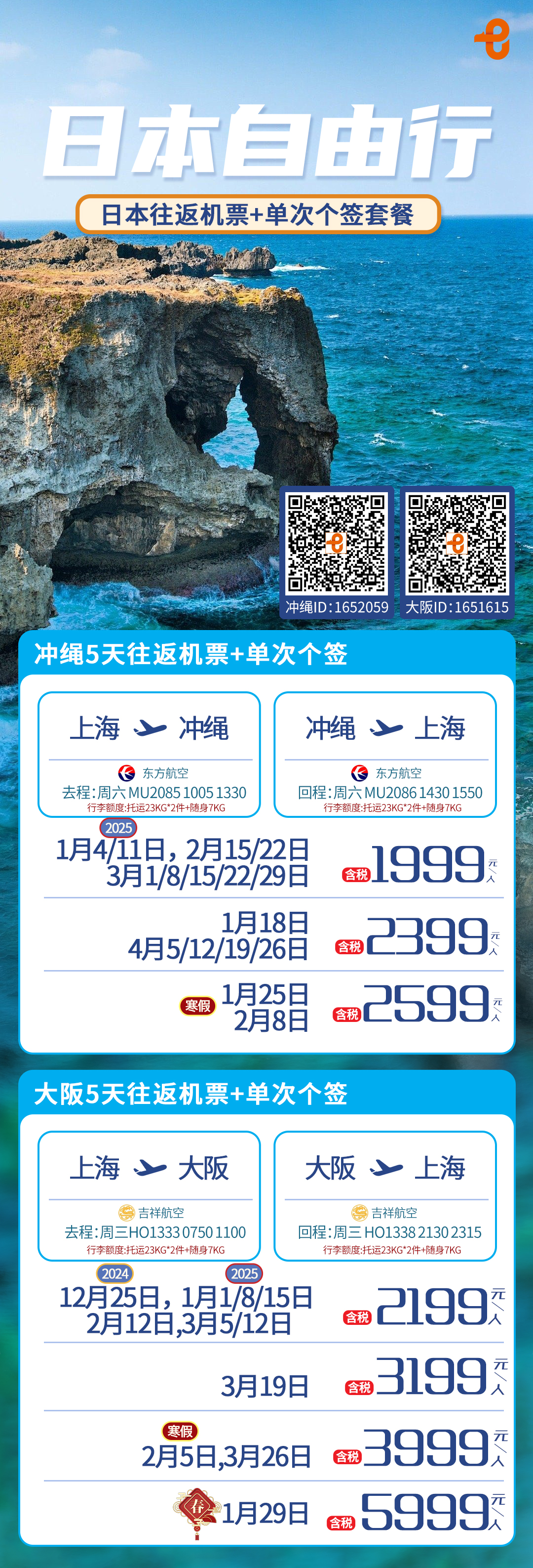 【上海出发】冲绳5天自由行 大阪5天自由行