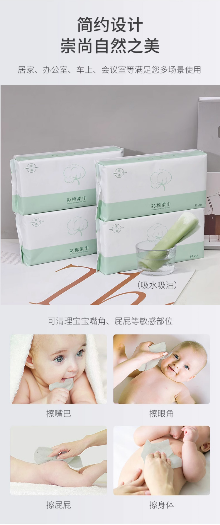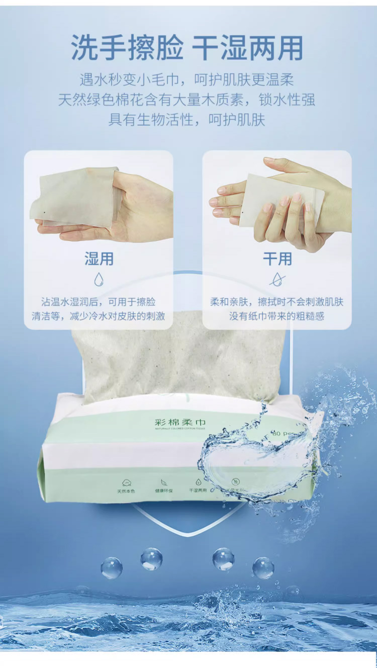 天然彩棉柔巾 3连包/4连包 干湿两用 彩棉洗脸巾 可降解 素道敦煌天然有机彩棉基地 舒适安全健康 不染色不漂白