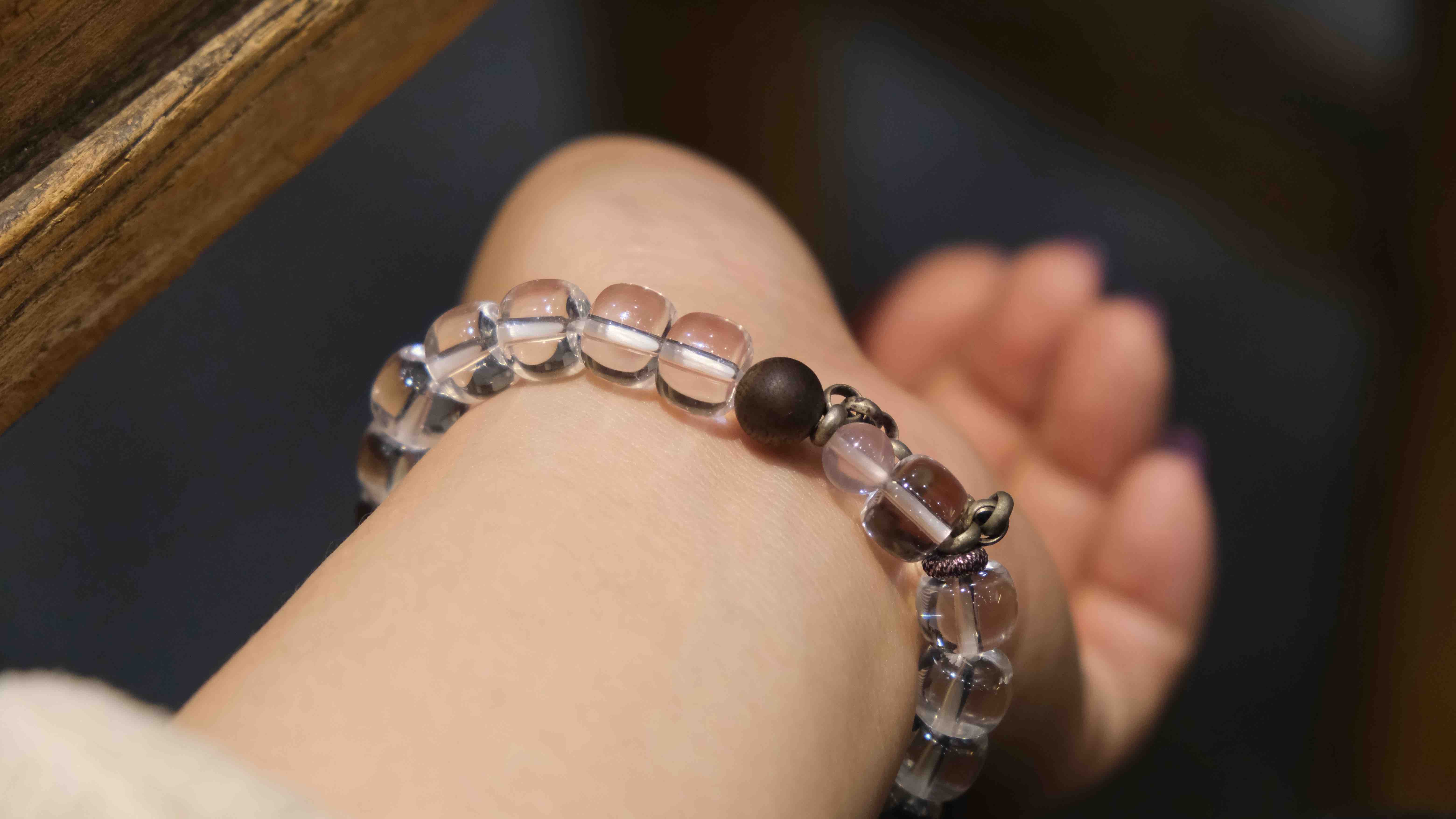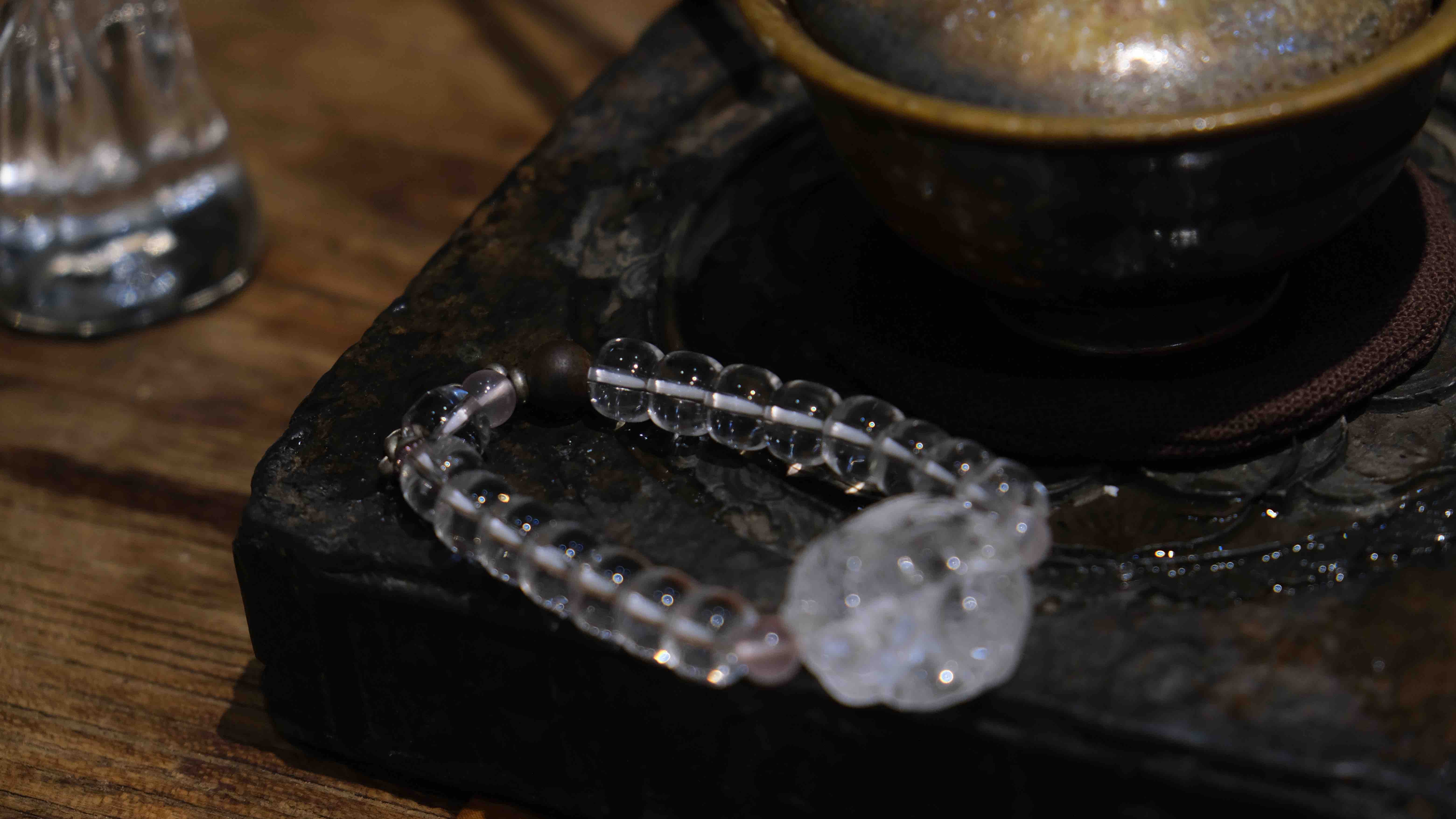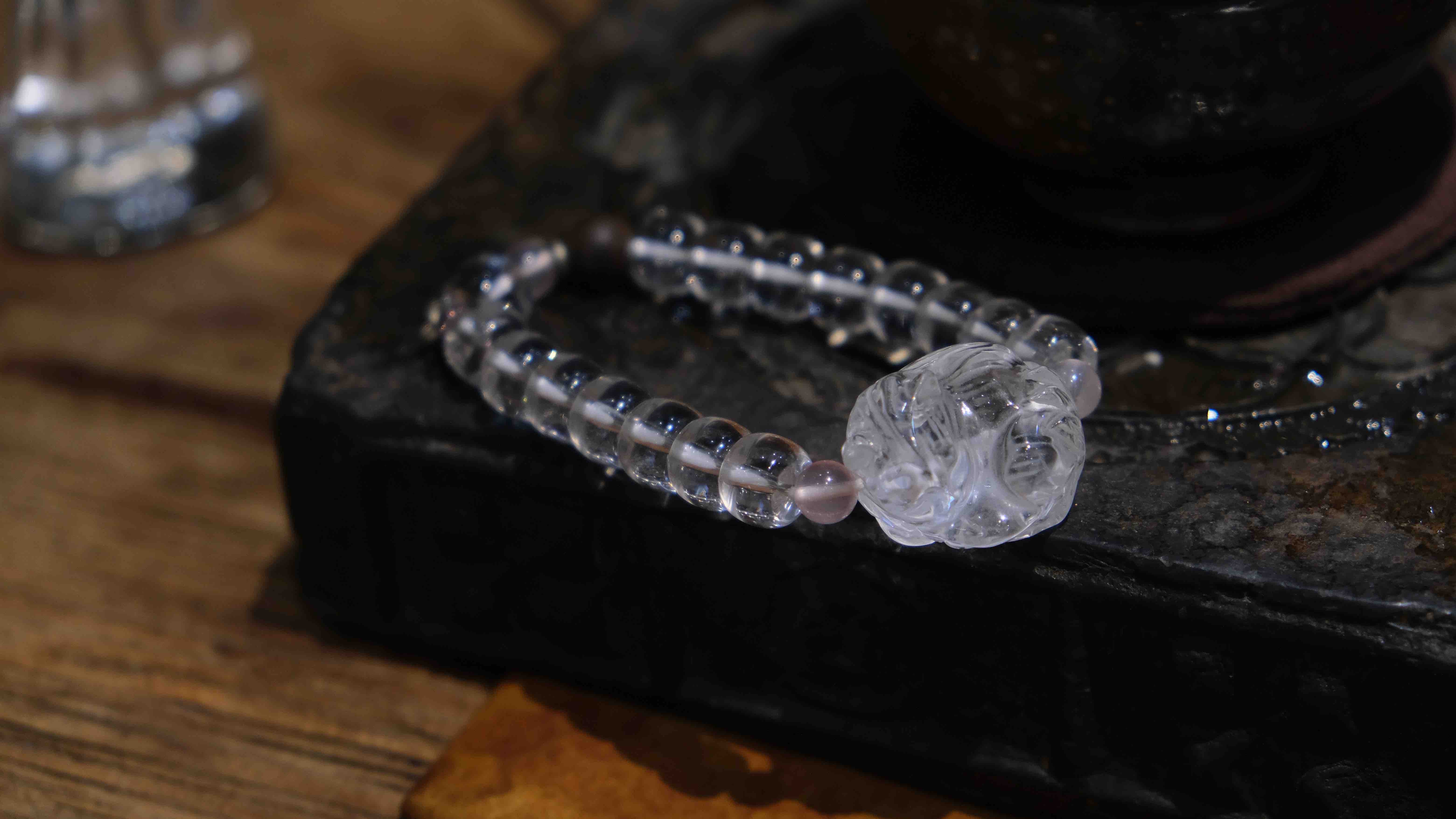 这批白水晶非常纯净,上手质感非常好,并且是腰珠形状,手工制型,能看出对得起这批白水晶的纯净质感了。