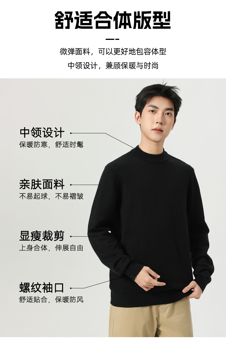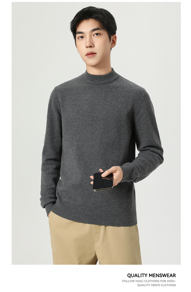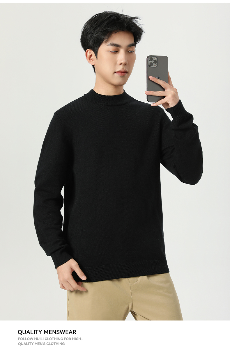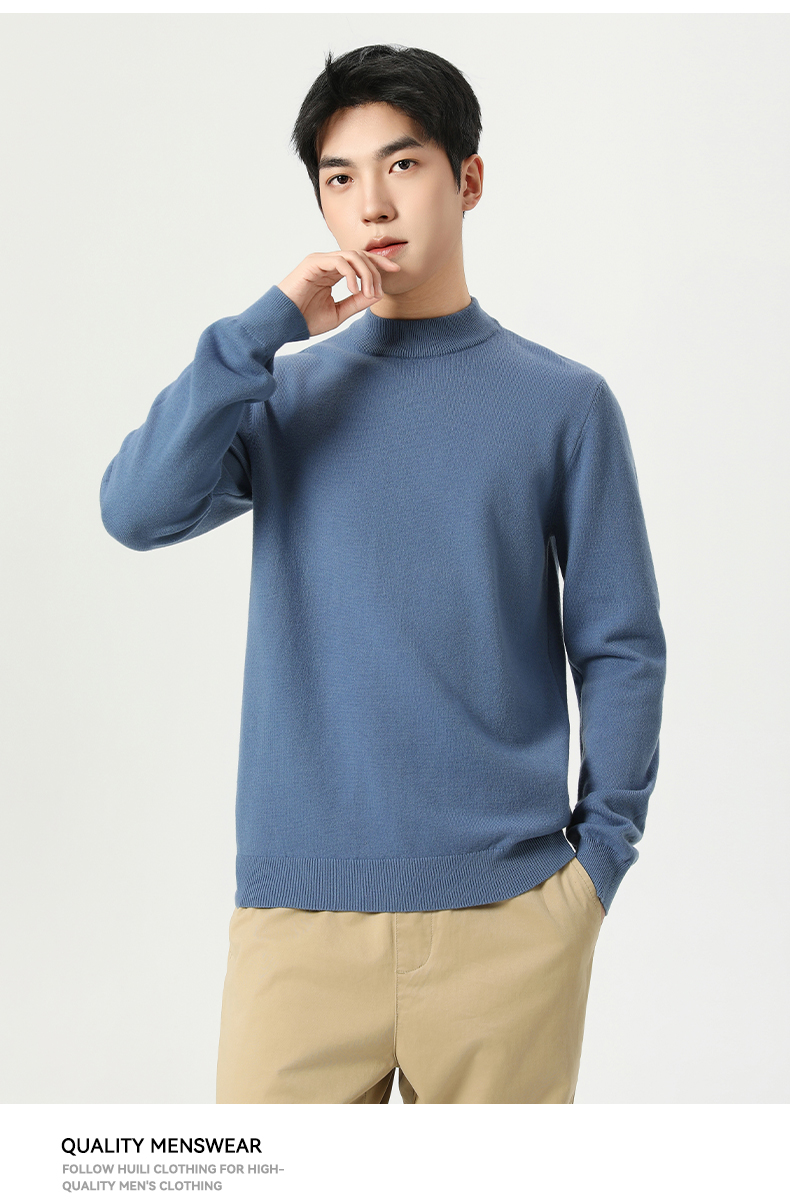 回力毛衣男冬季2025新款半高领打底衫蓝色内搭上衣冬装中领针织衫