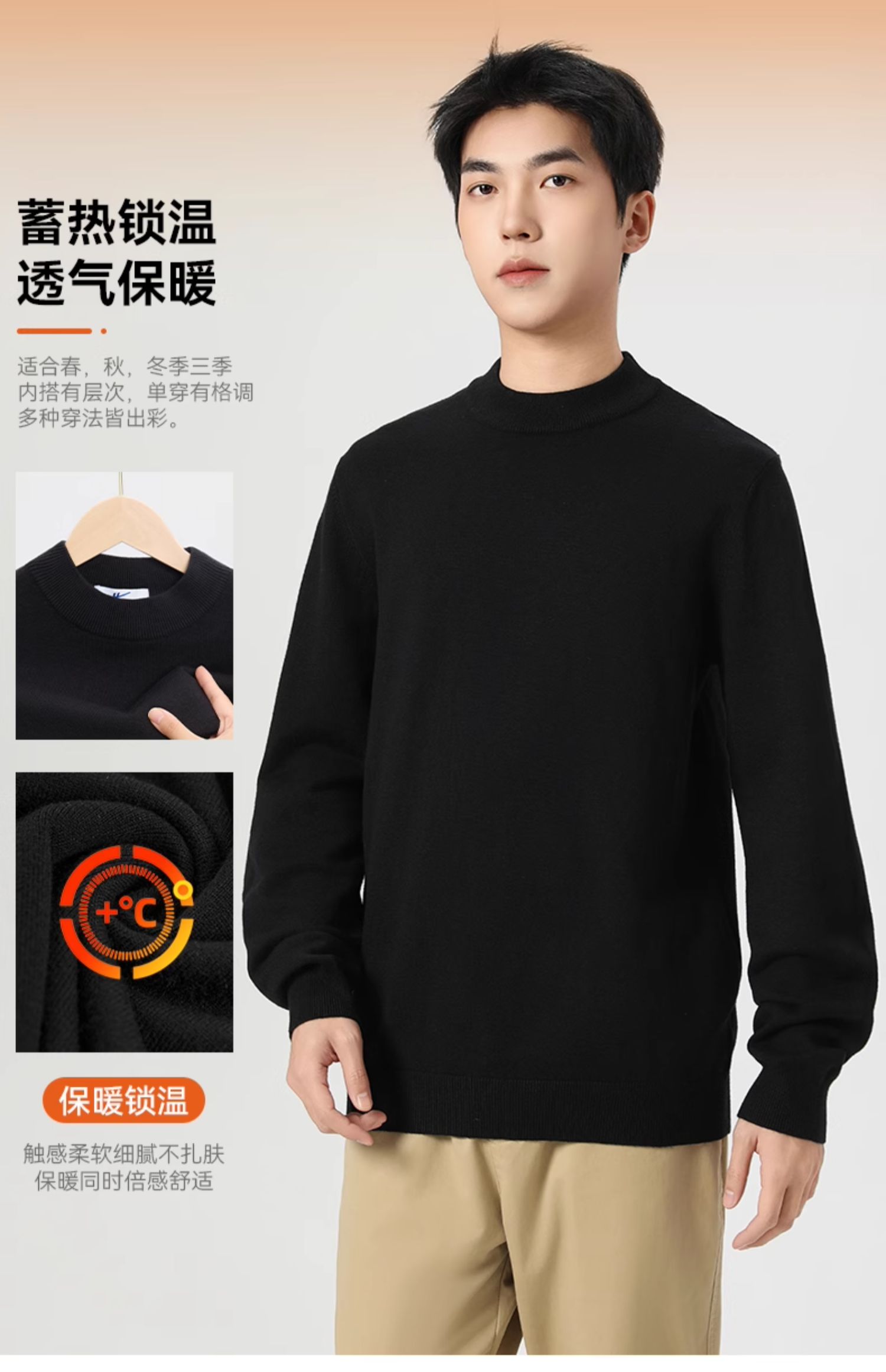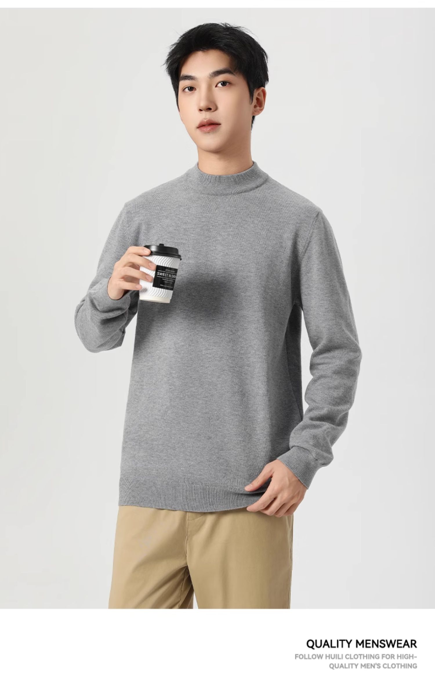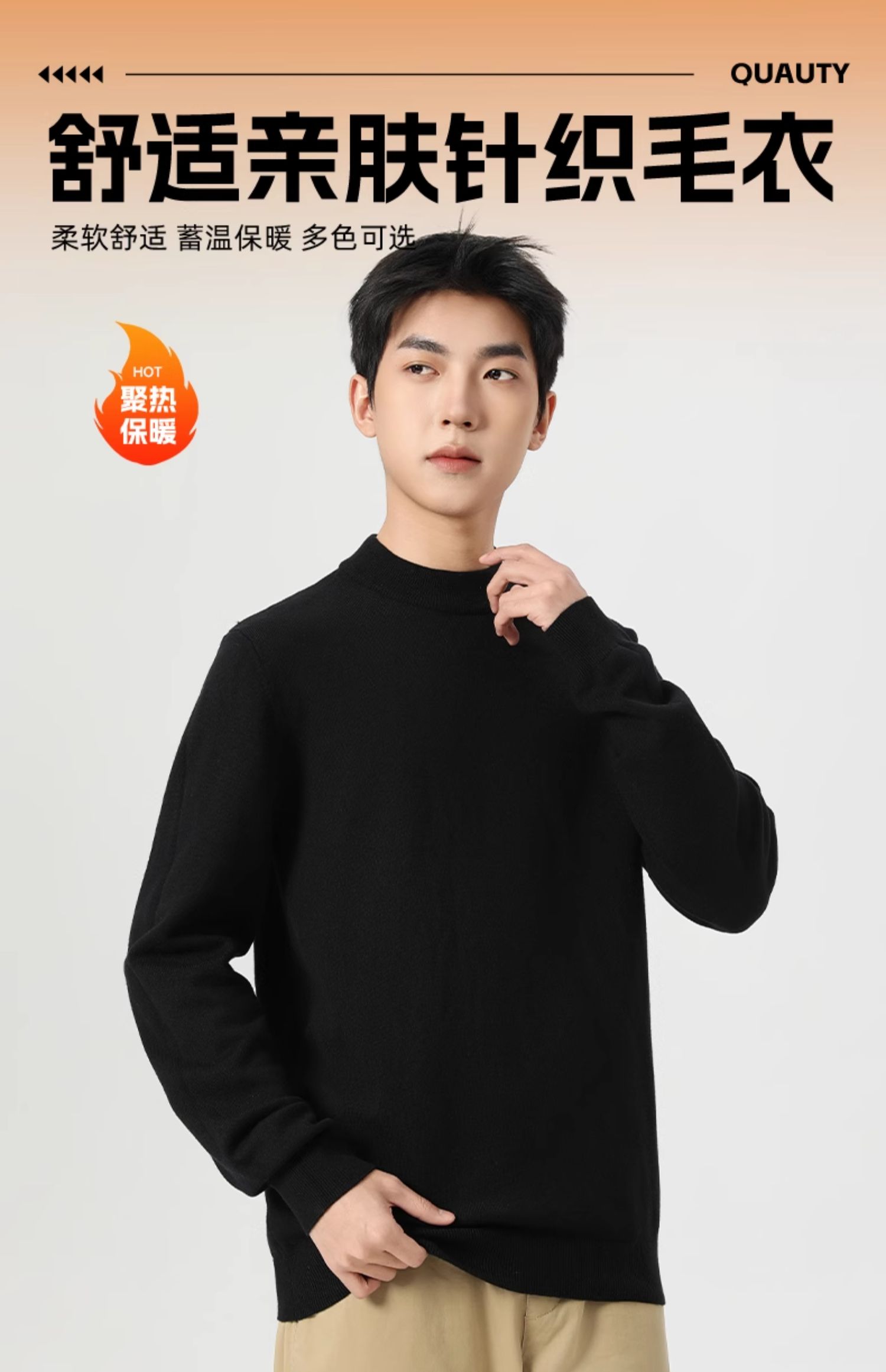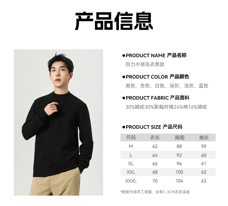 回力毛衣男冬季2025新款半高领打底衫蓝色内搭上衣冬装中领针织衫