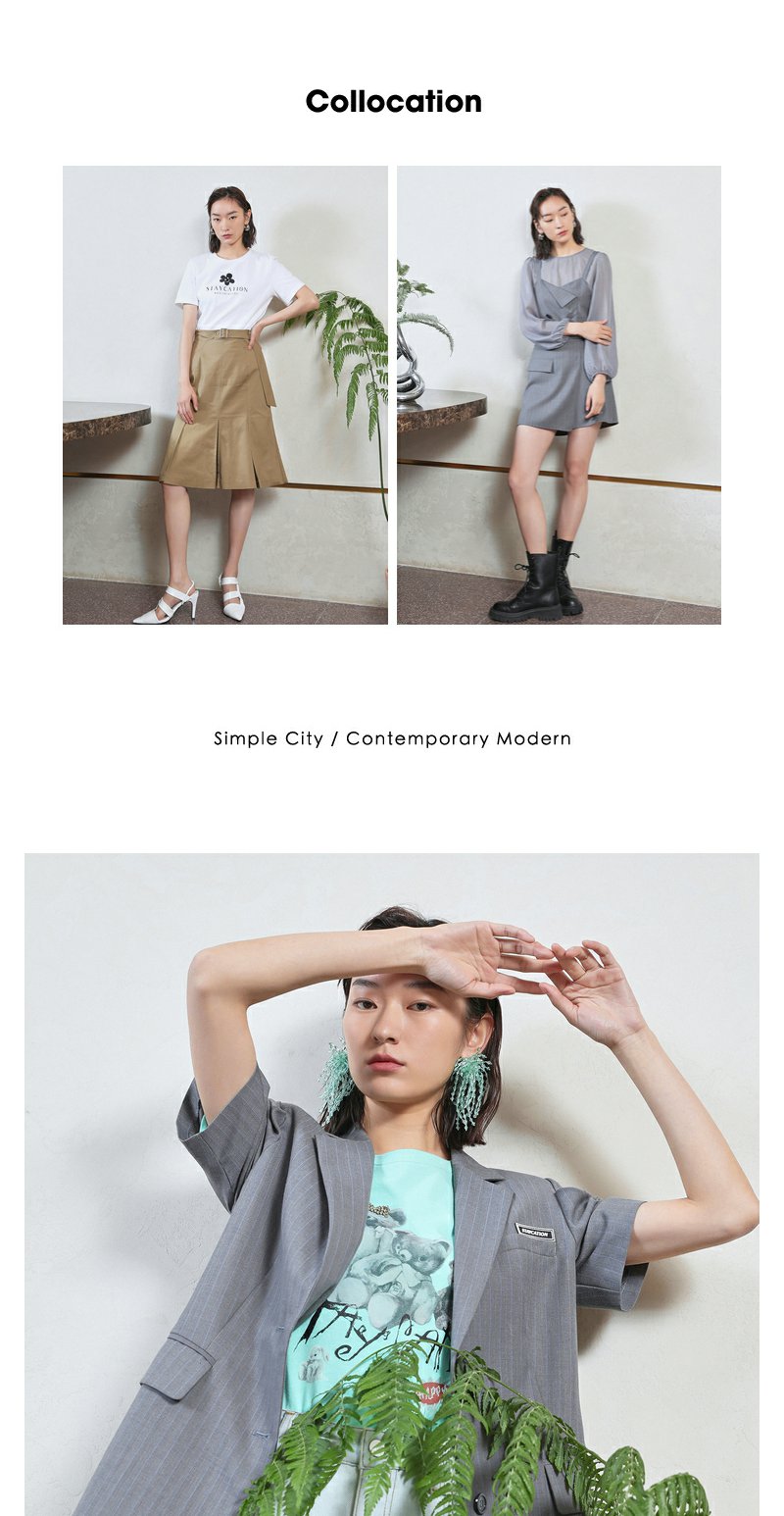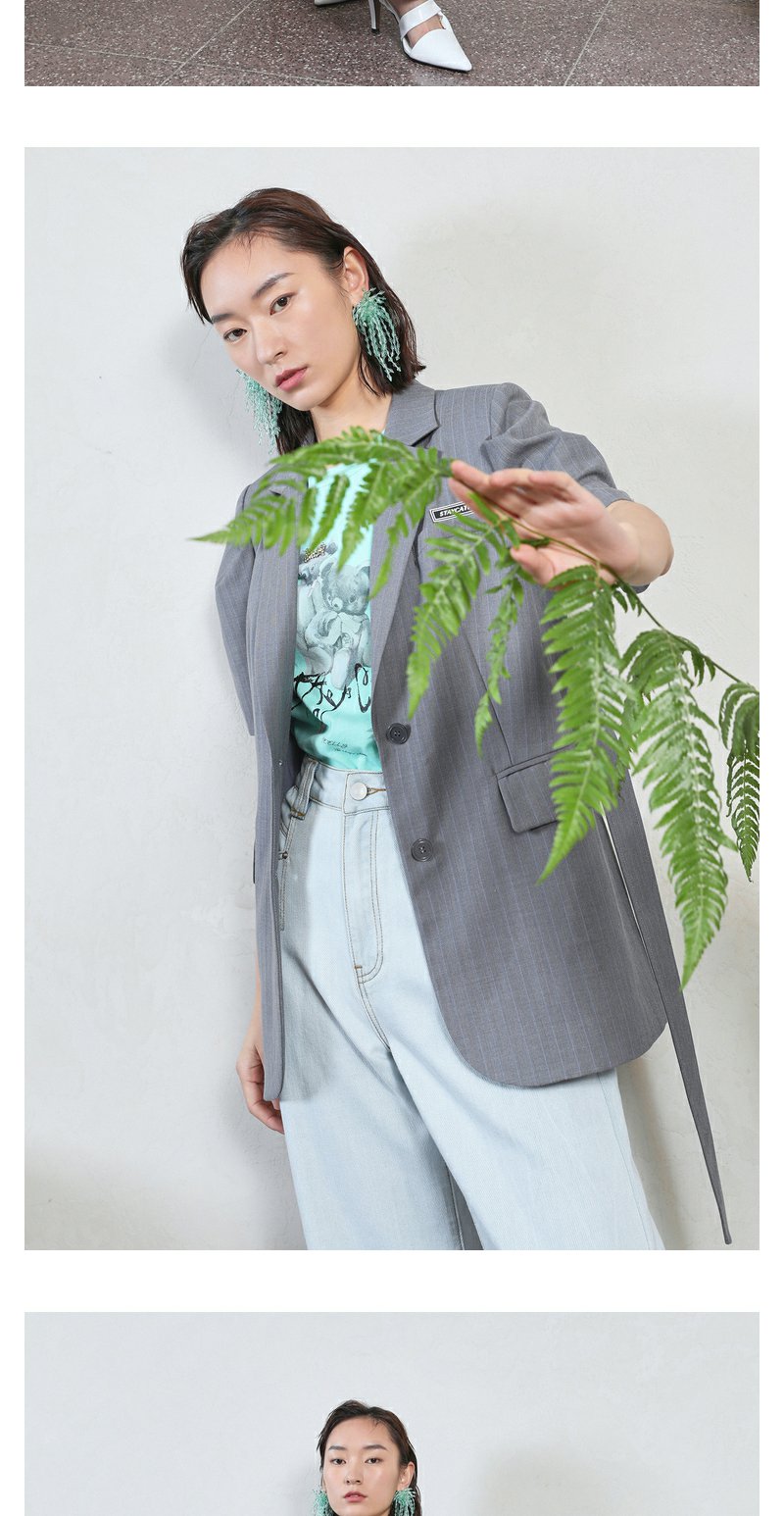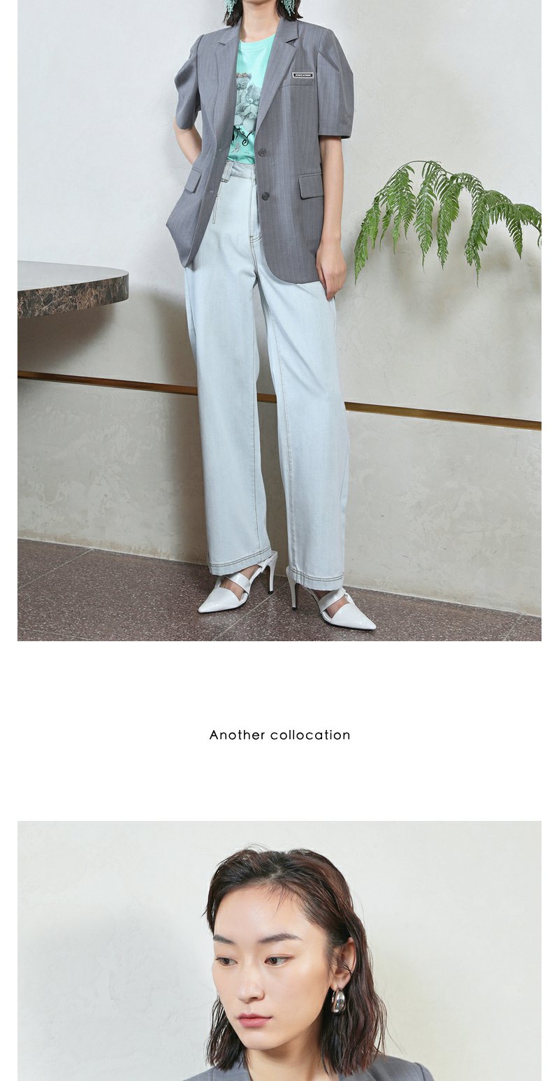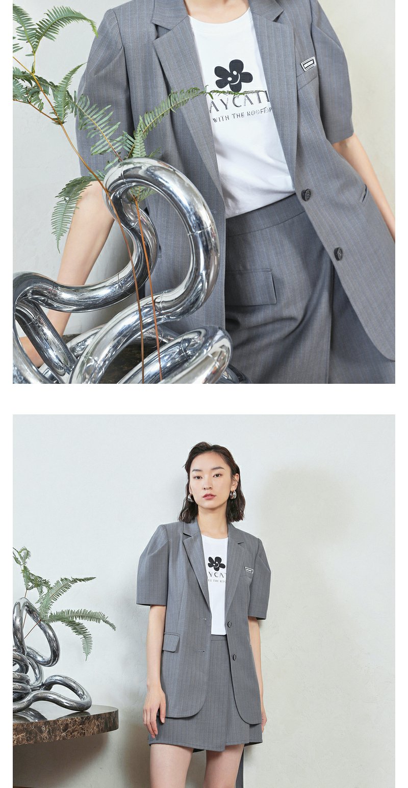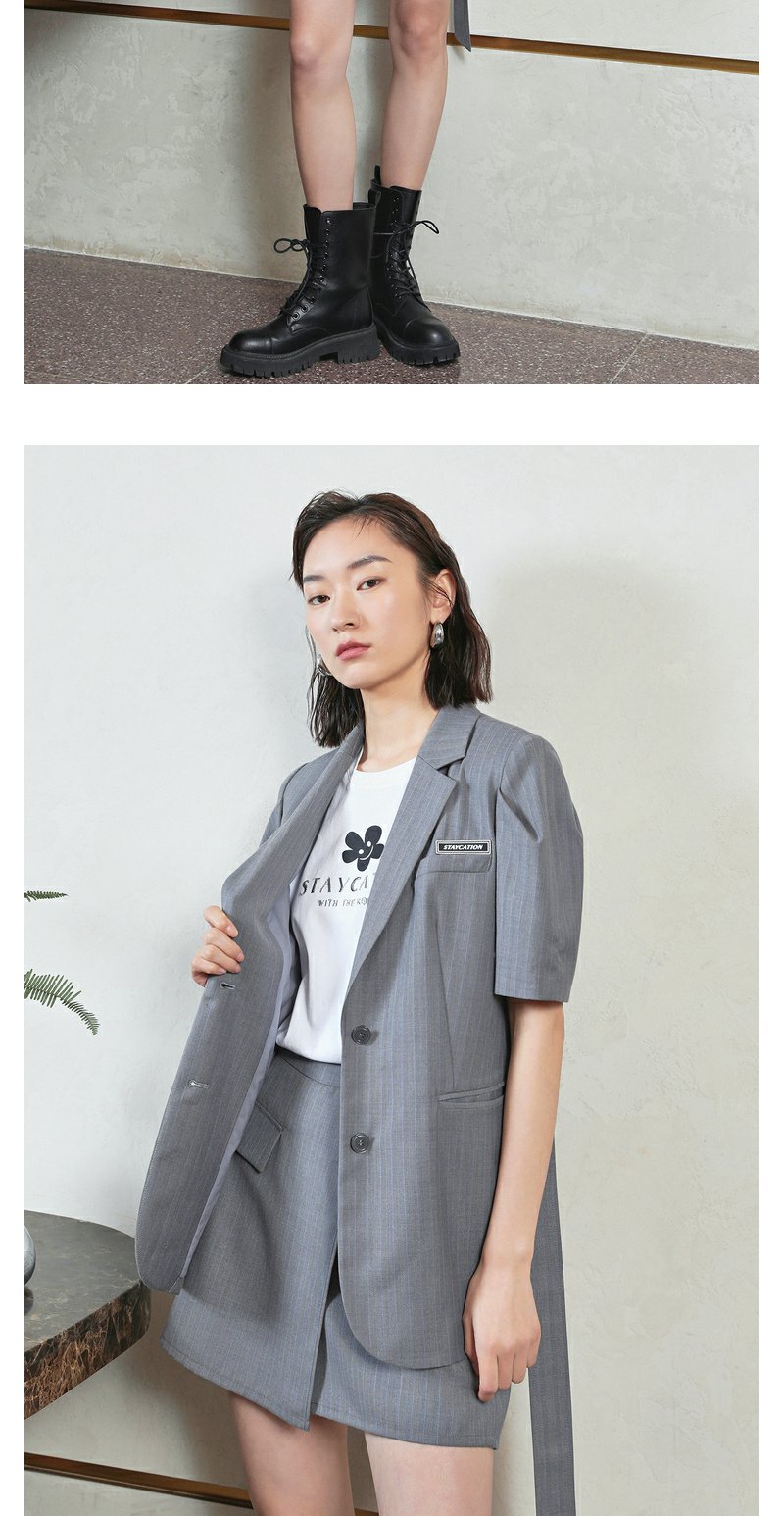 NEELLY纳俪商场同款职场OL竖条纹短袖收腰系带西装廓形西服女外套N23044W04577