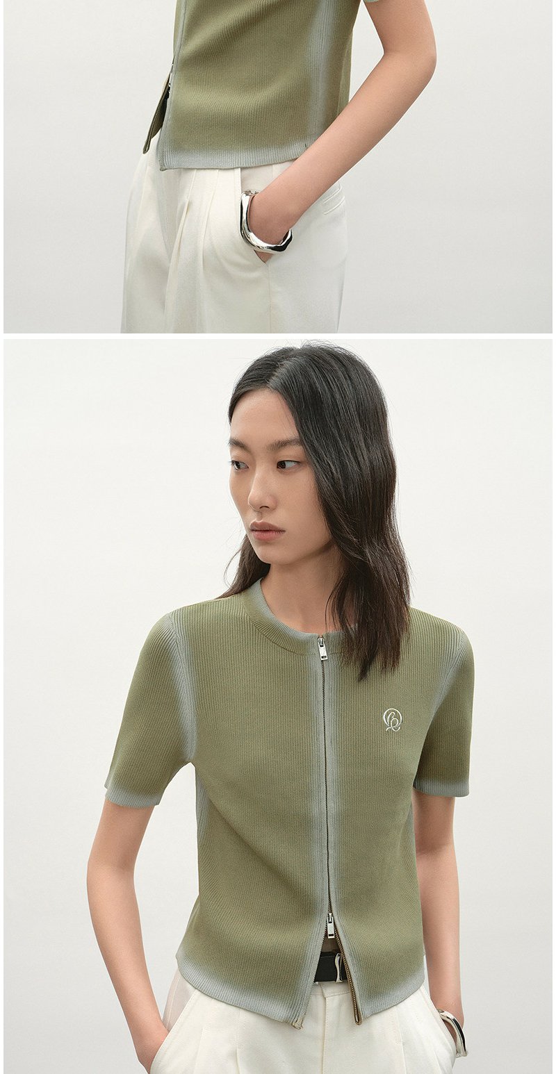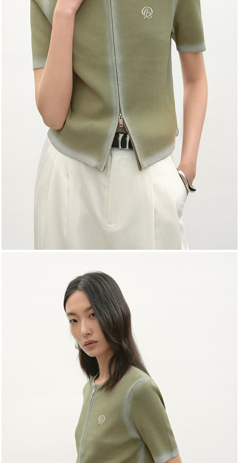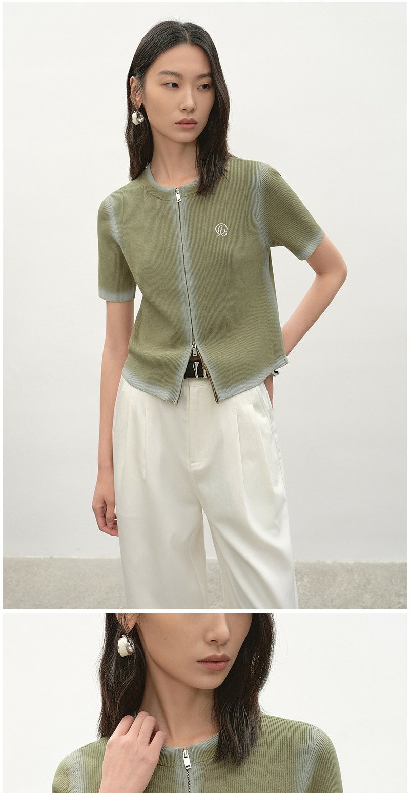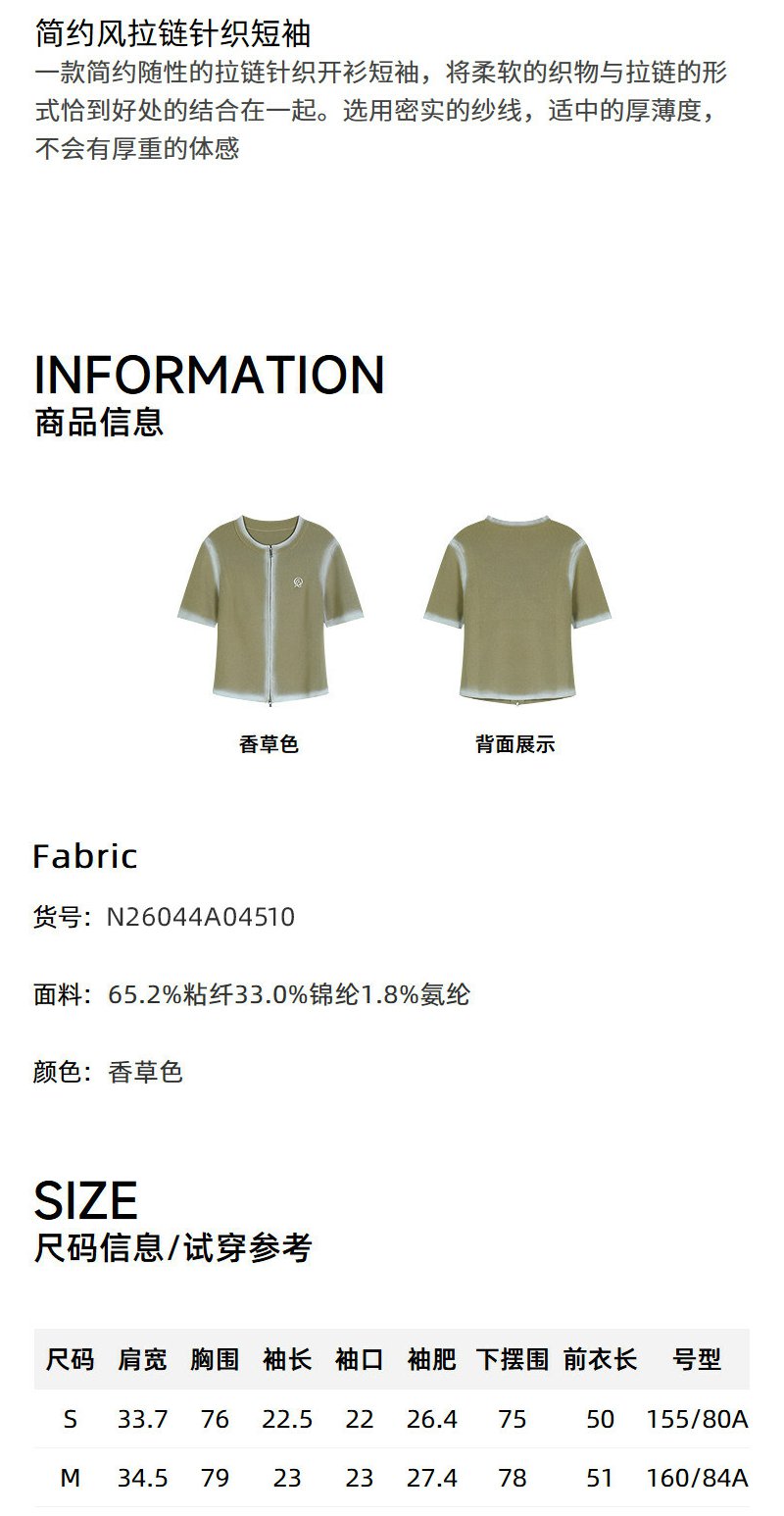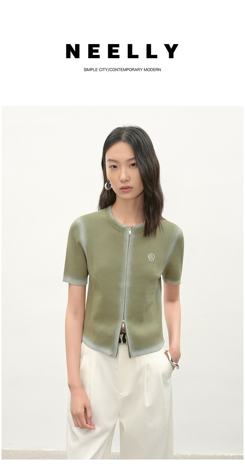 NEELLY纳俪商场同款夏新款简约随性拉链款针织开衫女显白舒适毛衣N26044A04510