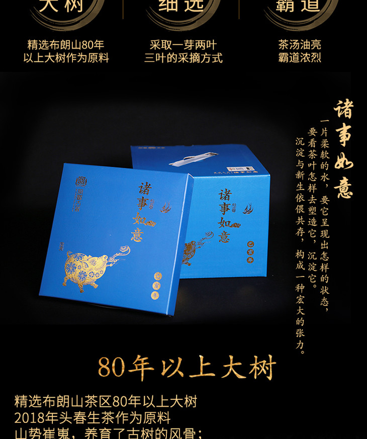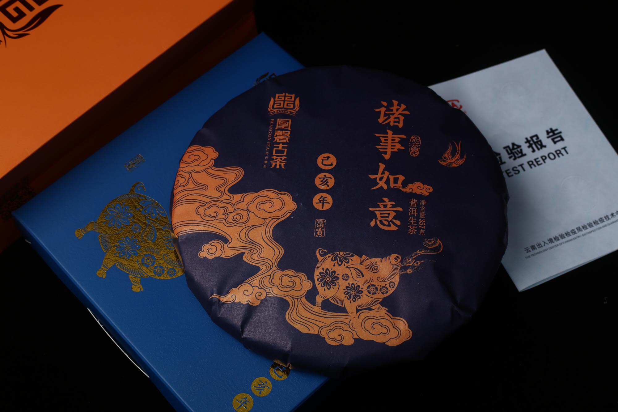 【礼盒装】凰馨古茶诸事如意普洱茶生茶357g云南布朗山2018年大树纯料生茶饼