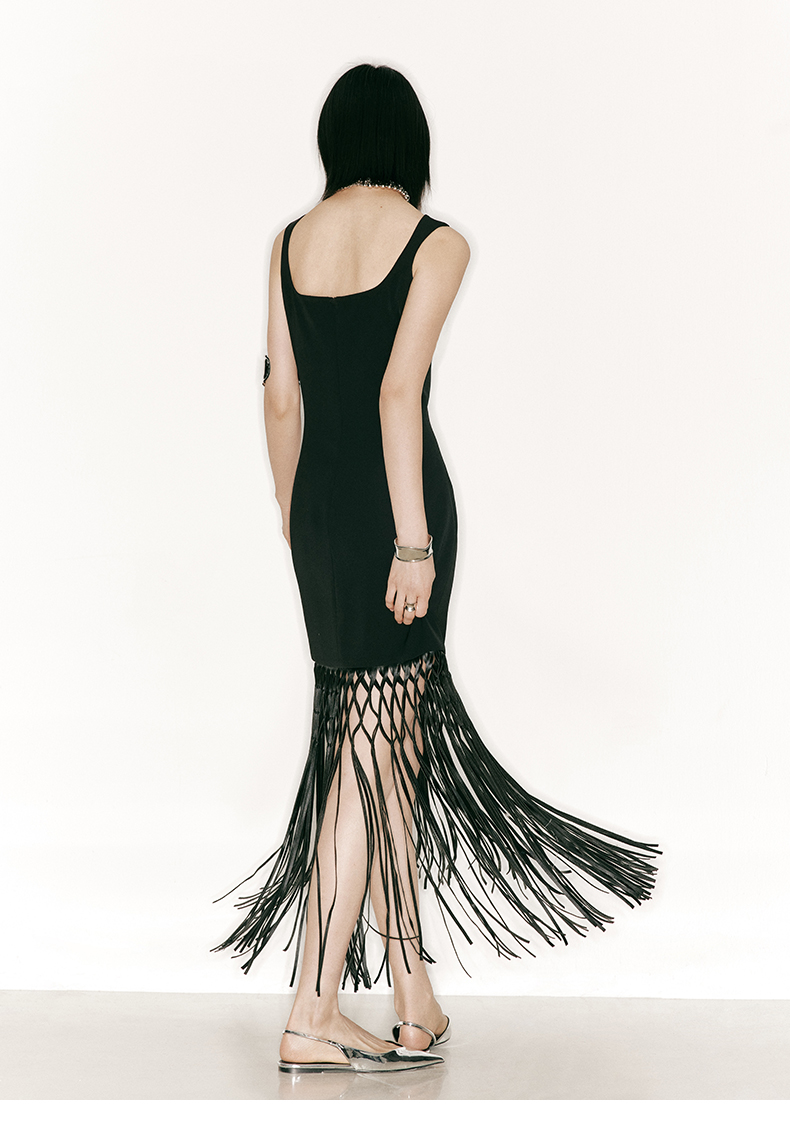 【独秀】重工流苏编织下摆沙漏方领连衣裙/23000041A