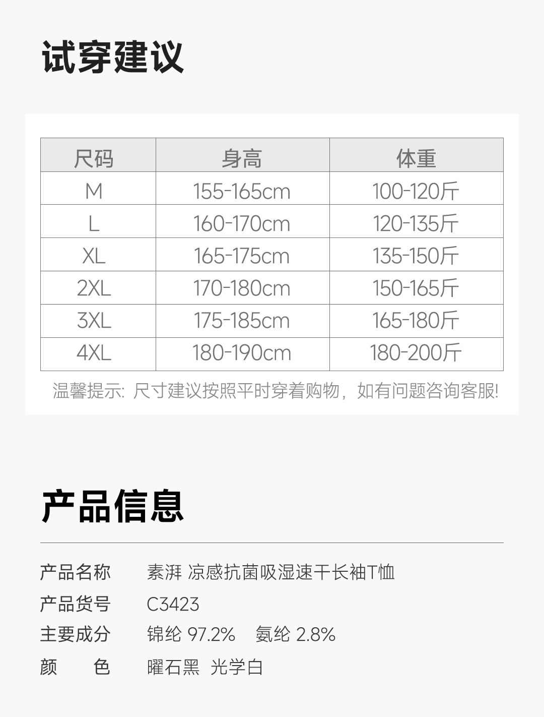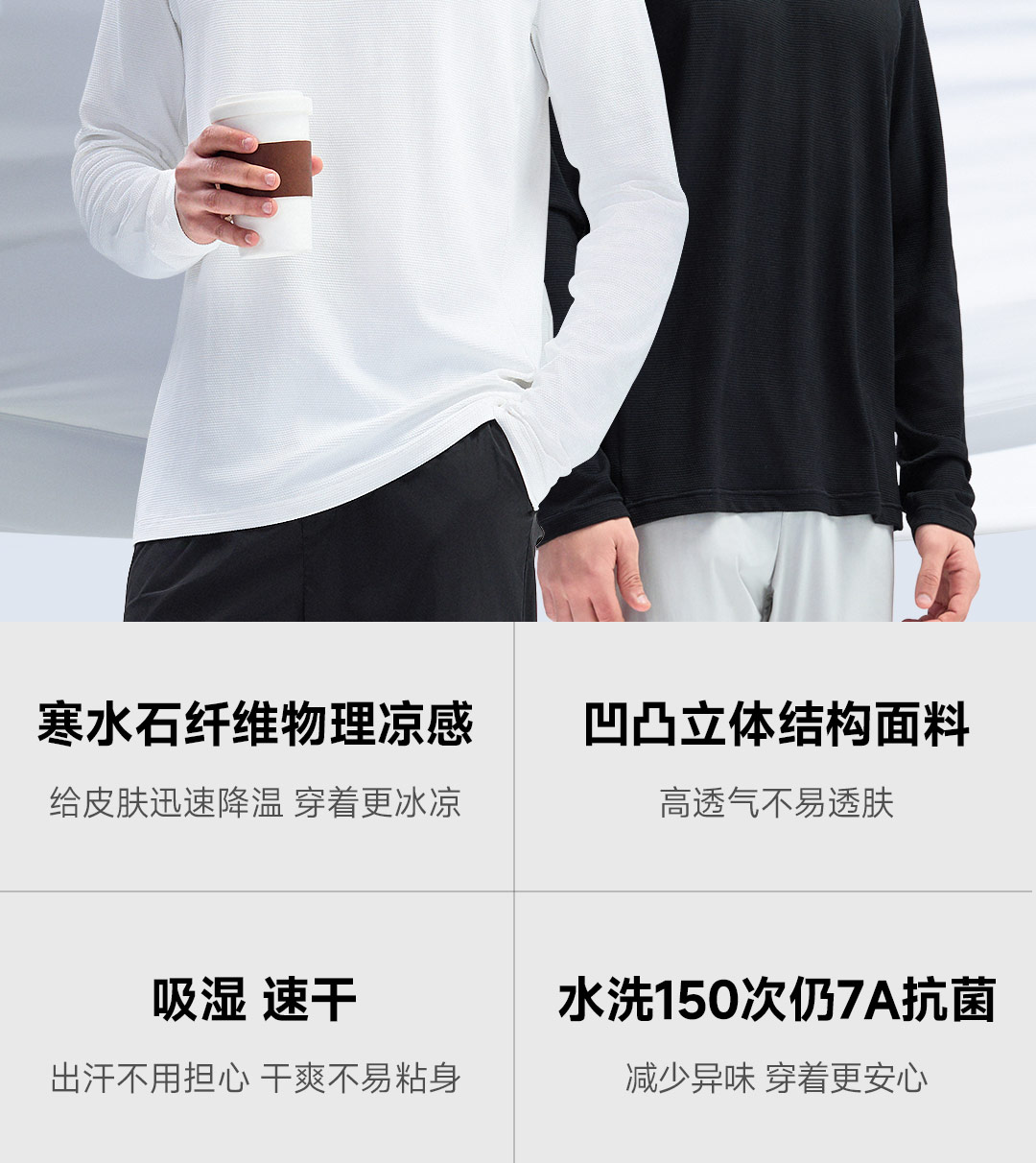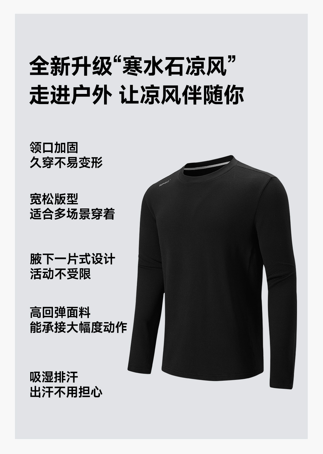 素湃Supield百叶窗吸湿速干长袖T恤男7A抗菌寒水石凉感运动长T