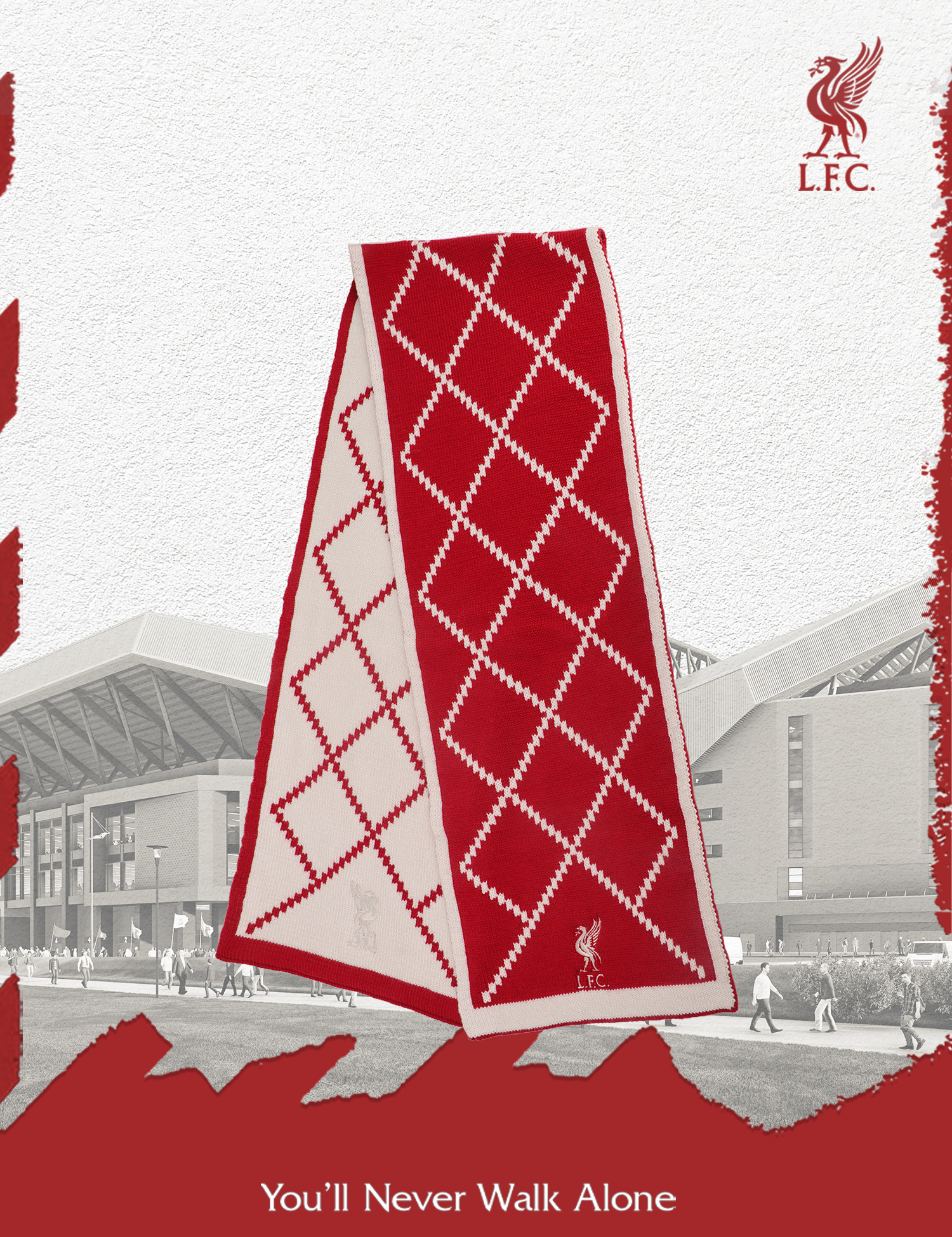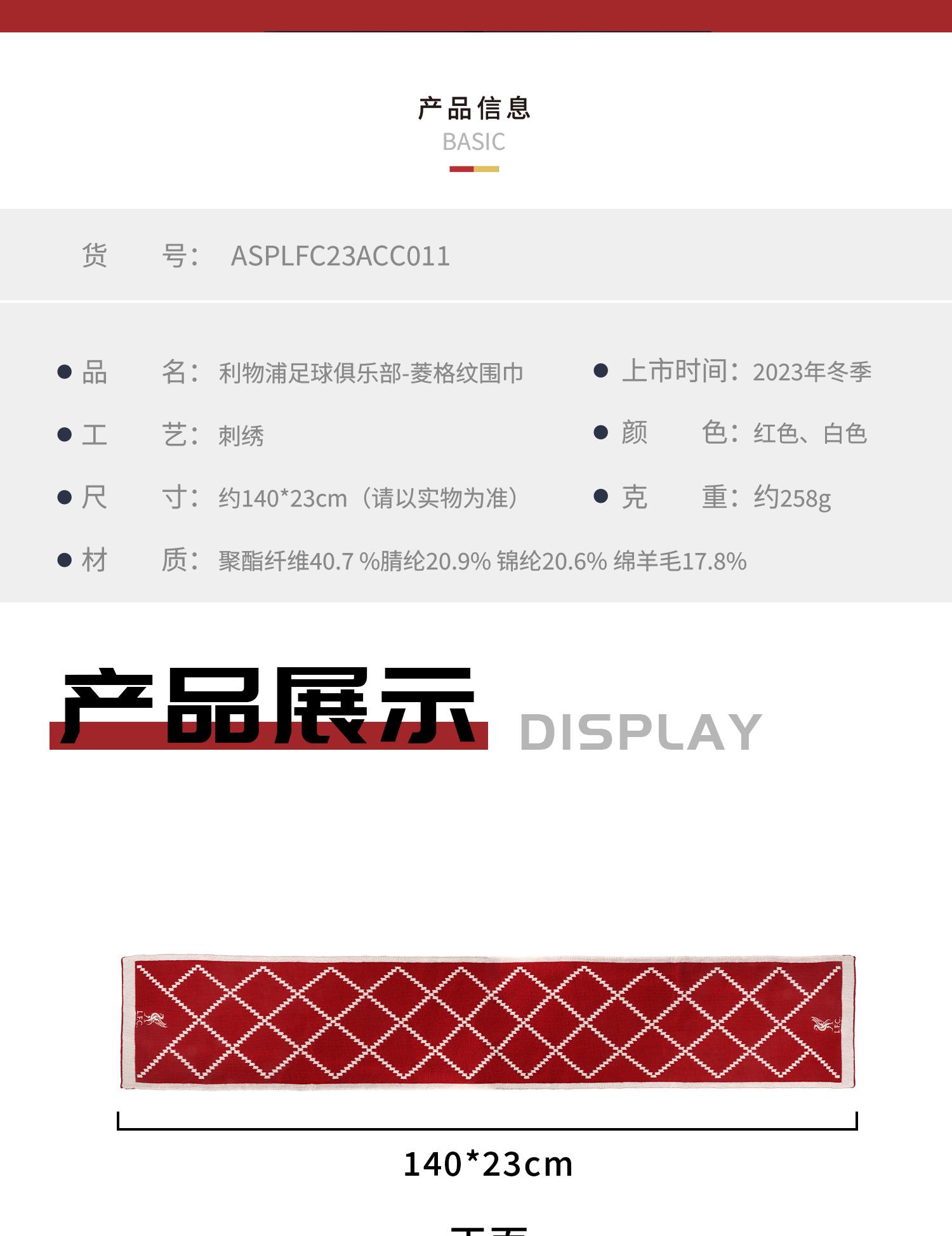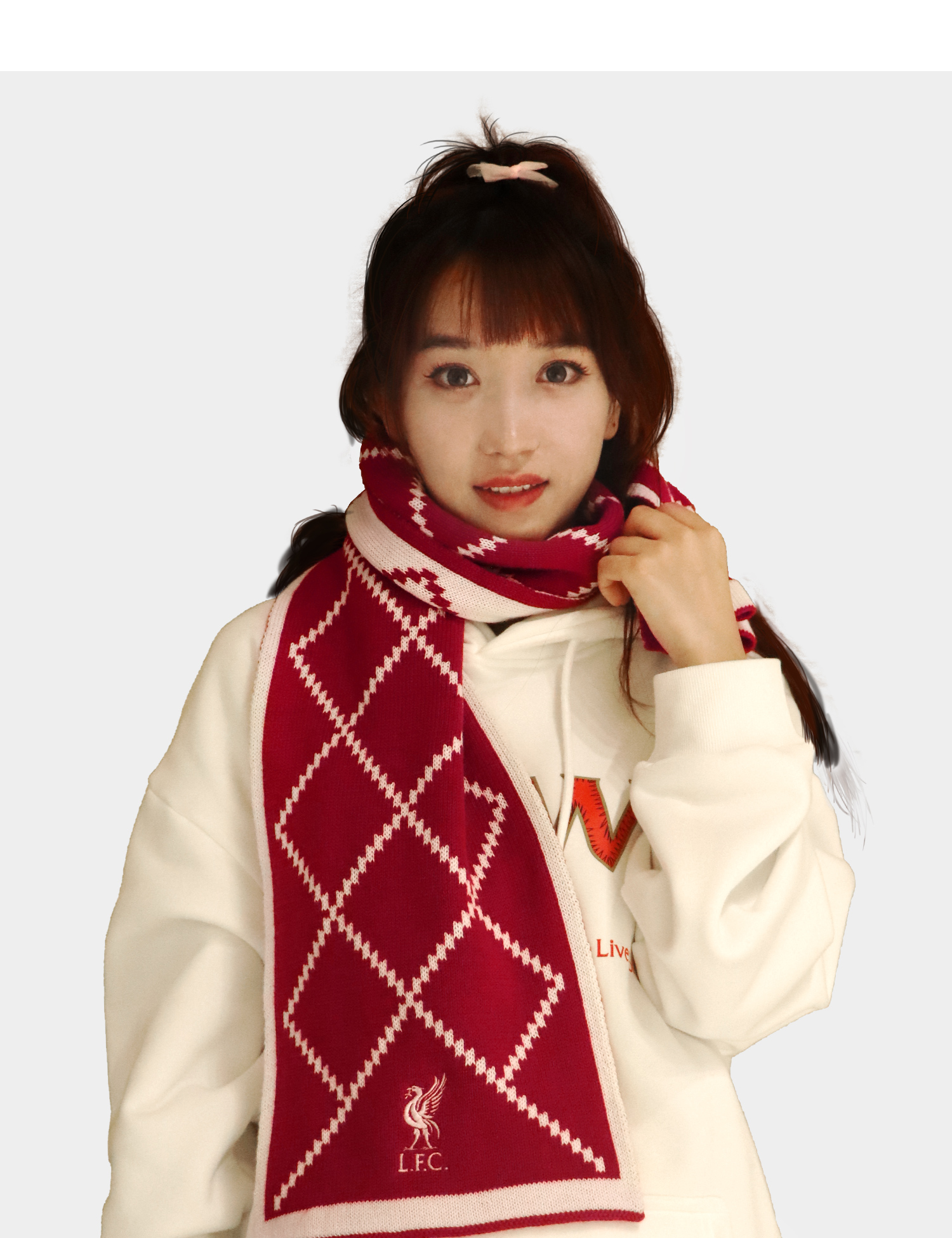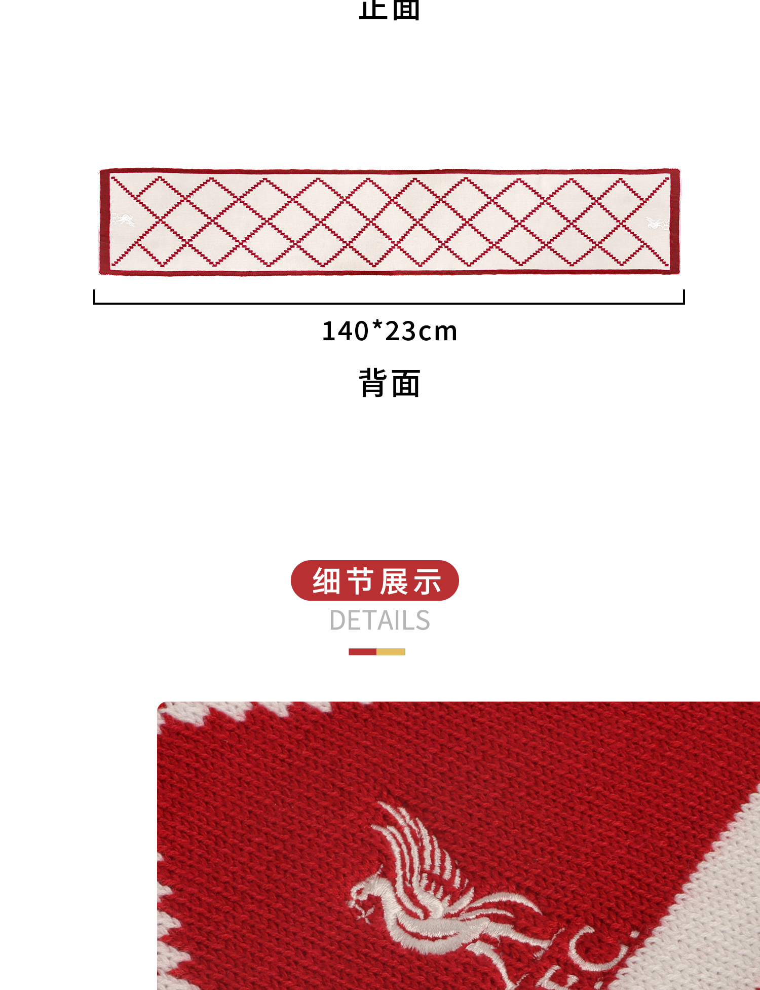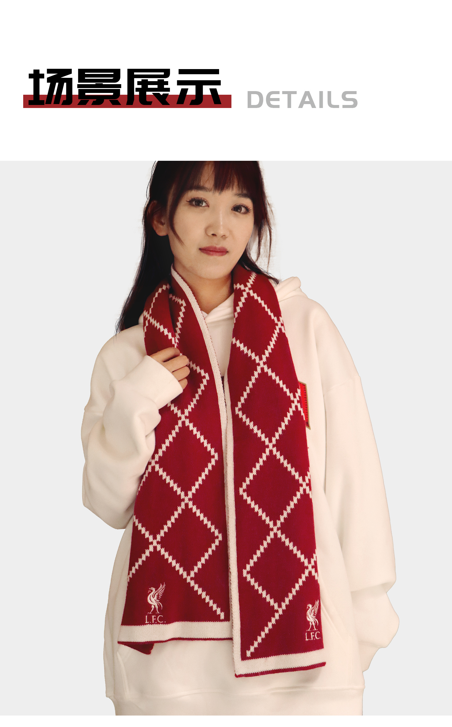 利物浦俱乐部官方商品丨红色菱格纹拼色针织围巾时尚百搭秋冬