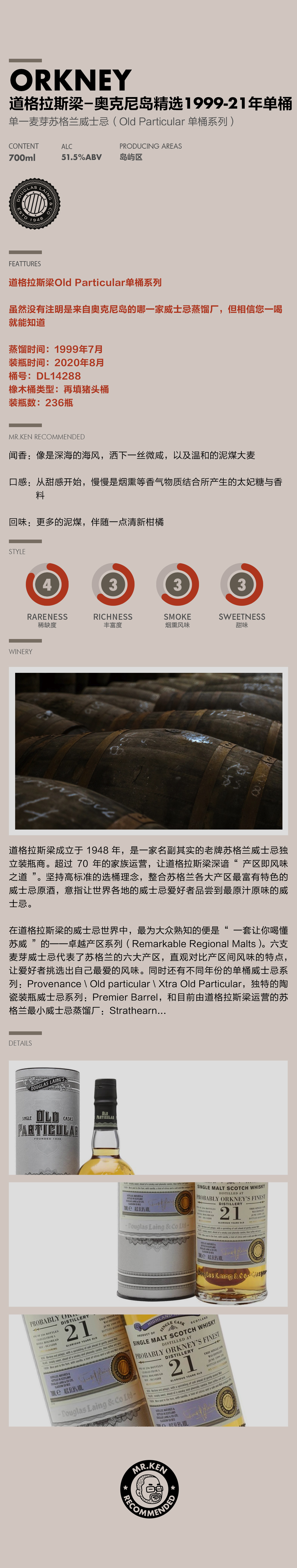 道格拉斯梁-奥克尼岛(Orkney)精选1999-21年 单桶单一麦芽苏格兰威士忌(Old Particular 单桶系列)