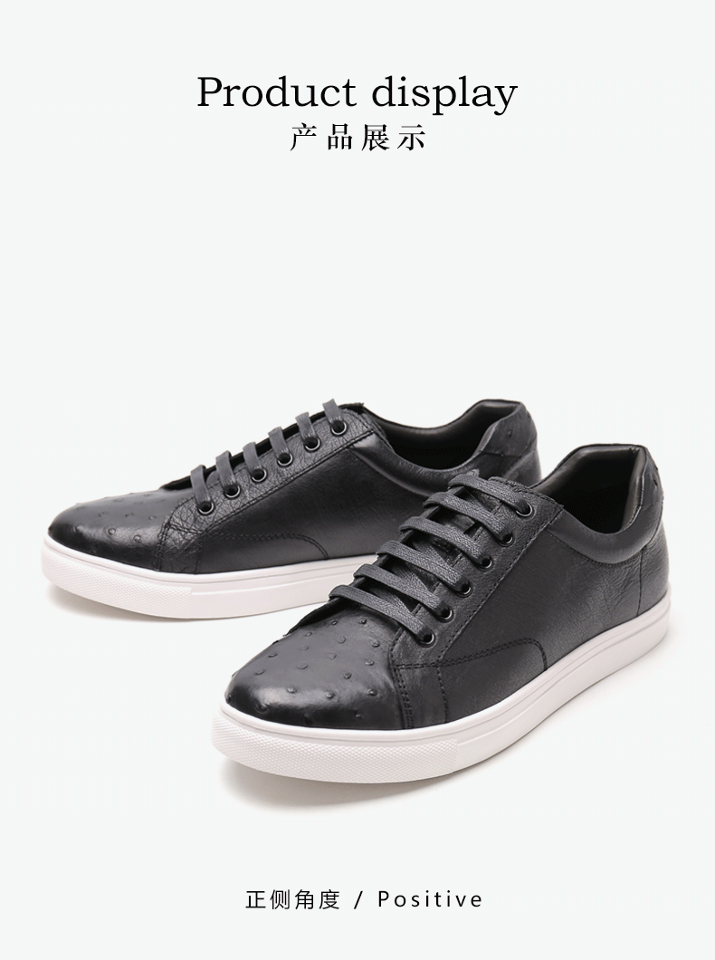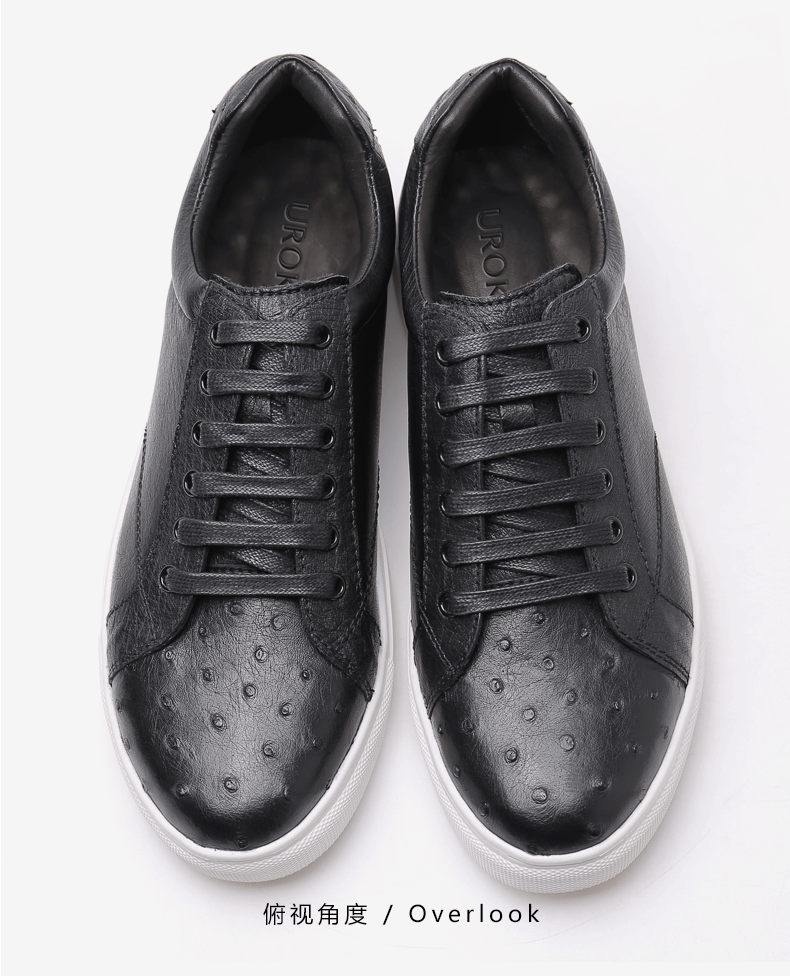 【新品】UROK全鸵鸟皮男士休闲板鞋手工男鞋舒适软皮男鞋
