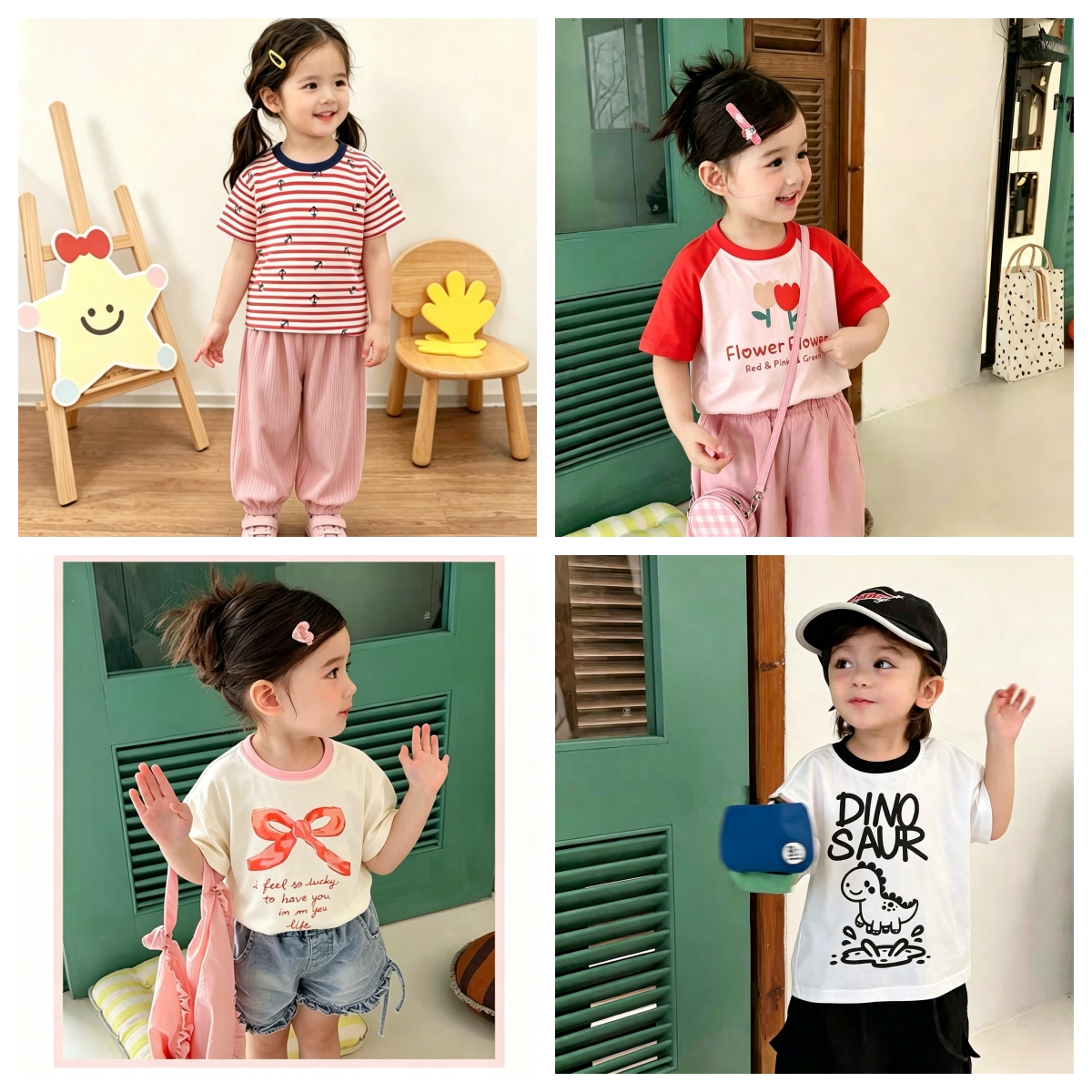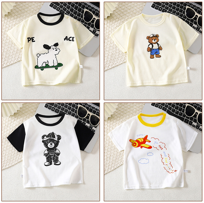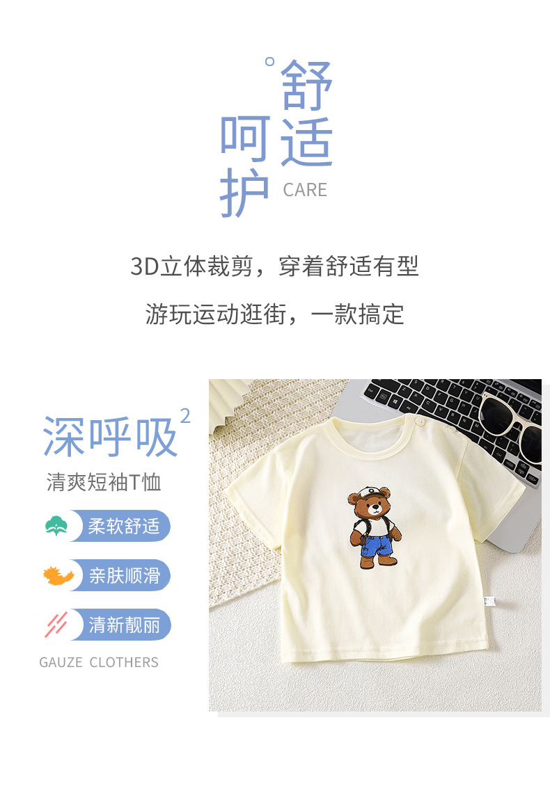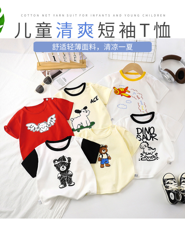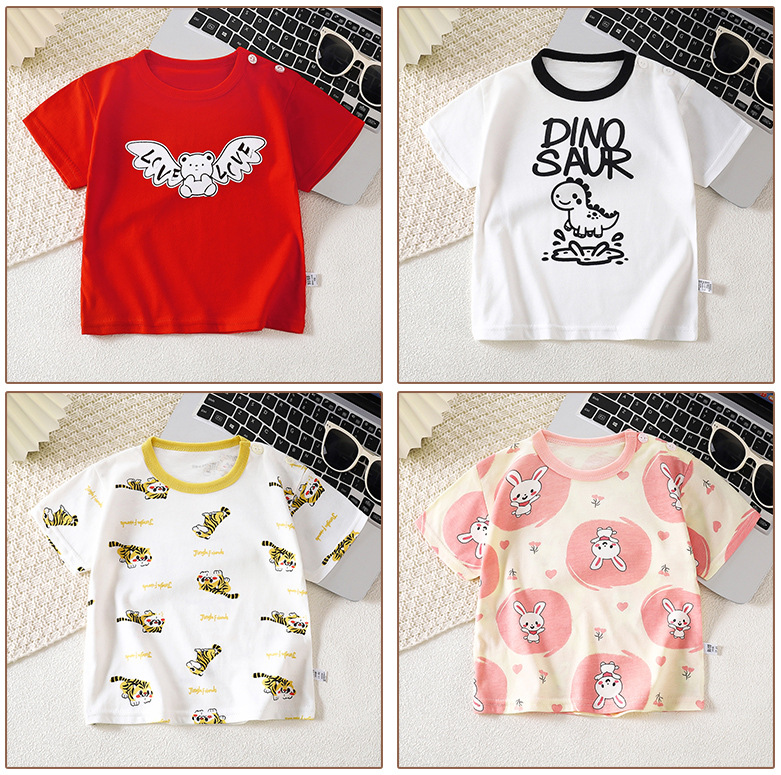 【承包娃一夏天的短袖49/4件‼️】儿童纯棉a类短袖男童宝宝女童全棉衣服防蚊裤73-140码聚