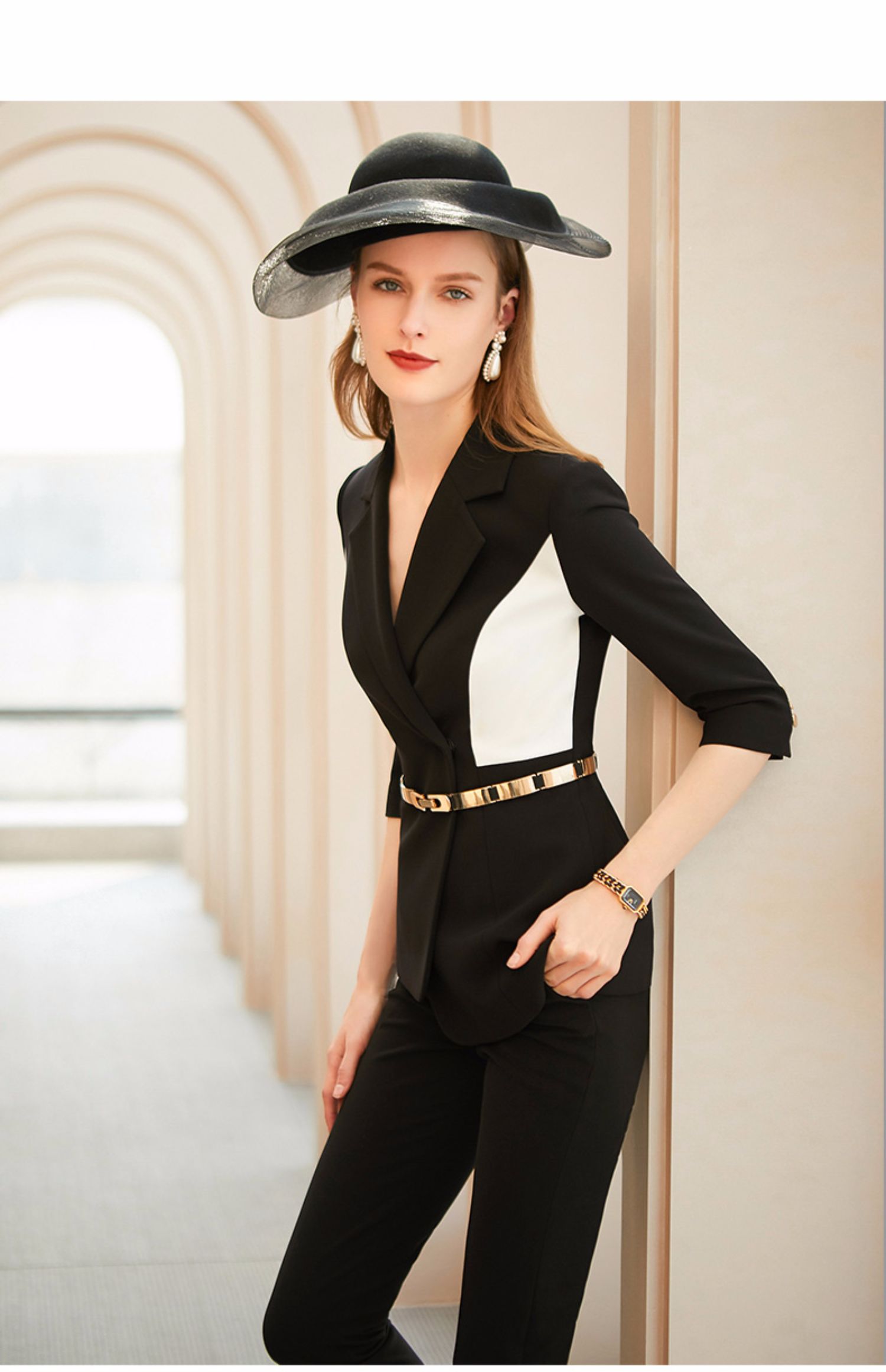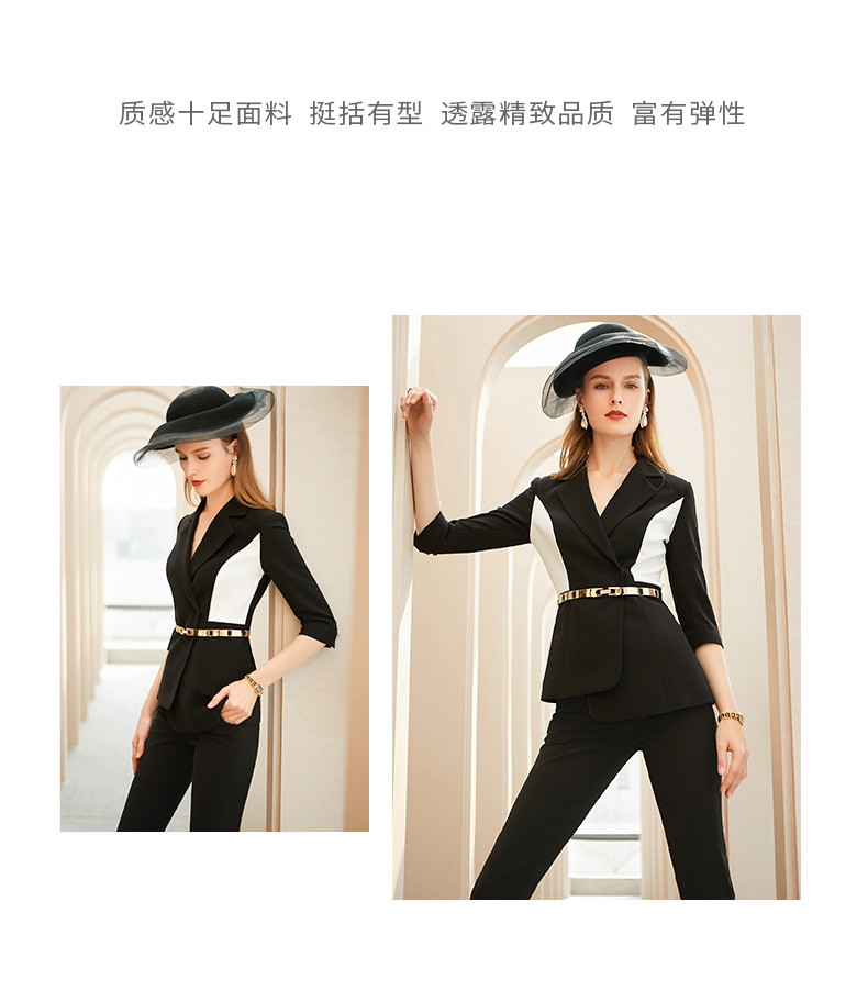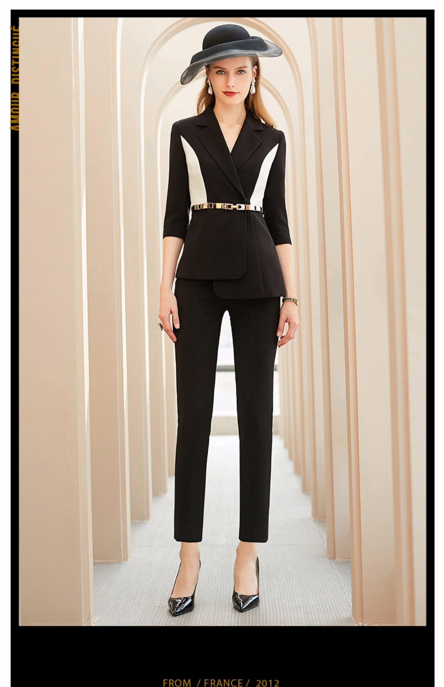 IWY/黑白拼色显瘦西装套装女小香风职业装气质女神范高端商务装C1193+P433-B