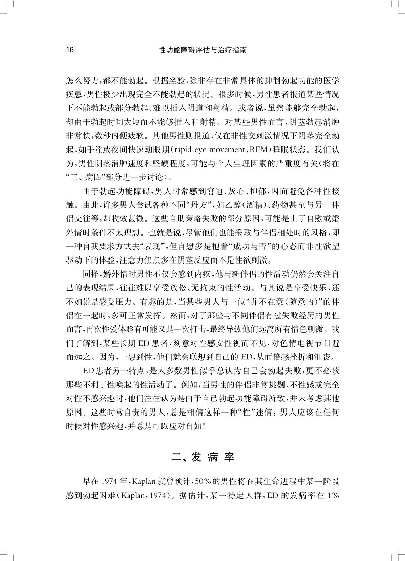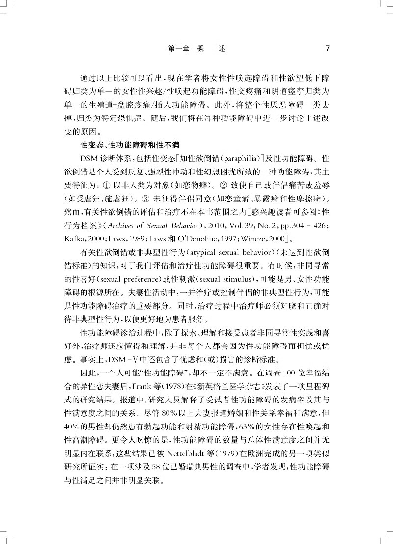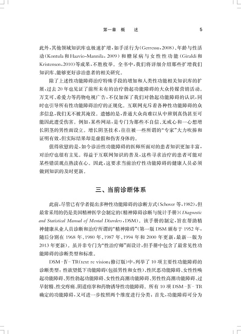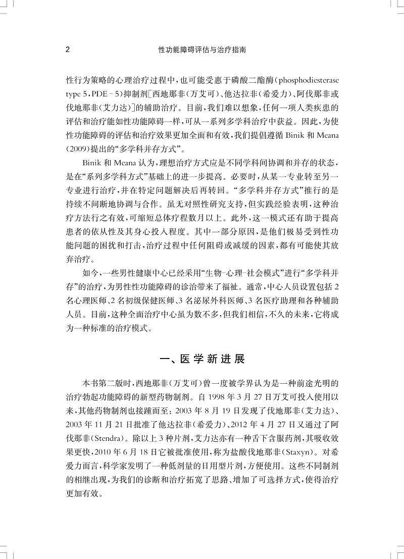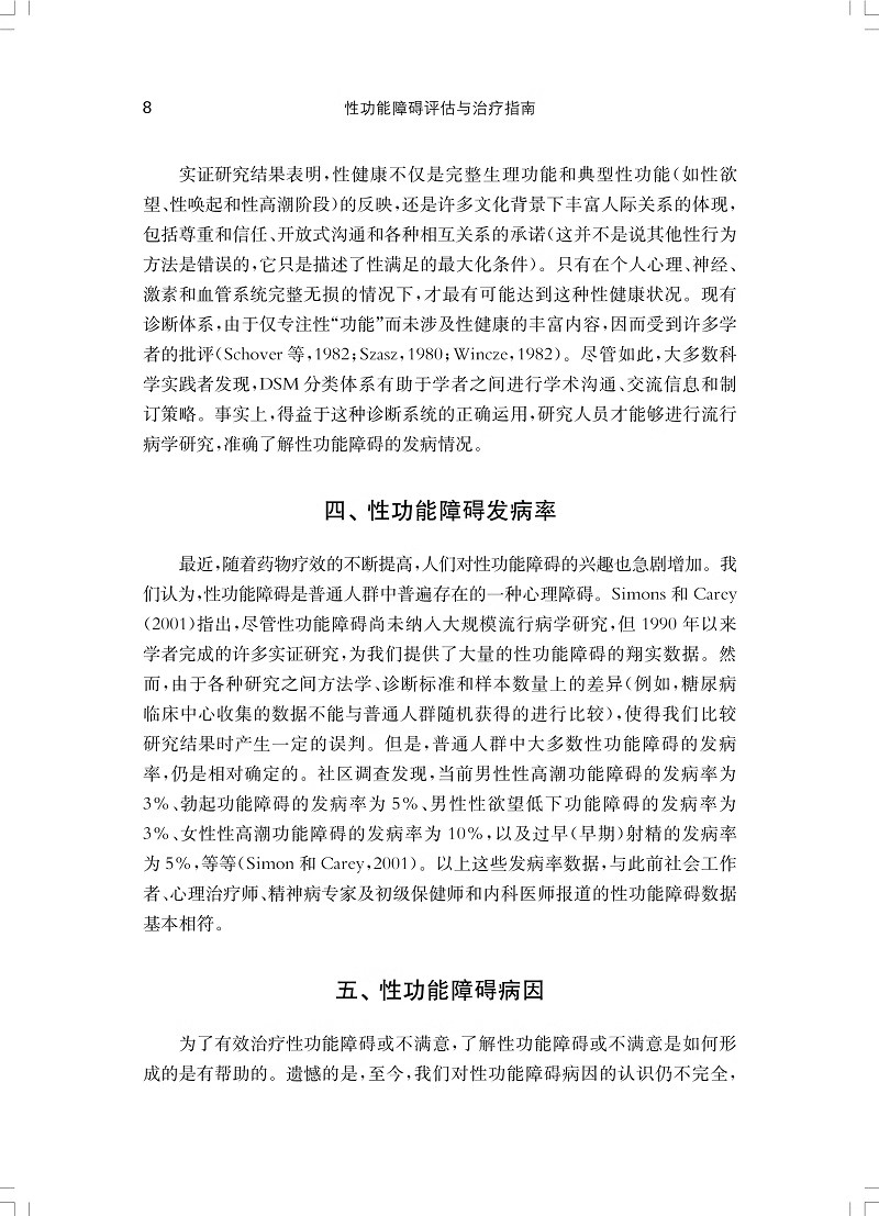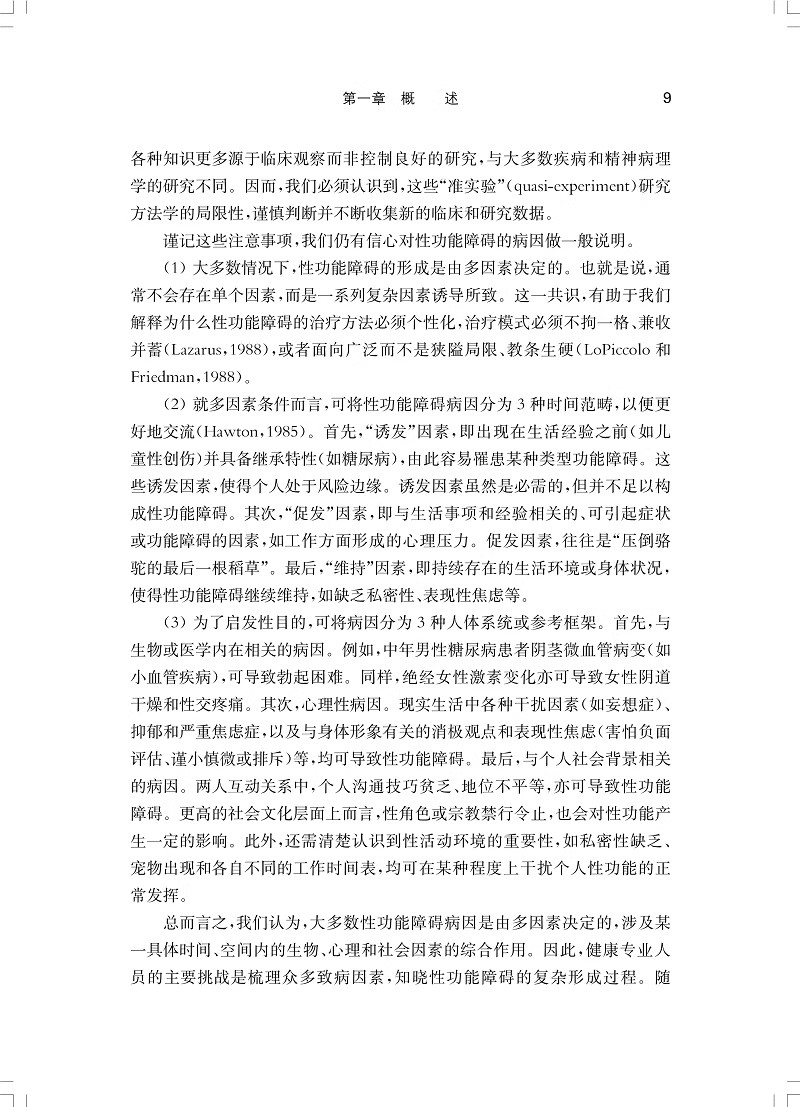 本书与时俱进地反映了当前男、女性功能障碍中生理、心理和社会学研究重大进展,分四篇、十六章进行系统阐述,包括性功能障碍的分类、性功能障碍的评估、性功能障碍的治疗和其他重要议题。全书凝聚作者智慧与临床经验的结晶。其新颖性表现在以下几点:构建了一个可 评估的先进诊疗体系,综合考虑医学和心理 社会因素,更加注重生物 社会 心理评估效果;及时融入 新医学和心理学治疗进展;运用同行认可的认知行为心理学研究成果;案例资料全部更新,贯穿每一章节。