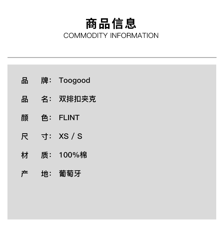 Toogood THE COOK JACKET 女装短款双排扣夹克外套