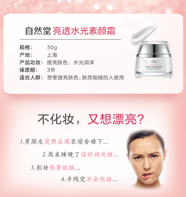 【预售 急单慎拍】自然堂亮透水光素颜霜 50g 原价168元