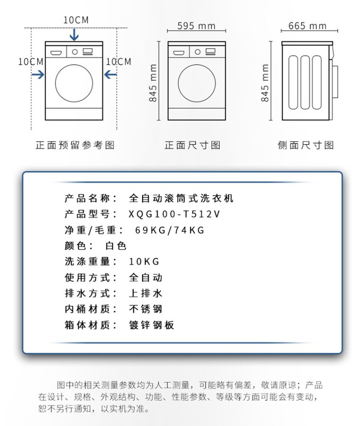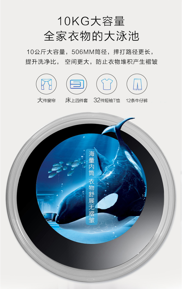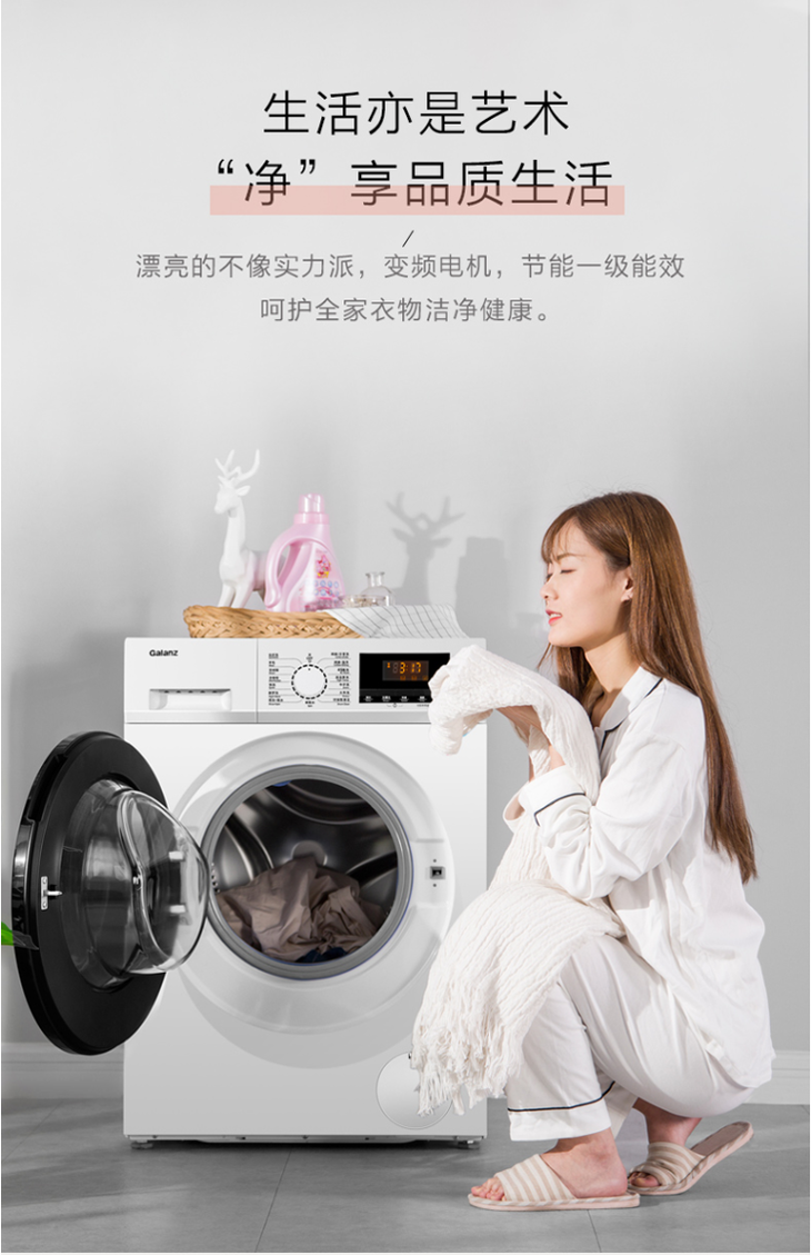 格兰仕(Galanz)10公斤一级能效变频 滚筒洗衣机全自动 除螨高温洗 XQG100-T512V