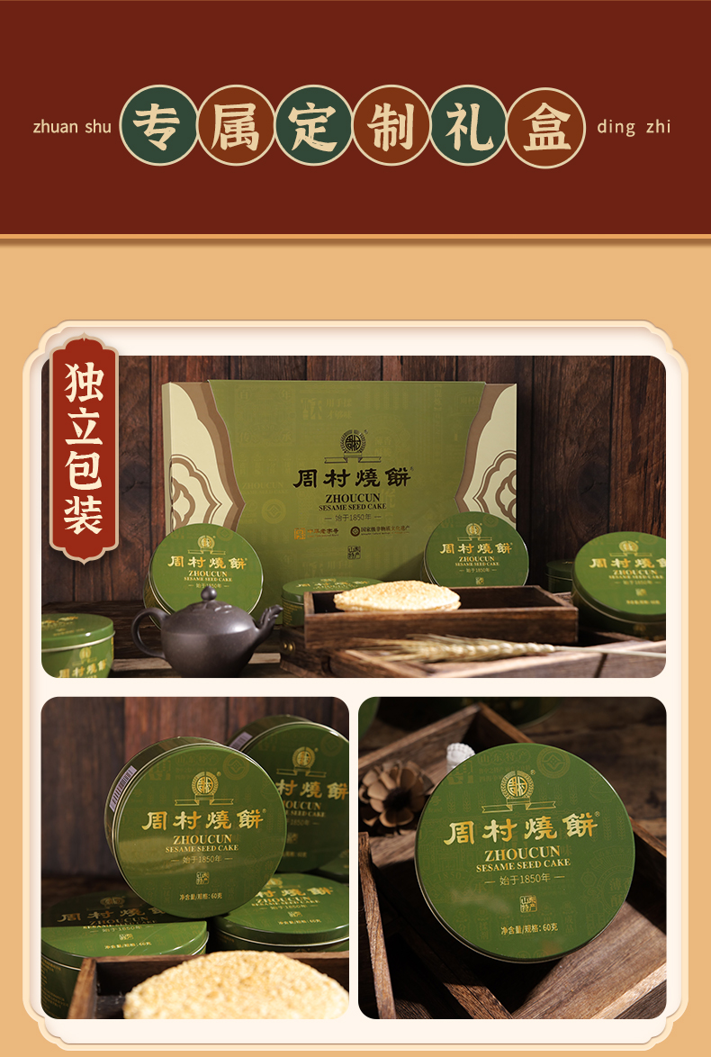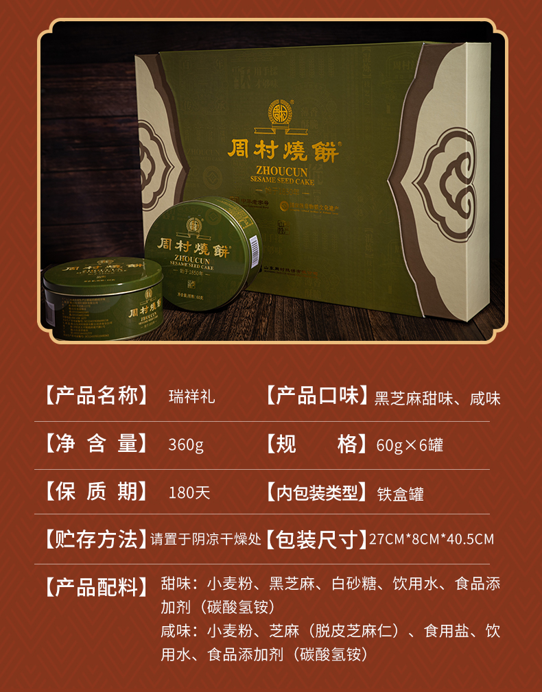 周村烧饼牌瑞祥烧饼礼盒甜味60g*6盒山东特产零食薄脆芝麻饼年货礼盒