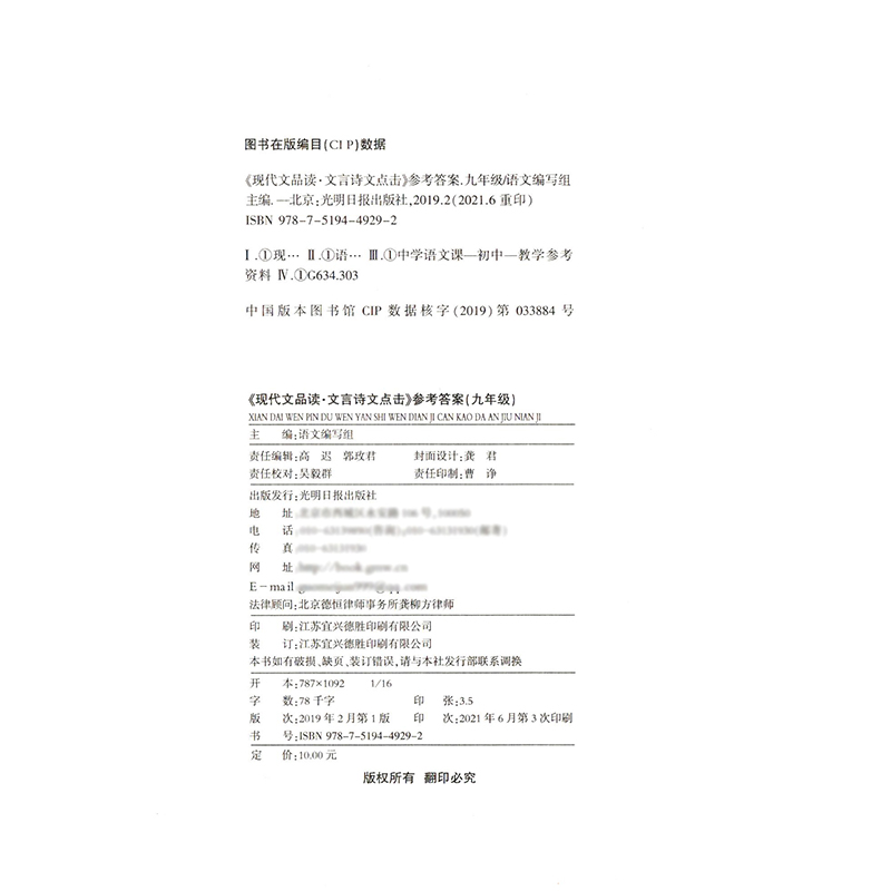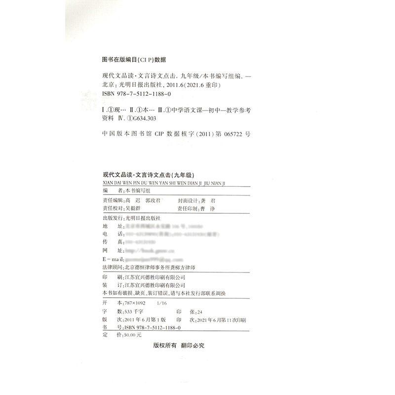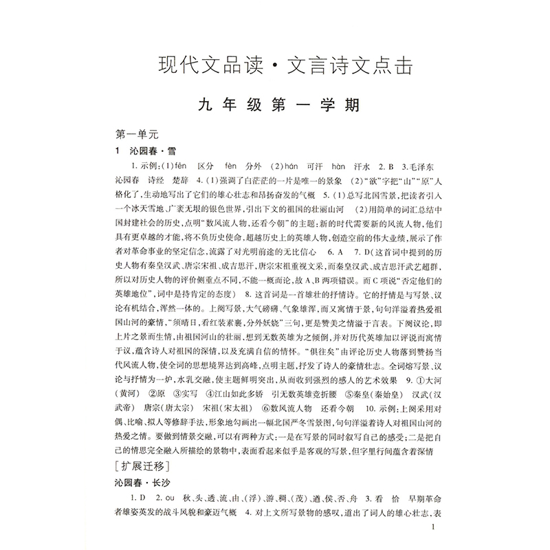 新版现代文品读文言诗文点击 7-9年级 书+单元测评+参考答案