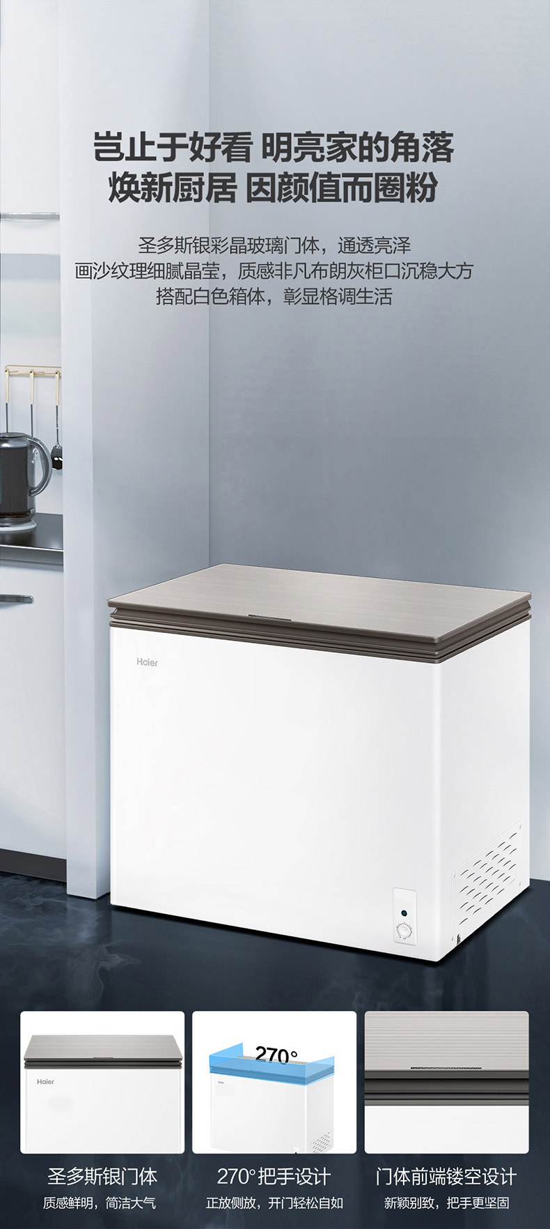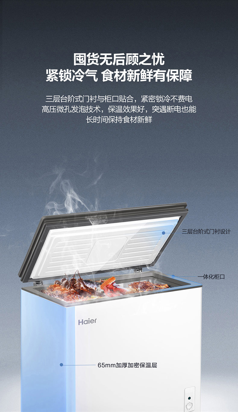 海尔 Haier 201升 京馨 彩晶门体家用冰柜 气悬浮减霜80_冷柜 BC BD-201GHLZS