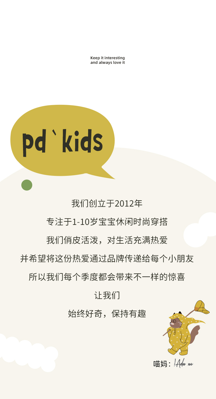 Purrfect-Diary专注于贴近自然随性的穿着概念,轻奢平价的童装文化传播,在产品设计上更加注重婴童穿着的舒适性、安全性、更出众的国际化品牌,将欧美的育婴文化在中国进行深入的传播与推广。