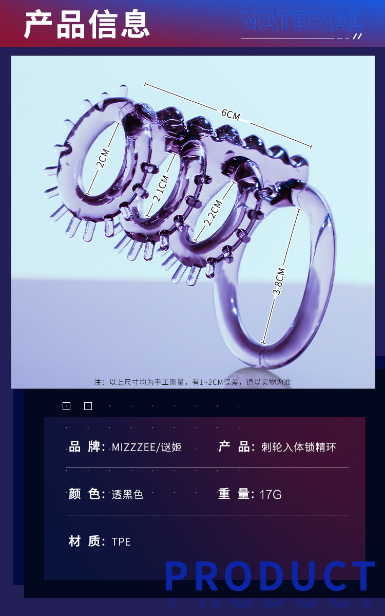 谜姬 刺轮入体锁茎套情趣套环物理延时 阴经套戴具 羊眼圈入珠带刺坐莲套 房事辅助工具