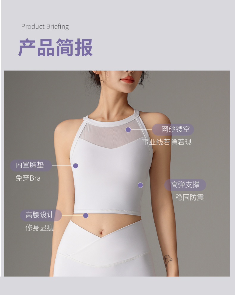 F2023722梵蒂欧新款瑜伽背心拼网性感美背(含胸垫)
