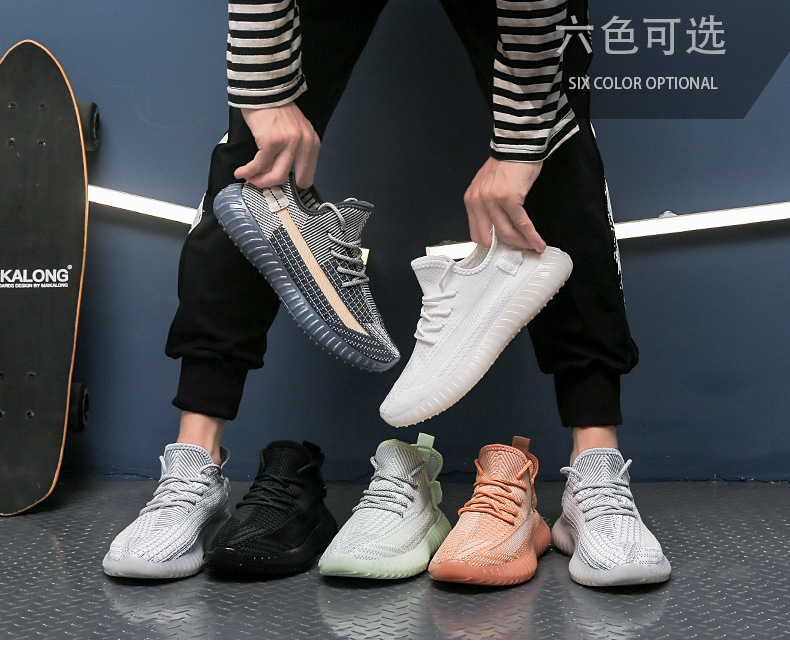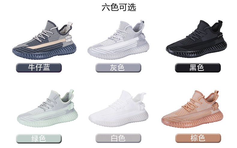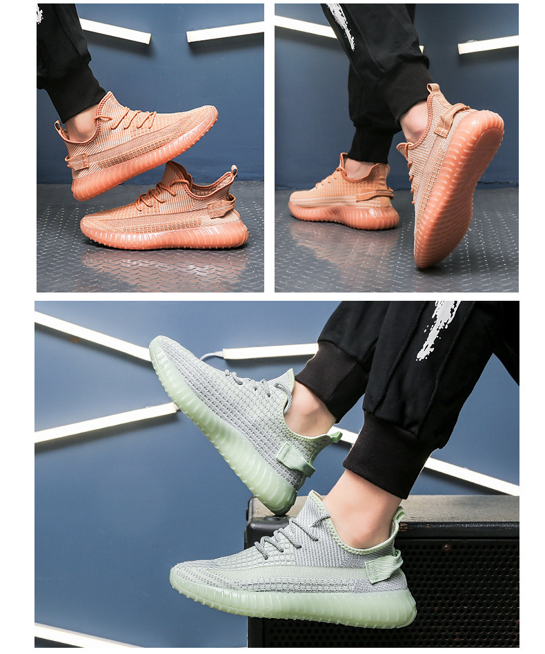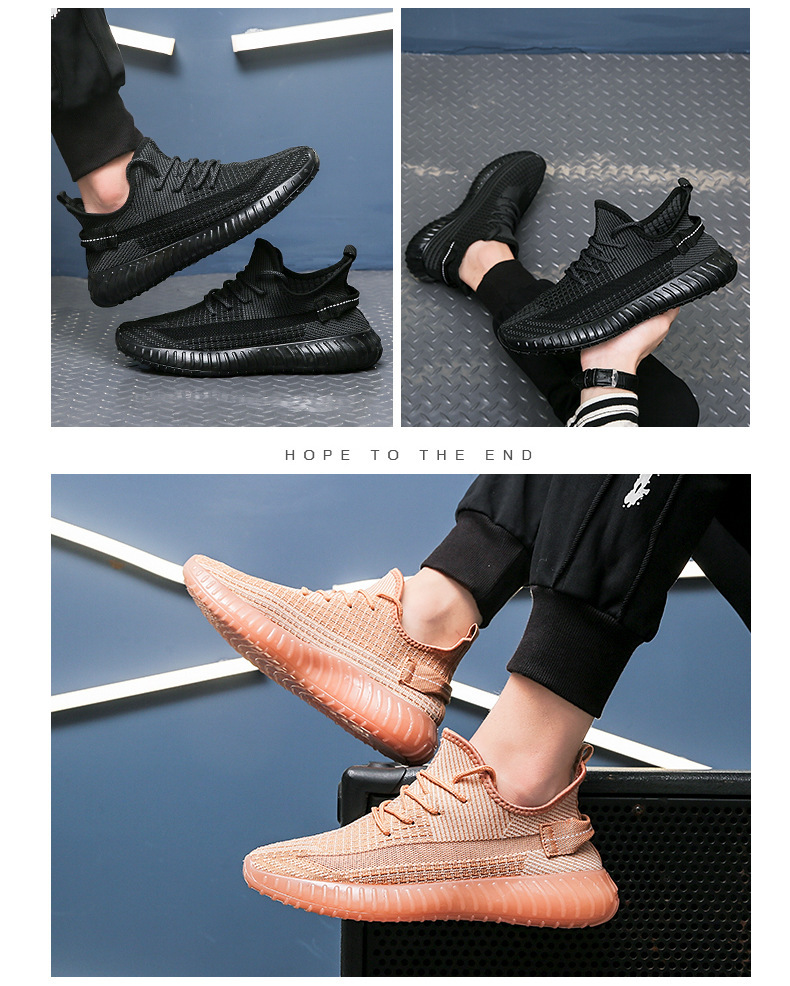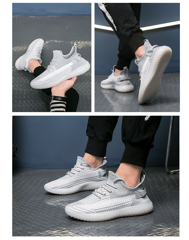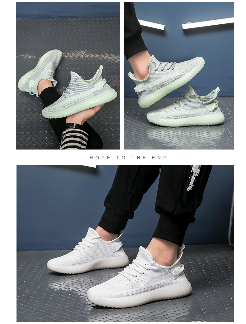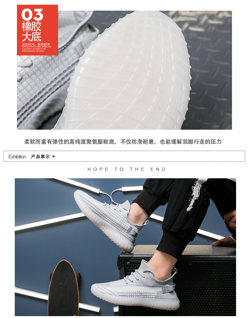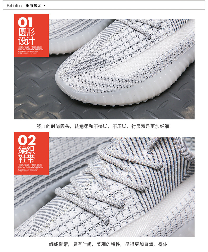 【经典的时尚圆头,转角柔和不挤脚!】网面透气椰子鞋 新款男鞋 百搭潮流休闲飞织鞋 学生运动男鞋-QB