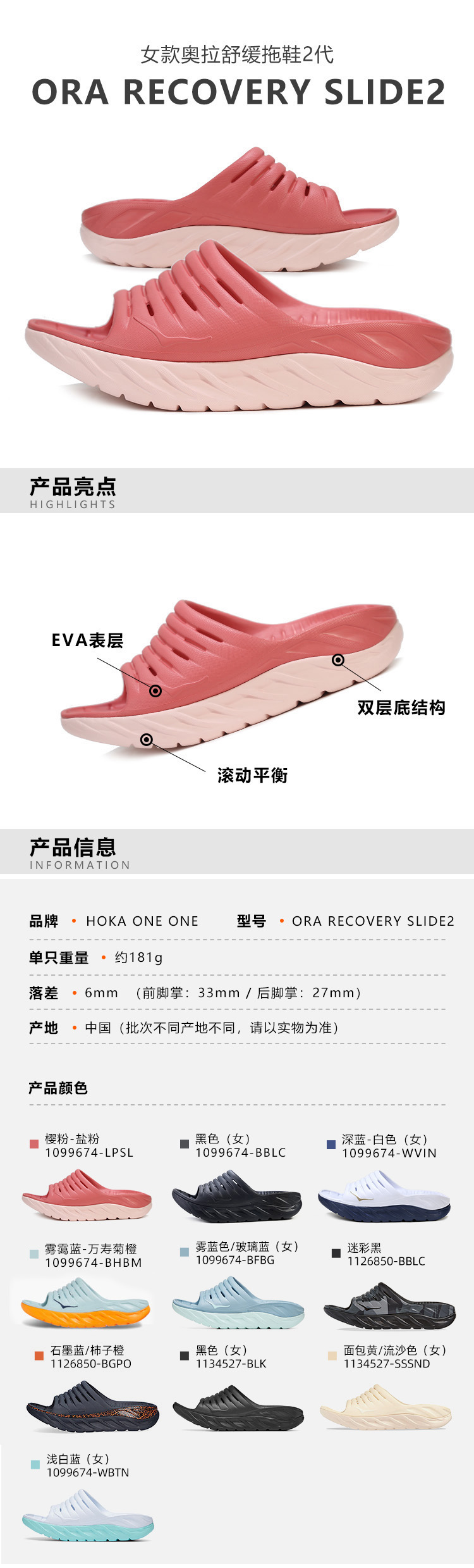 HOKA 女款 Ora Recovery Slide2运动恢复拖鞋休闲舒缓