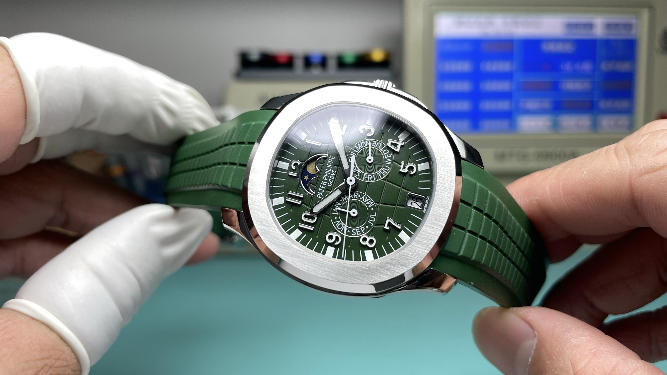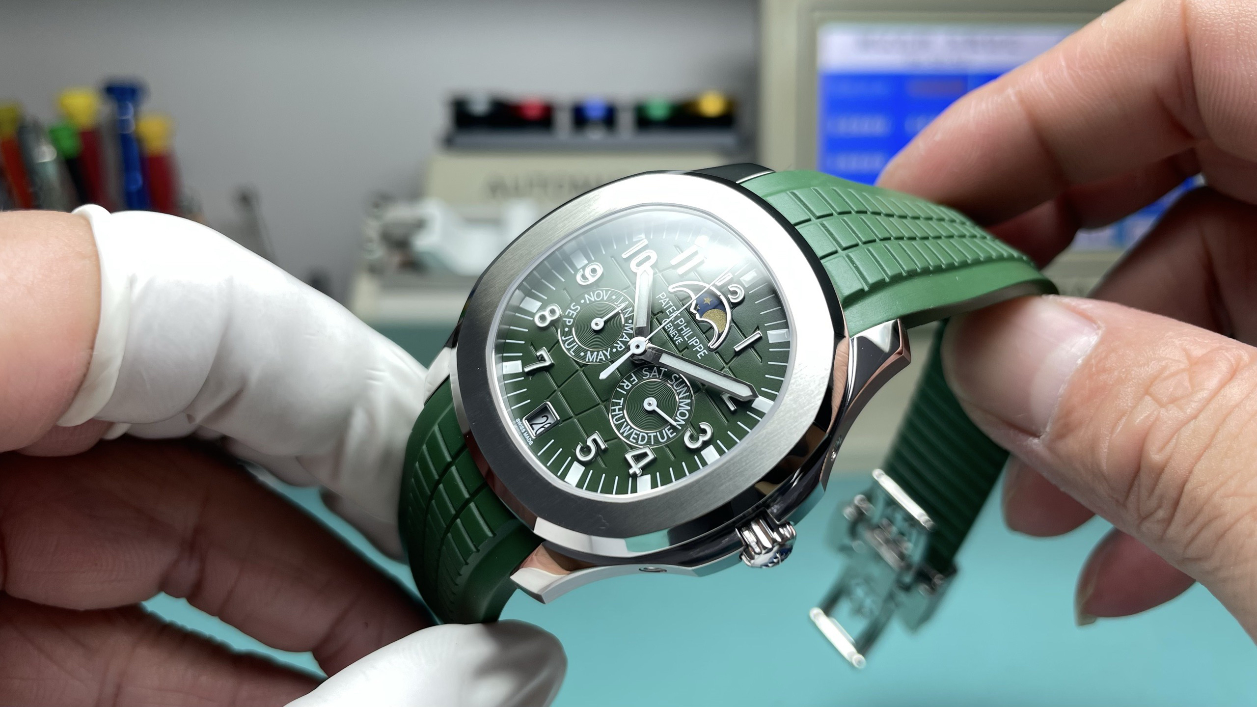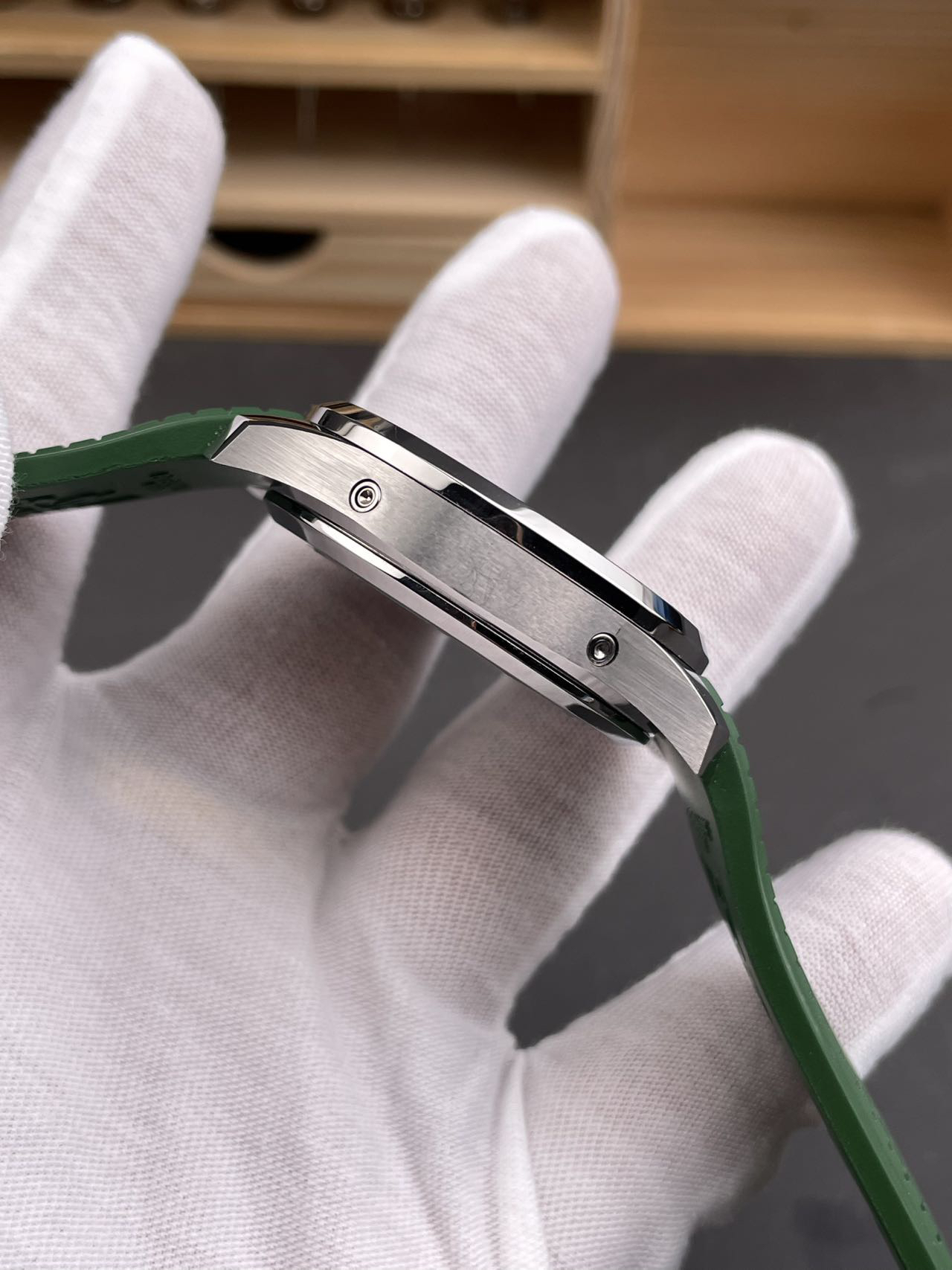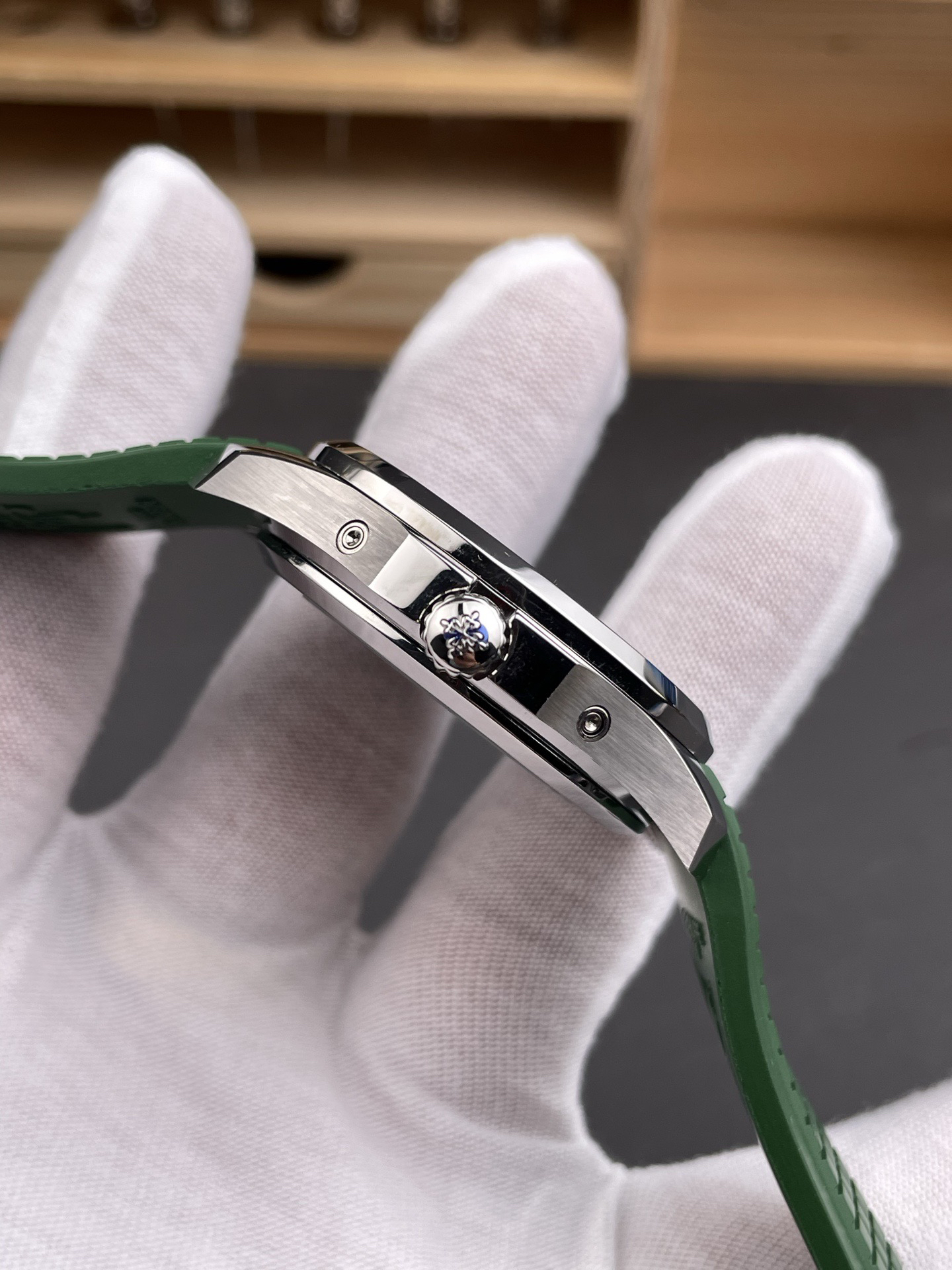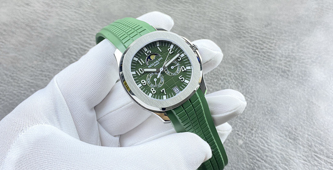 The case and bezel adopt the iconic circular octagonal shape, combined with contrasting polishing and satin processing. The gray blue dial and strap are adorned with Aquanaut relief patterns, Arabic lettering blocks, and Barton style hands, all coated with white fluorescent coating, making it easy to read at a glance. Identify the quality of PPF factory, one meter, one card, three codes in one