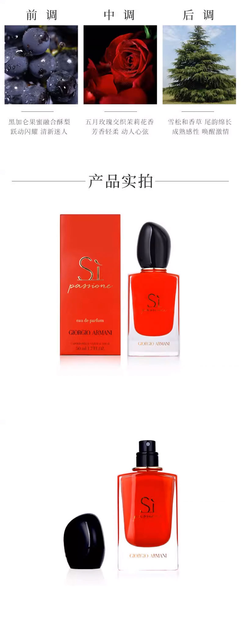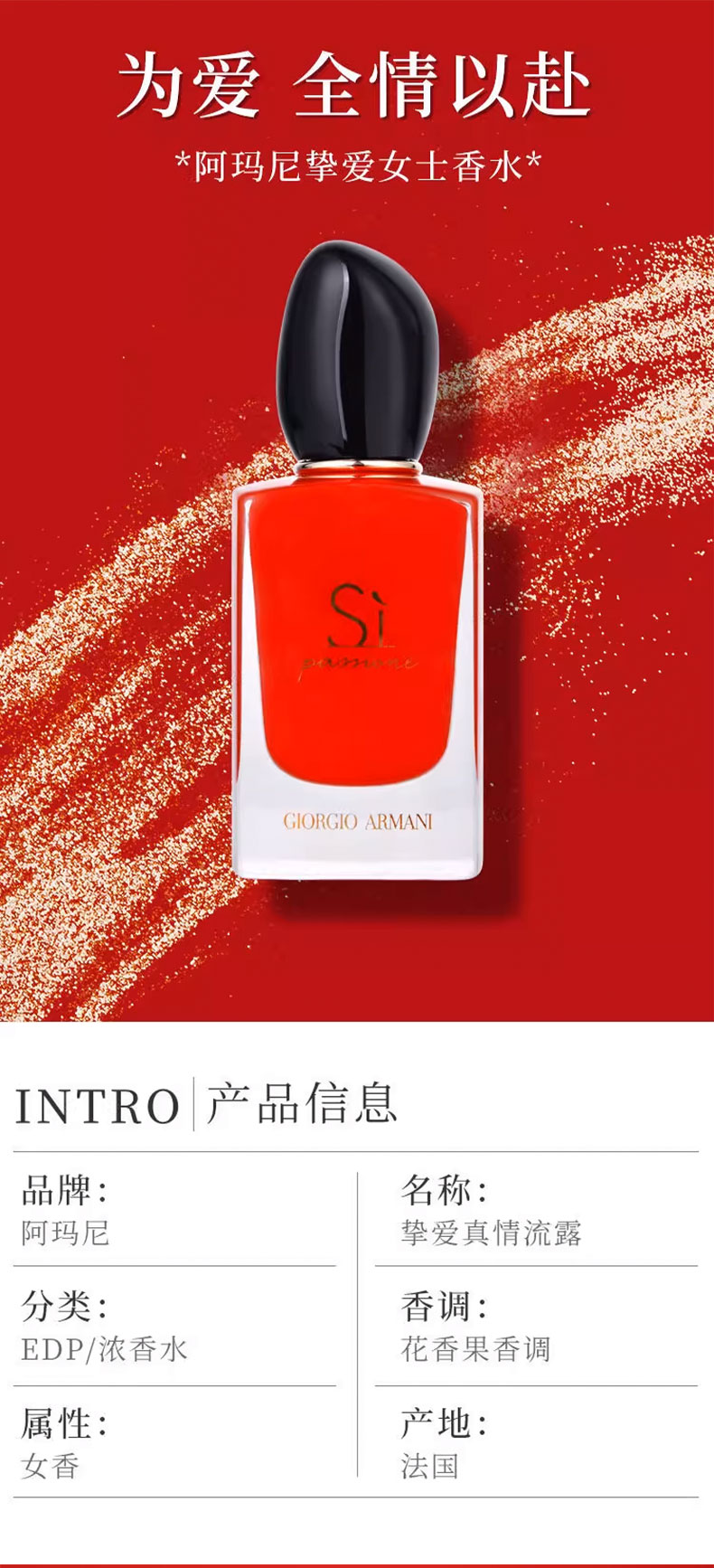 ARMANI阿玛尼 SI挚爱女士浓香水 50ml 香港直邮,前调黑加仑果蜜跃动闪耀,中调五月玫瑰与茉莉交织,尾调雪松香草绵长留香