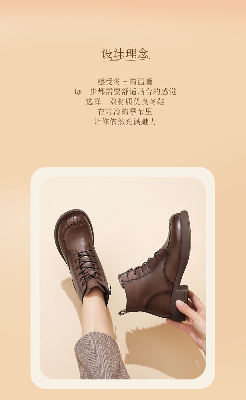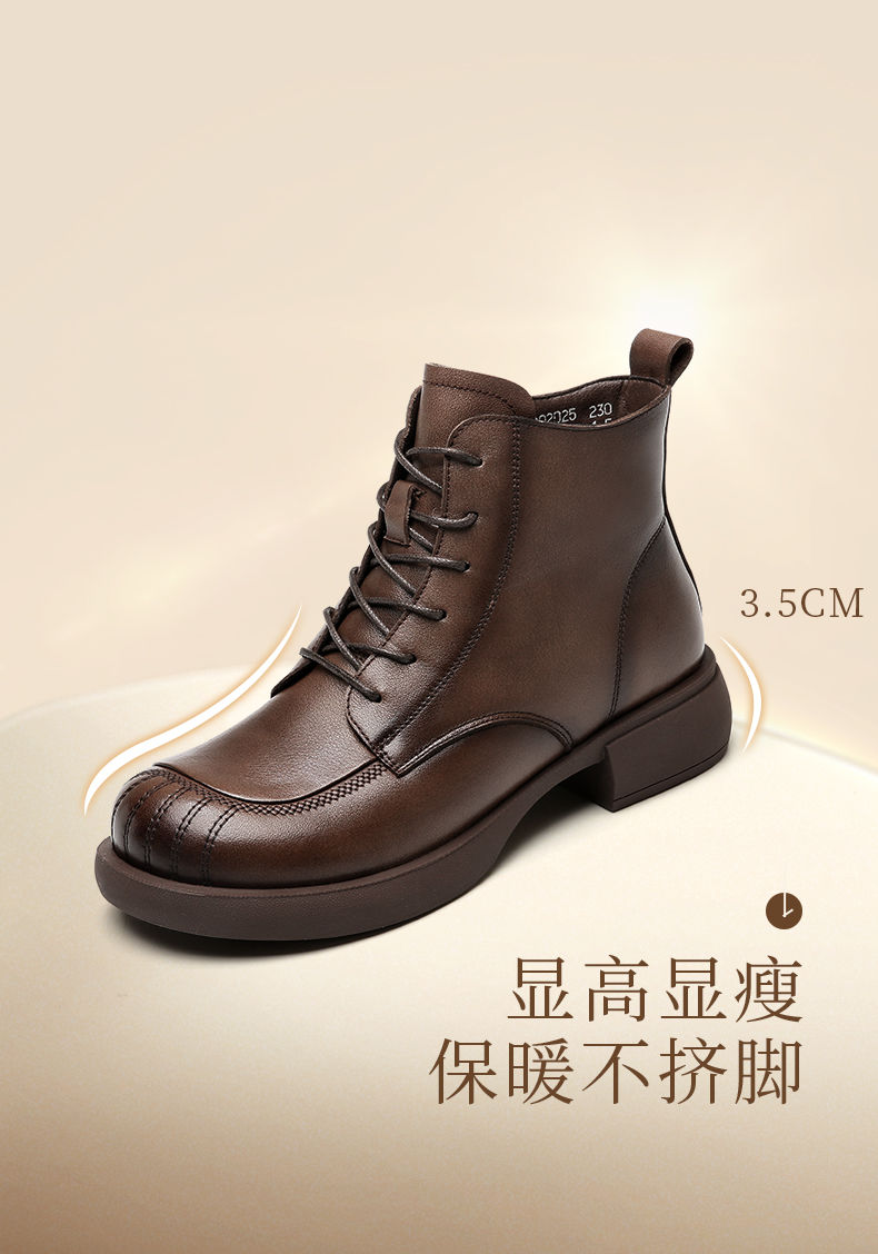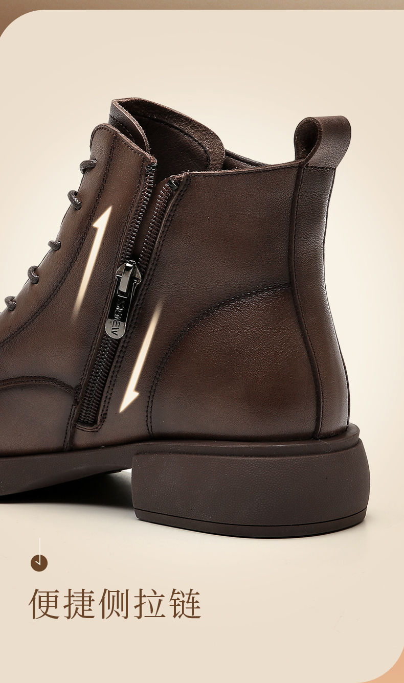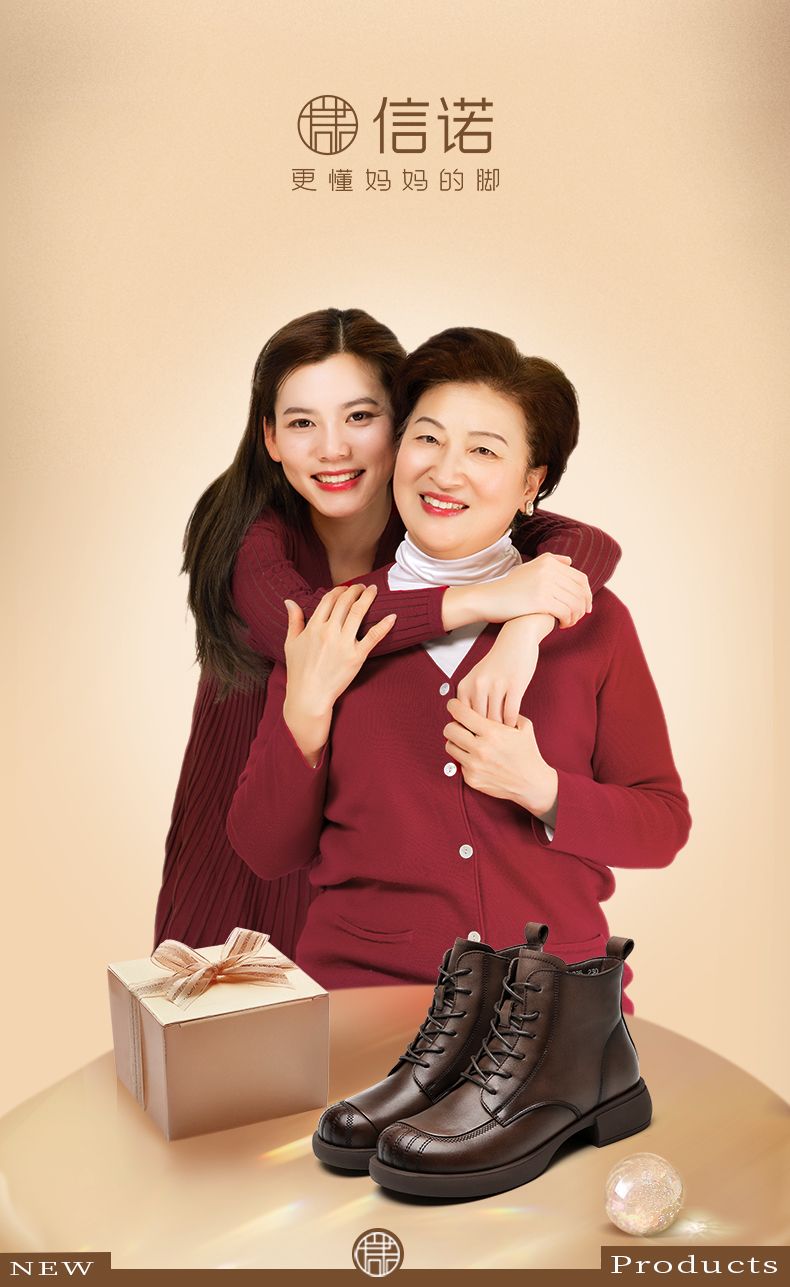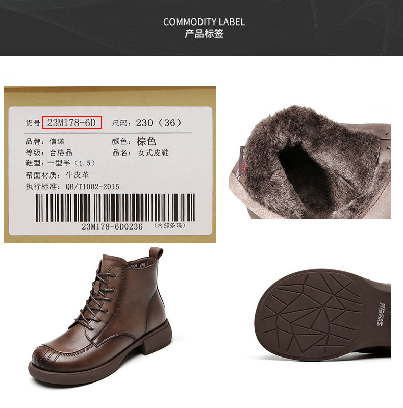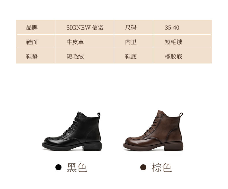 信诺妈妈短靴女士2023新款秋冬季加绒中年皮鞋真皮软底棉鞋马丁靴23M178-6D