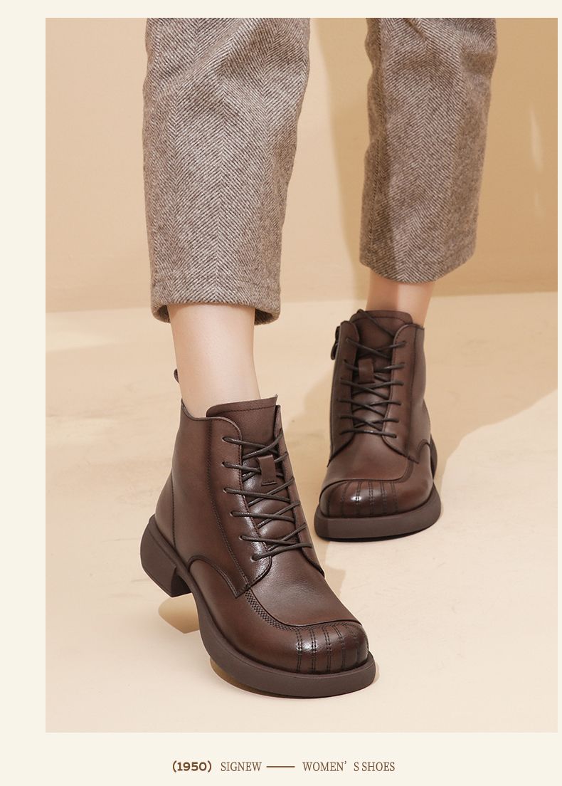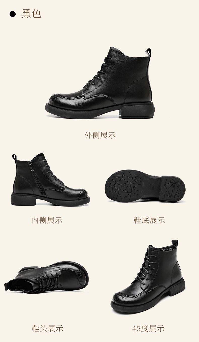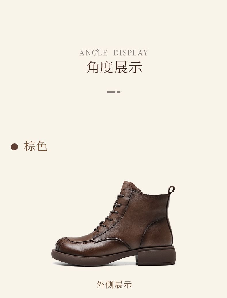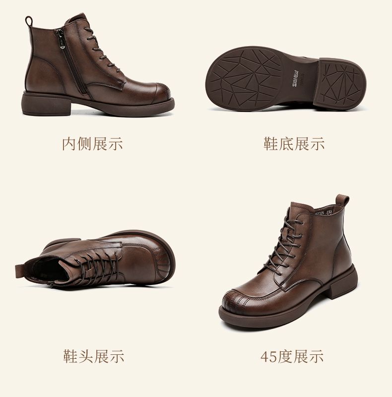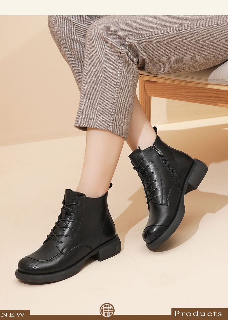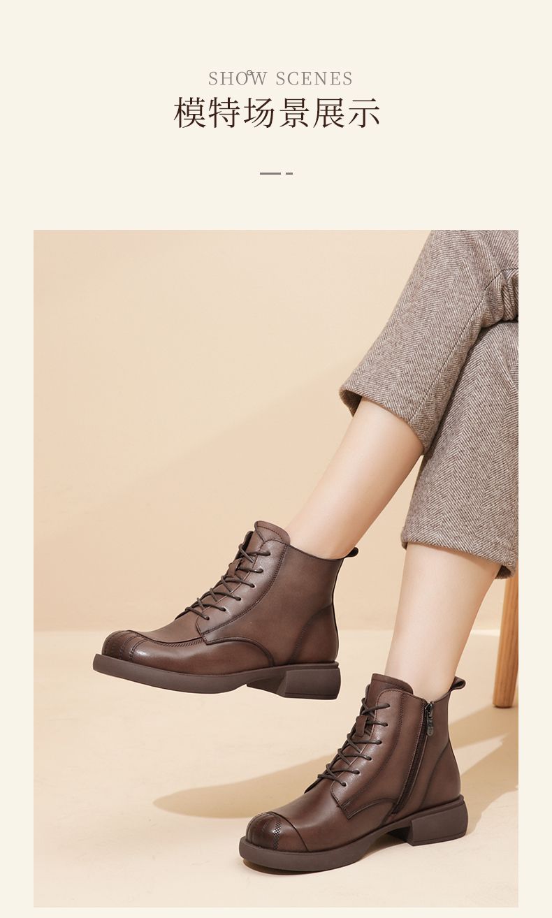 信诺妈妈短靴女士2023新款秋冬季加绒中年皮鞋真皮软底棉鞋马丁靴23M178-6D