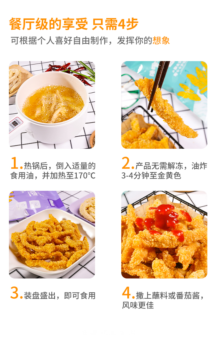 食用方式:腌制好鸡排,解冻烹饪后即可食用