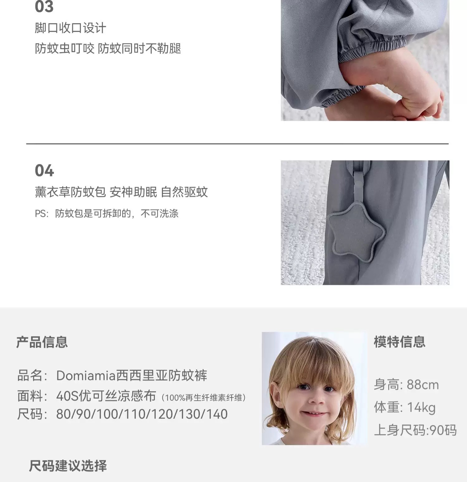 Domiamia 男宝宝婴幼儿西里西亚裤 防蚊轻薄哈伦裤 春夏凉感透气