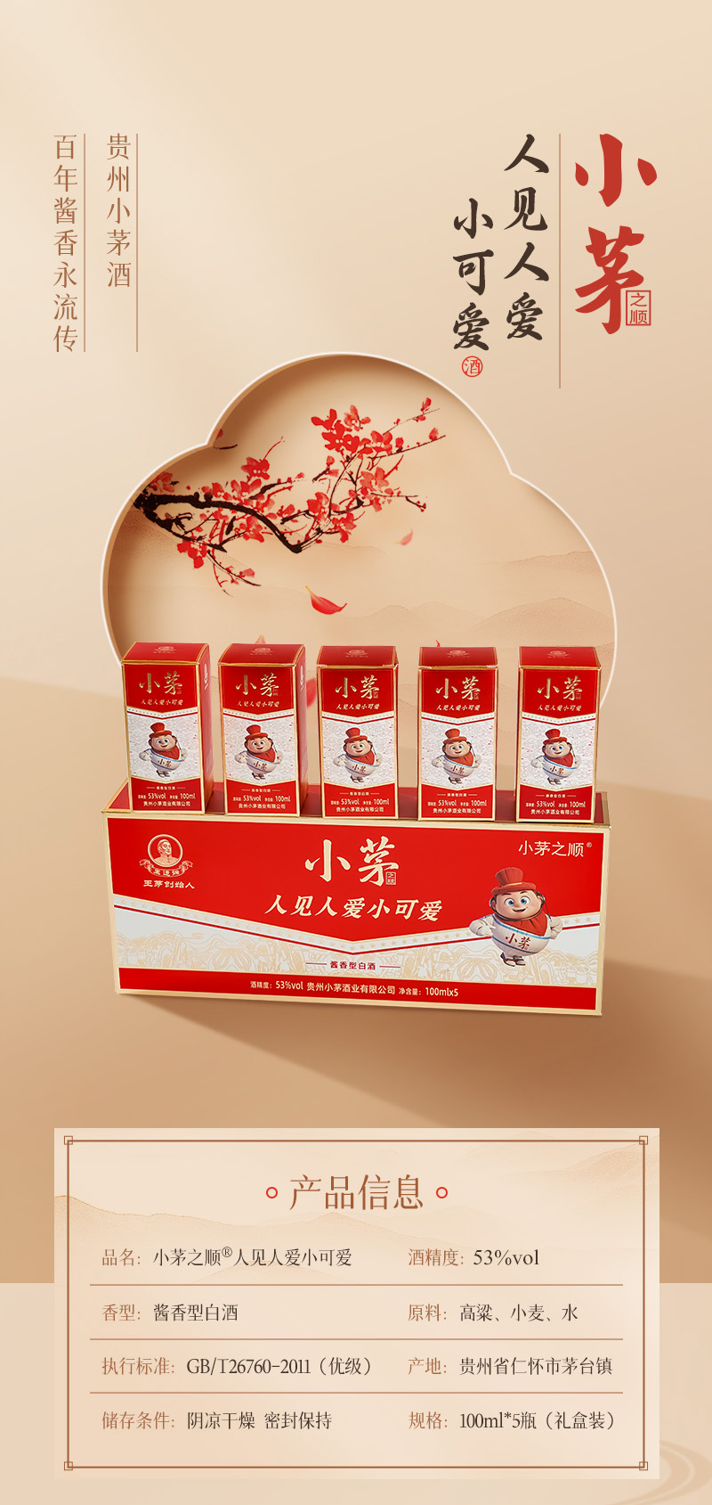 【小来专属】热卖中!!【王茅创始人出品】小茅之顺 人见人爱小可爱 53°酱香型白酒 100ml*5