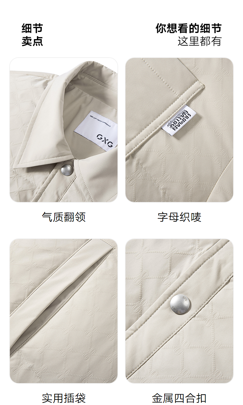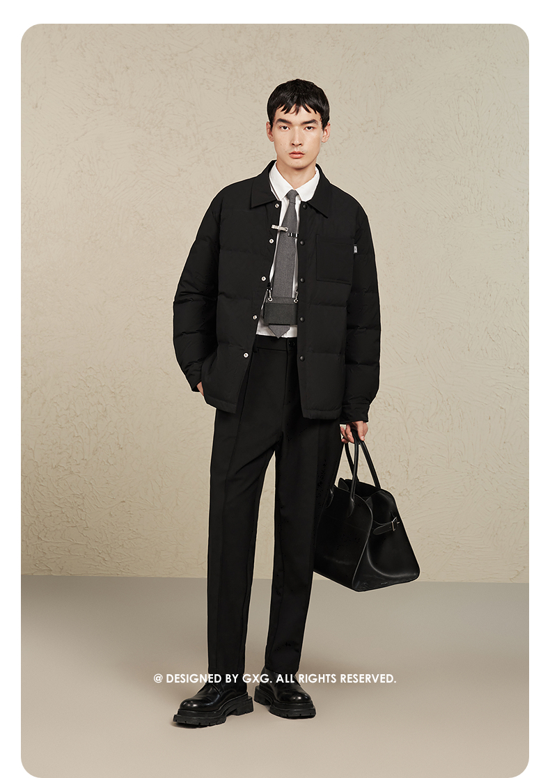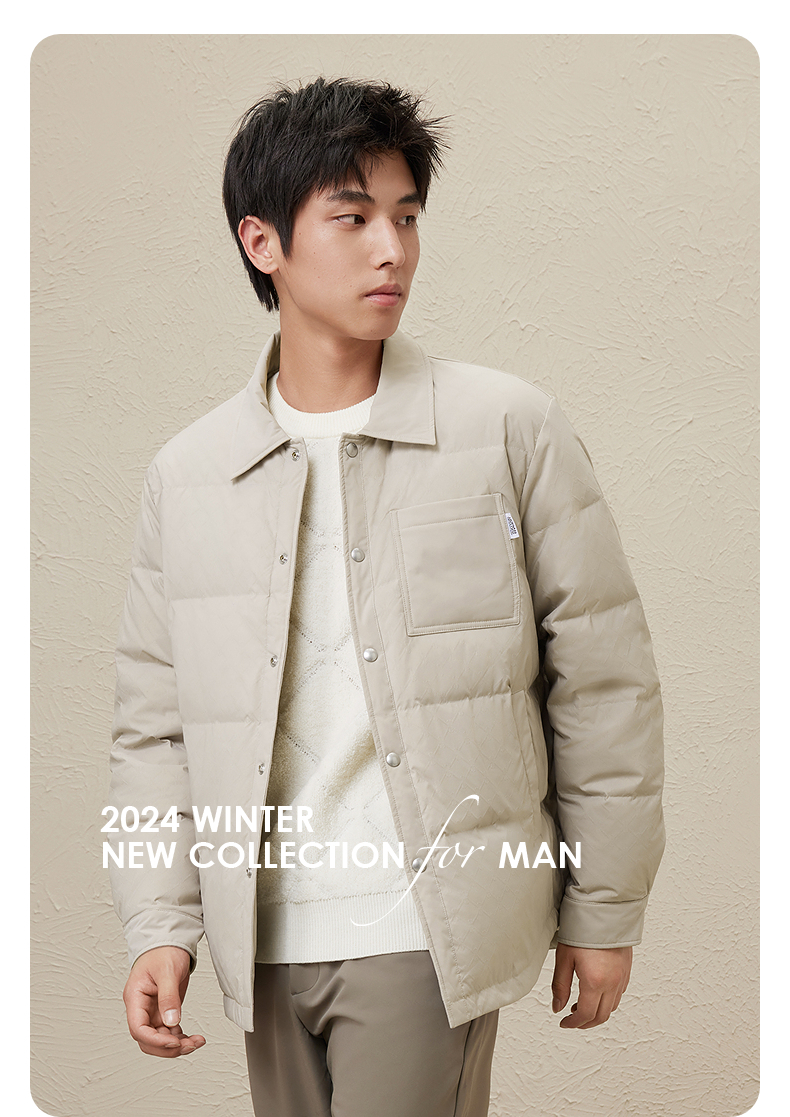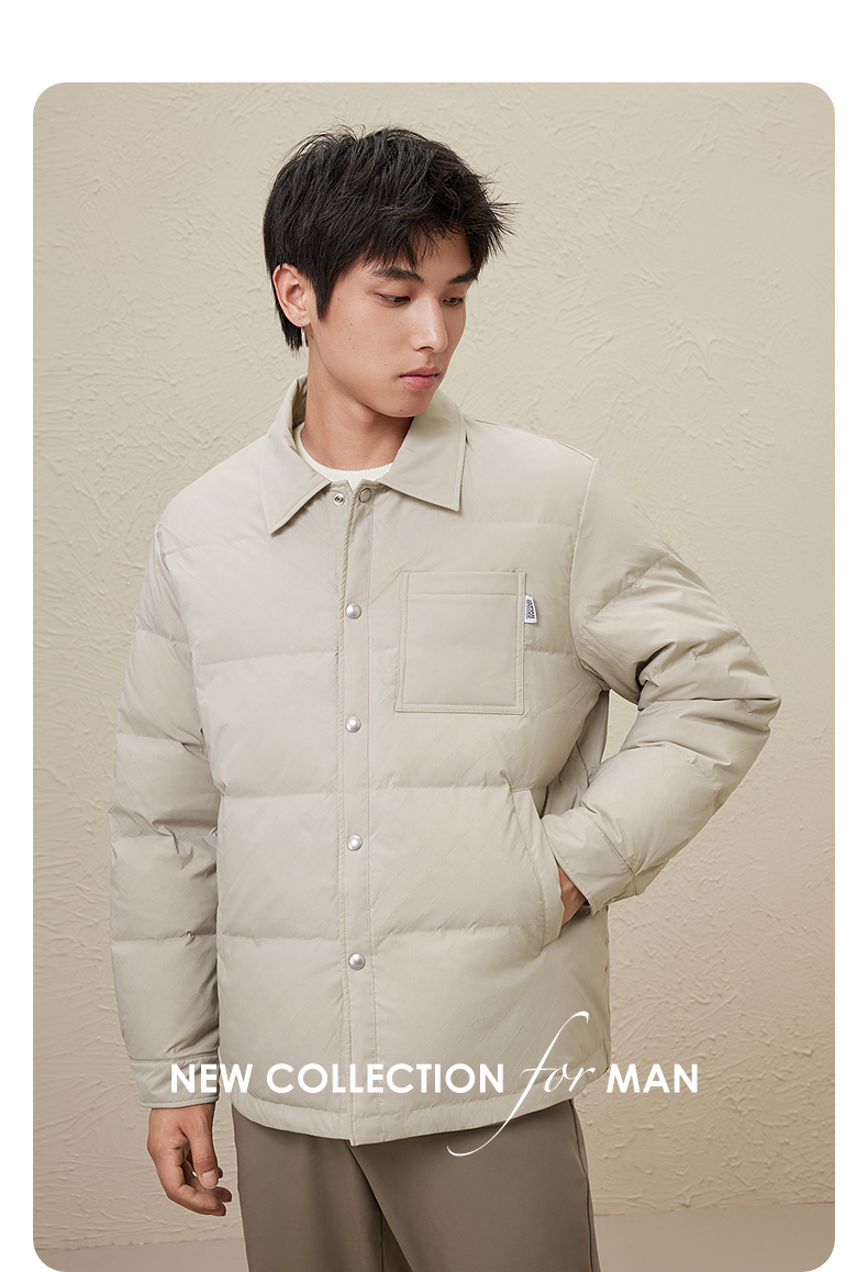 【衬衫式】GXG男装 满印老花轻薄羽绒服男士保暖外套 冬季热卖