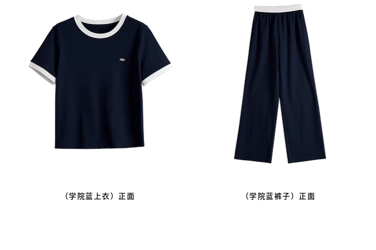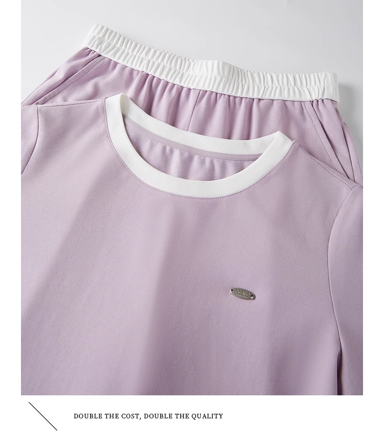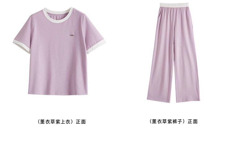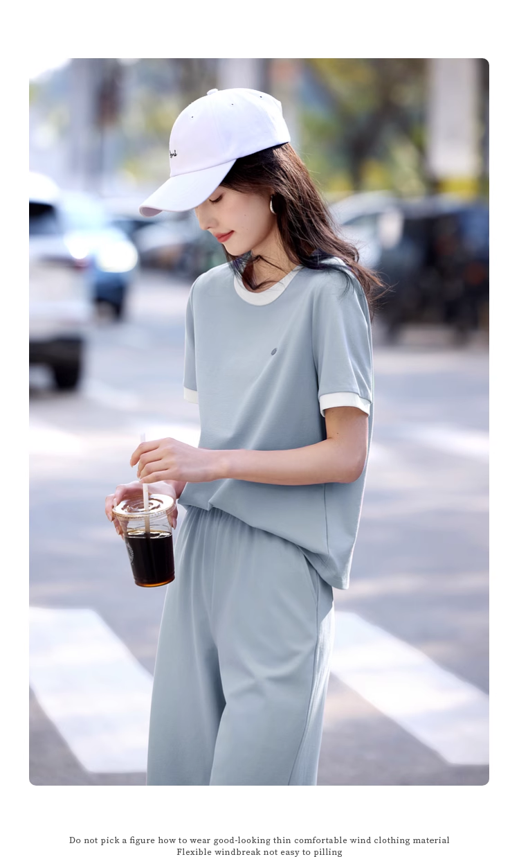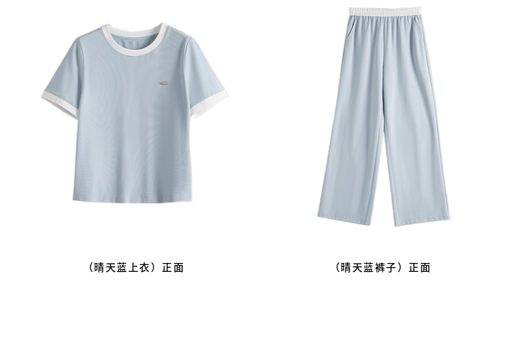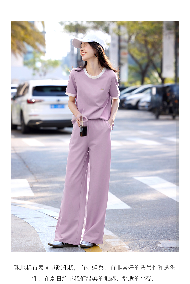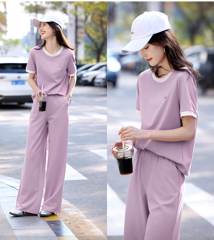 【专属特价】熙世界休闲套装女2025年夏季新款撞色圆领短袖T恤直筒长裤两件套