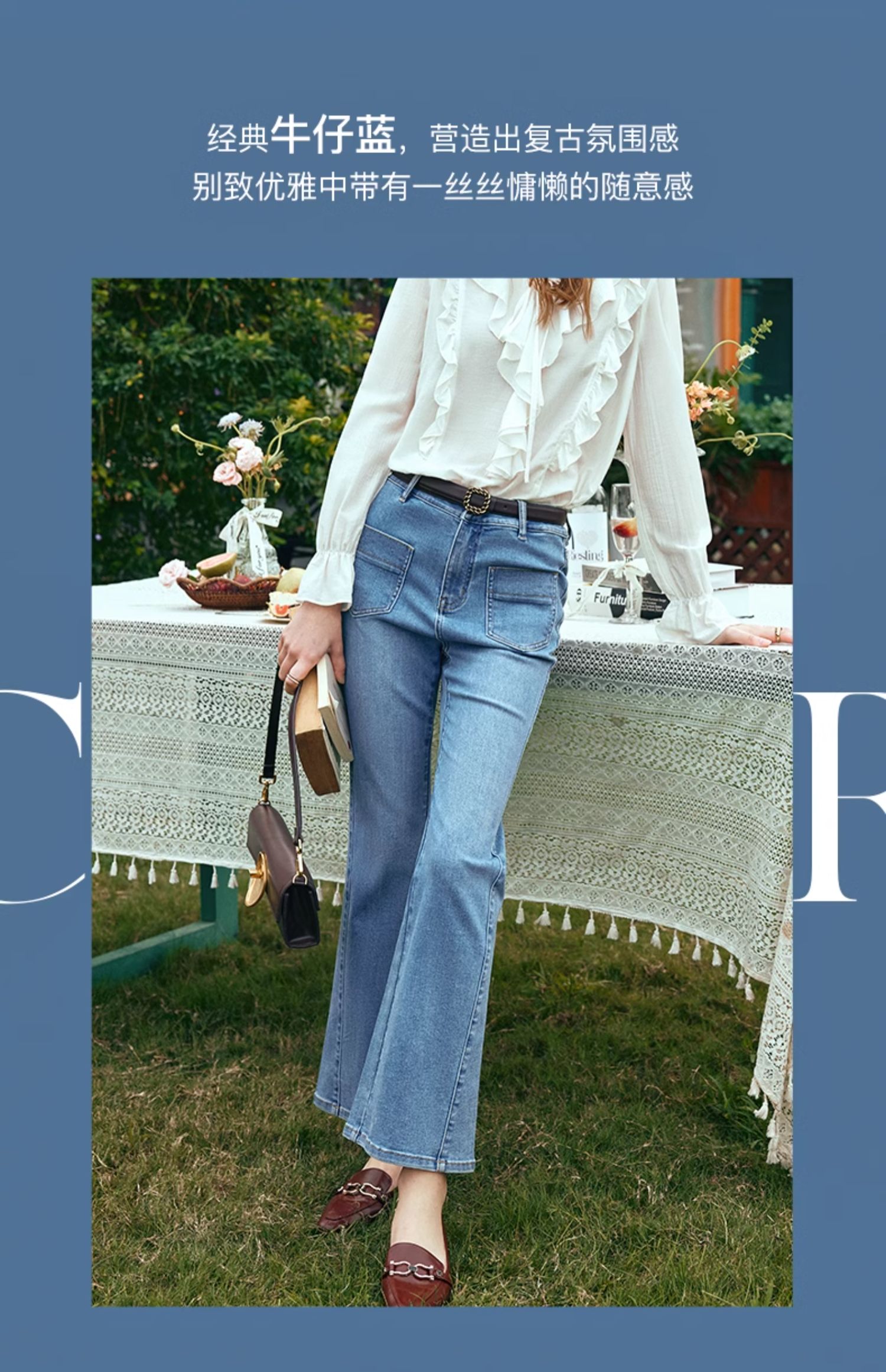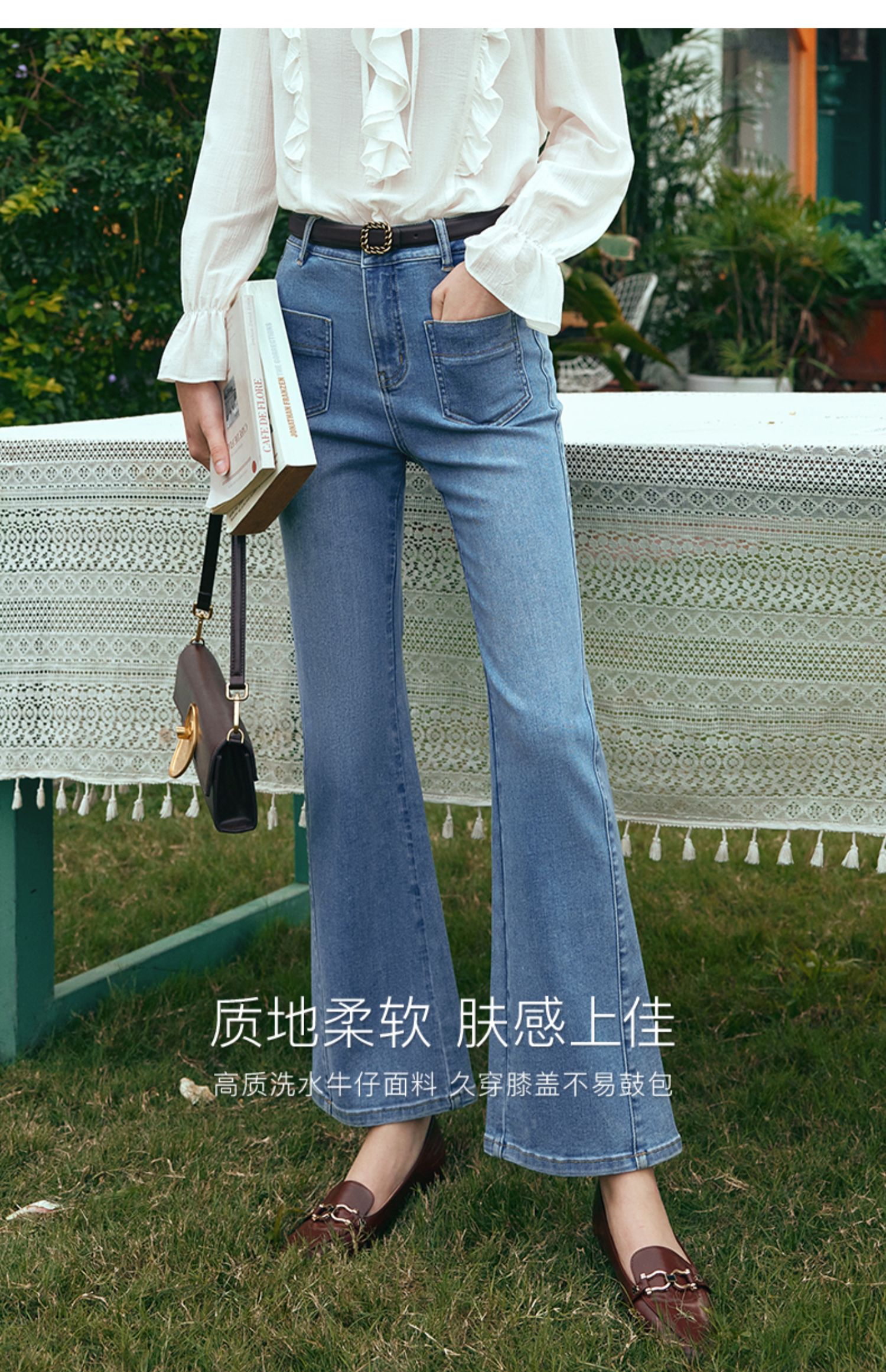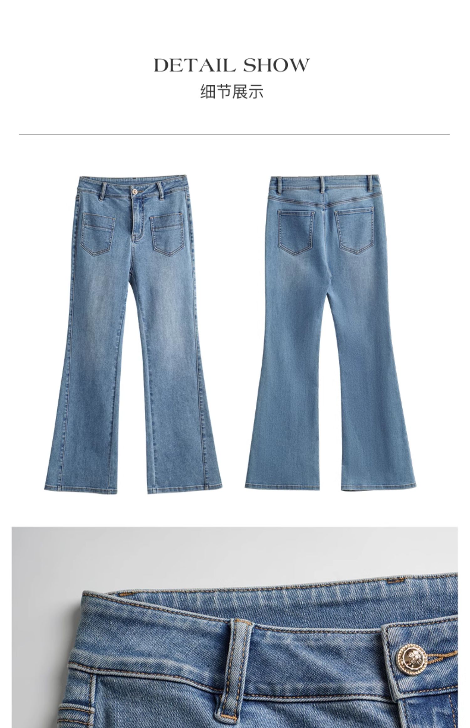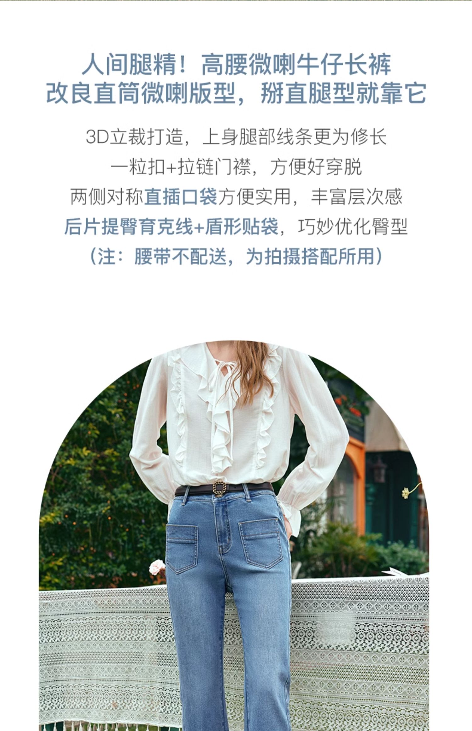 OLrain欧芮儿水洗蓝牛仔裤女早春2024年新款简约百搭显瘦微喇长裤