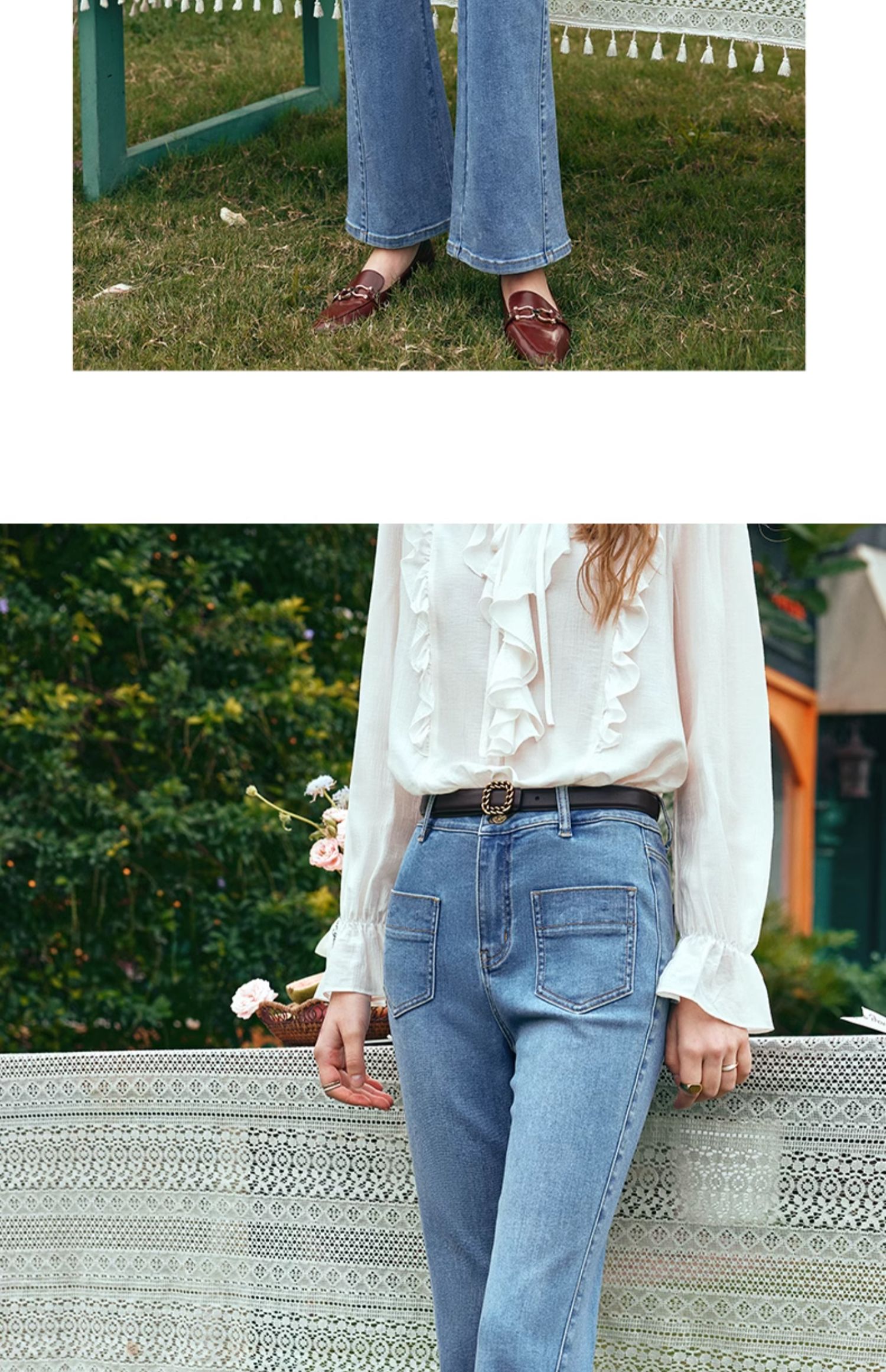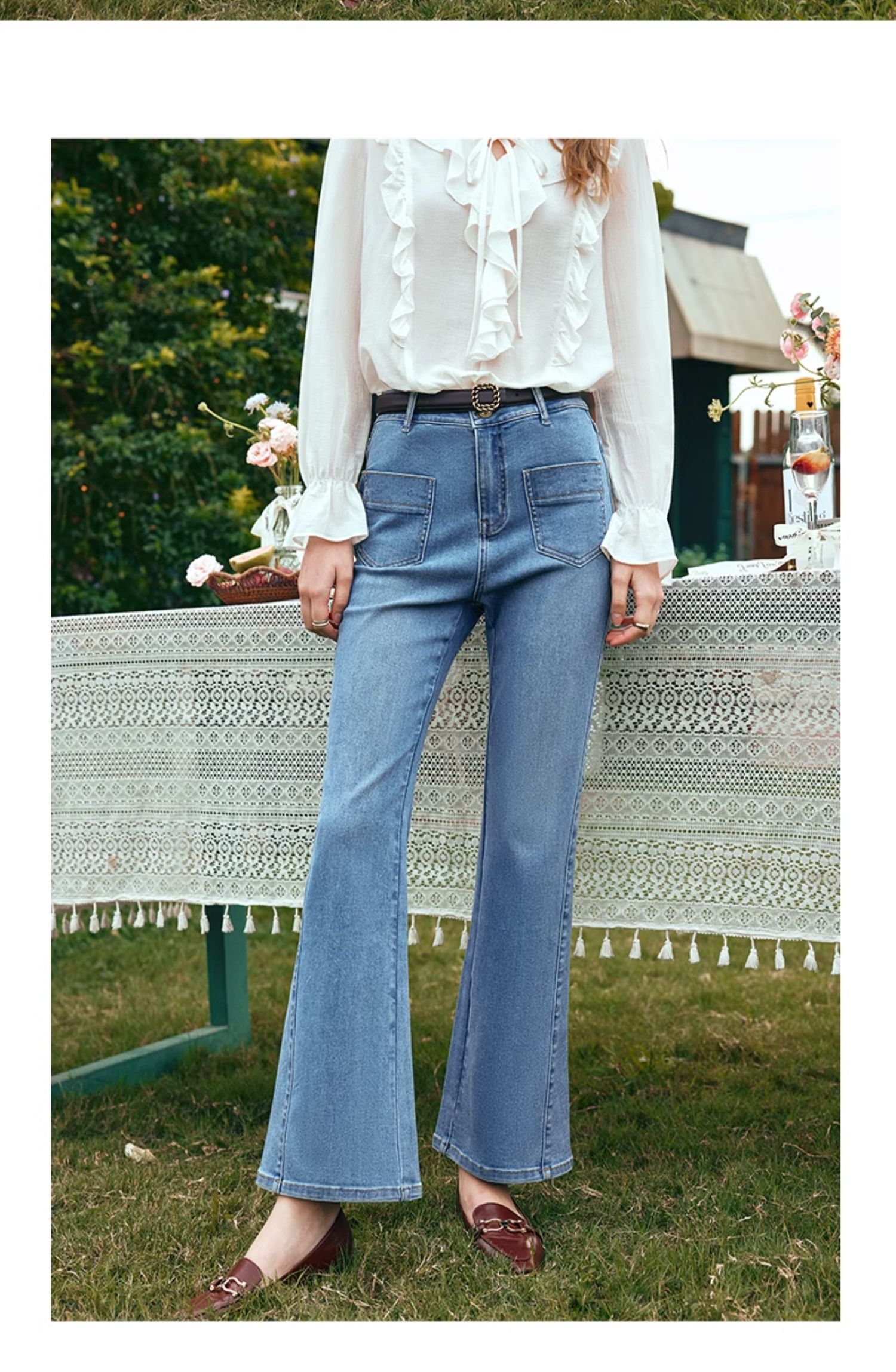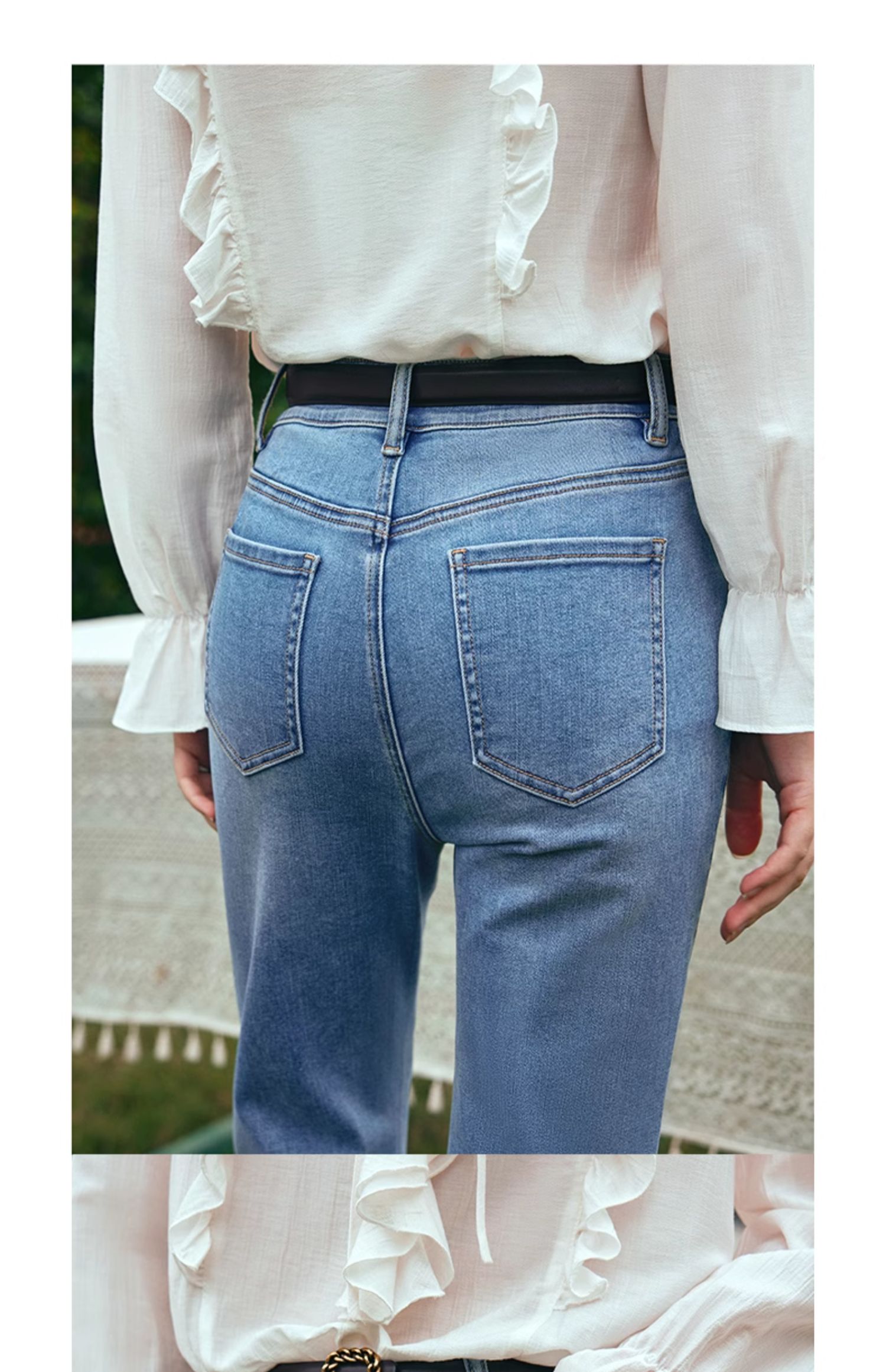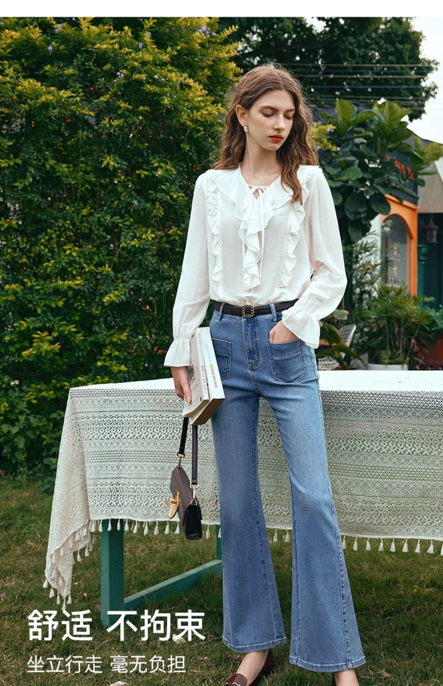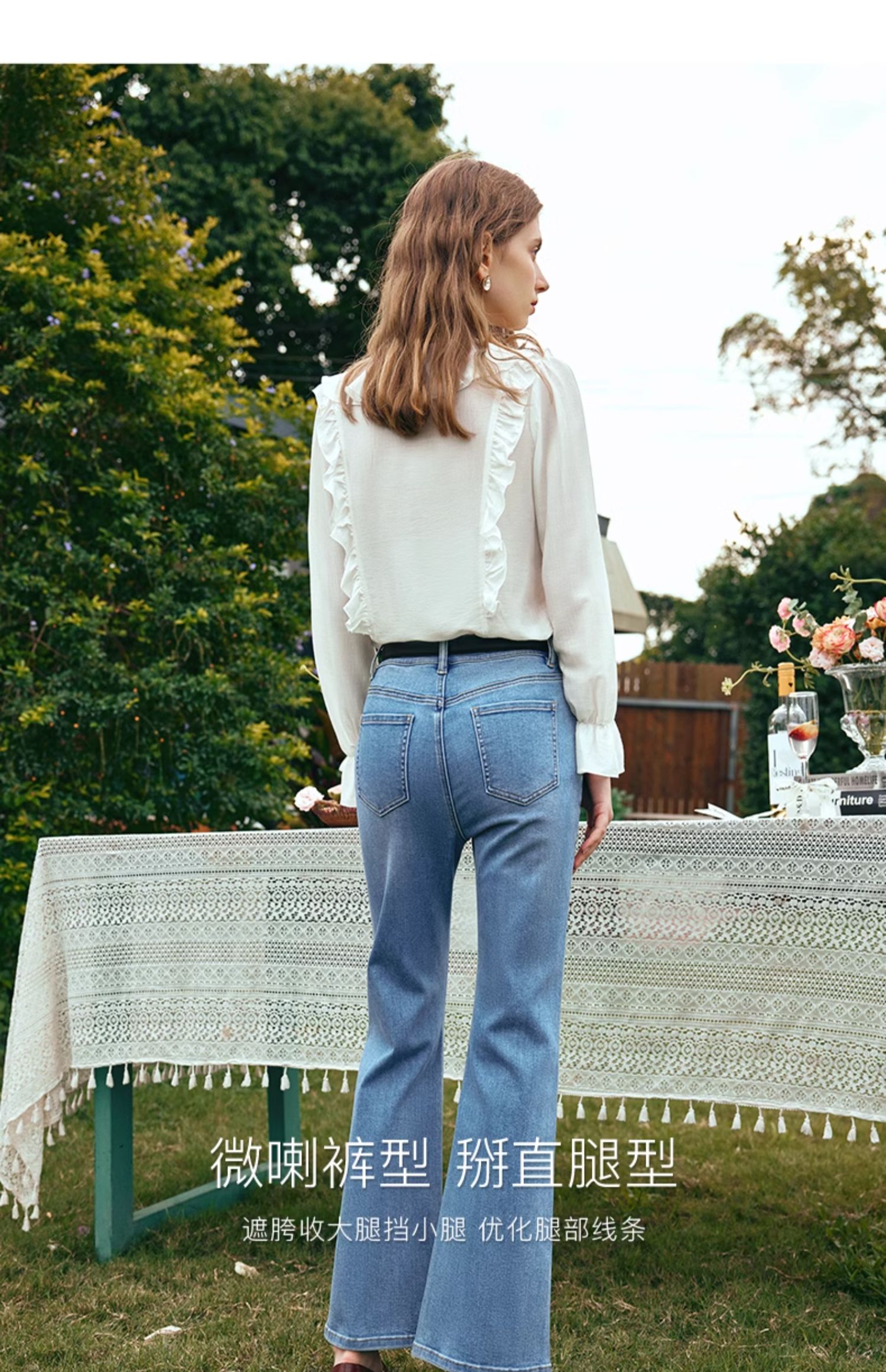 OLrain欧芮儿水洗蓝牛仔裤女早春2024年新款简约百搭显瘦微喇长裤